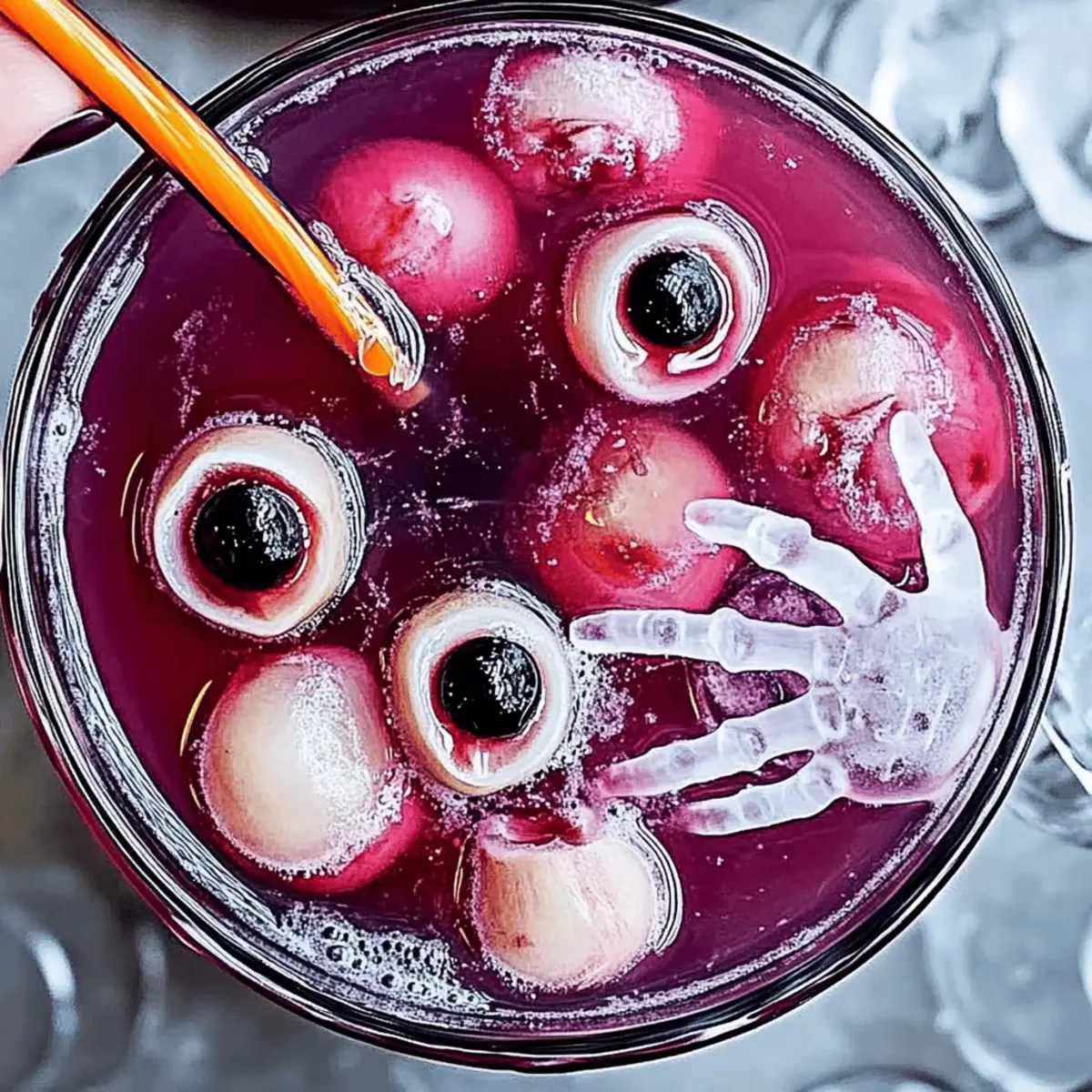 Jump to Recipe Print Recipe“Trick or treat?” I overheard a little voice ask as I prepared for our annual Halloween party; it sparked a flurry of excitement. This year, I’m elevating the festivities with a Ghoulish Halloween Mocktail that’s sure to capture imaginations and taste buds alike. Crafted for all ages, this colorful fruit punch features whimsical lychee ‘eyeballs’ and eerie ice hands, making it an eye-catching centerpiece at any gathering. Not only is it quick to prepare, but it’s also a family-friendly, gluten-free, and vegan option that ensures everyone can join in on the fun. With vibrant colors and playful elements, this mocktail is the perfect way to hydrate while embracing the spooky spirit of Halloween. Are you ready to stir up some fun and delight your guests with a thirst-quenching potion this Halloween? Why will this Halloween Mocktail wow you? Visual Appeal: This mocktail is not just a drink; it’s a conversation starter! The floating lychee ‘eyeballs’ and eerie ice hands create a Halloween masterpiece that is sure to impress all your guests. Family-Friendly Fun: Perfectly crafted for everyone, this recipe is vegan and gluten-free, making it a delightful choice for all ages—and you can tweak it with your favorite fruit juices for a personal touch! Quick & Easy: With just a few simple steps, you can whip this up in no time, allowing you to spend less time in the kitchen and more time enjoying the festivities. Crowd Pleaser: The combination of fruity flavors paired with the refreshing fizz from sparkling water means this drink will be a hit at any party—adults and kids alike will love it! Spooktacular Variations: Feel free to get creative! Swap in lemonade for a sweeter punch or add edible glitter for that extra Halloween sparkle. You can even explore more fun recipes and ideas for your Halloween celebrations by checking out other Halloween-themed drinks on our blog! Halloween Mocktail Ingredients • Get ready to create a bubbling brew! For the Eyeballs Lychees – These tropical delights provide sweetness and form the spooky ‘eyeballs’ for your drink. Cocktail Cherries – The perfect base for your ‘eyeballs,’ adding a rich flavor beneath the lychee exterior. Raisins – Serve as the ‘pupils’ of your ghoulish eyeballs when nestled inside the cherries. For the Punch Blueberry, Blackberry, or Purple Grape Juice – This deep-colored juice acts as the main base, adding a bold hue and delicious flavor. Cherry or Cranberry Juice – Enhances the punch with additional sweetness, making it irresistible for kids and adults alike. Sparkling Water – The fizzy twist that lightens the drink, making it refreshing and exciting. For the Ice Hands Disposable Gloves – Used to create eerie ice hands that float in your punch, adding a chilling visual element. Step‑by‑Step Instructions for Ghoulish Halloween Mocktail Step 1: Freeze Ice Hands Begin by rinsing the disposable gloves thoroughly to ensure they’re clean. Fill each glove with water and tie them securely at the wrist. Place them on a flat surface in the freezer and let them freeze overnight until solid, ensuring they form creepy ice hands that will chill your Halloween mocktail. Step 2: Prepare Eyeballs While the ice hands are freezing, drain the lychees and cocktail cherries, reserving their juices in a bowl. Carefully insert a raisin into one end of each cherry, creating the ‘pupil’ for your eyeballs. Then, gently place the cherries into the hollow centers of the lychees to form your spooky ‘eyeballs.’ Set these aside for later use in the punch. Step 3: Combine Ingredients In a large mixing bowl, pour together the reserved lychee juice, blueberry juice, and cherry or cranberry juice to create the vibrant base for your Halloween mocktail. Stir the mixture well to ensure all the juices are thoroughly combined. Add the lychee ‘eyeballs’ you prepared earlier, giving the punch a fun, ghoulish look as it starts to take shape. Step 4: Add Ice Hands Once the ice hands are fully frozen, carefully remove them from the gloves to prevent any leaks. Position the chilling ice hands in the punch mixture, allowing them to float dramatically in the bowl. Finally, before serving, top it off with sparkling water, giving the Halloween mocktail an effervescent fizz that everyone will love! Make Ahead Options These Ghoulish Halloween Mocktails are perfect for meal prep enthusiasts who want to save time for the festivities! You can prepare the lychee ‘eyeballs’ and ice hands up to 24 hours in advance. Simply create the eyeballs by inserting raisins into cocktail cherries and placing them inside drained lychees; store them in an airtight container in the refrigerator to keep them fresh. For the ice hands, fill disposable gloves with water, tie, and freeze. When you’re ready to serve, mix all the juices, add the prepped eyeballs, and top with sparkling water just before enjoying. With these make-ahead tips, you’ll have a spooktacular drink ready with minimal effort! Expert Tips for the Best Halloween Mocktail Fresh Ingredients: Use ripe, fresh fruit juices for optimal flavor. Avoid bottled juices with added sugars to keep this Halloween mocktail as healthy as possible. Chill Components: Make sure your ingredients are well-chilled before mixing. It enhances the crispness and refreshment, creating a more delightful experience. Avoid Fruit Float: To ensure the lychee ‘eyeballs’ float well, gently mix the punch before serving and don’t overload on ingredients, which could cause them to sink. Customize Flavor: Feel free to substitute juices you enjoy or that are in season. Experiment with combinations like pineapple or orange juice for a unique Halloween mocktail twist. Presentation Matters: Serve in clear cups or bowls to showcase the spooky elements. Add a few gummy worms or plastic eyeballs for an extra fun touch that kids will love! Storage Tips for Halloween Mocktail Fridge: Store 
