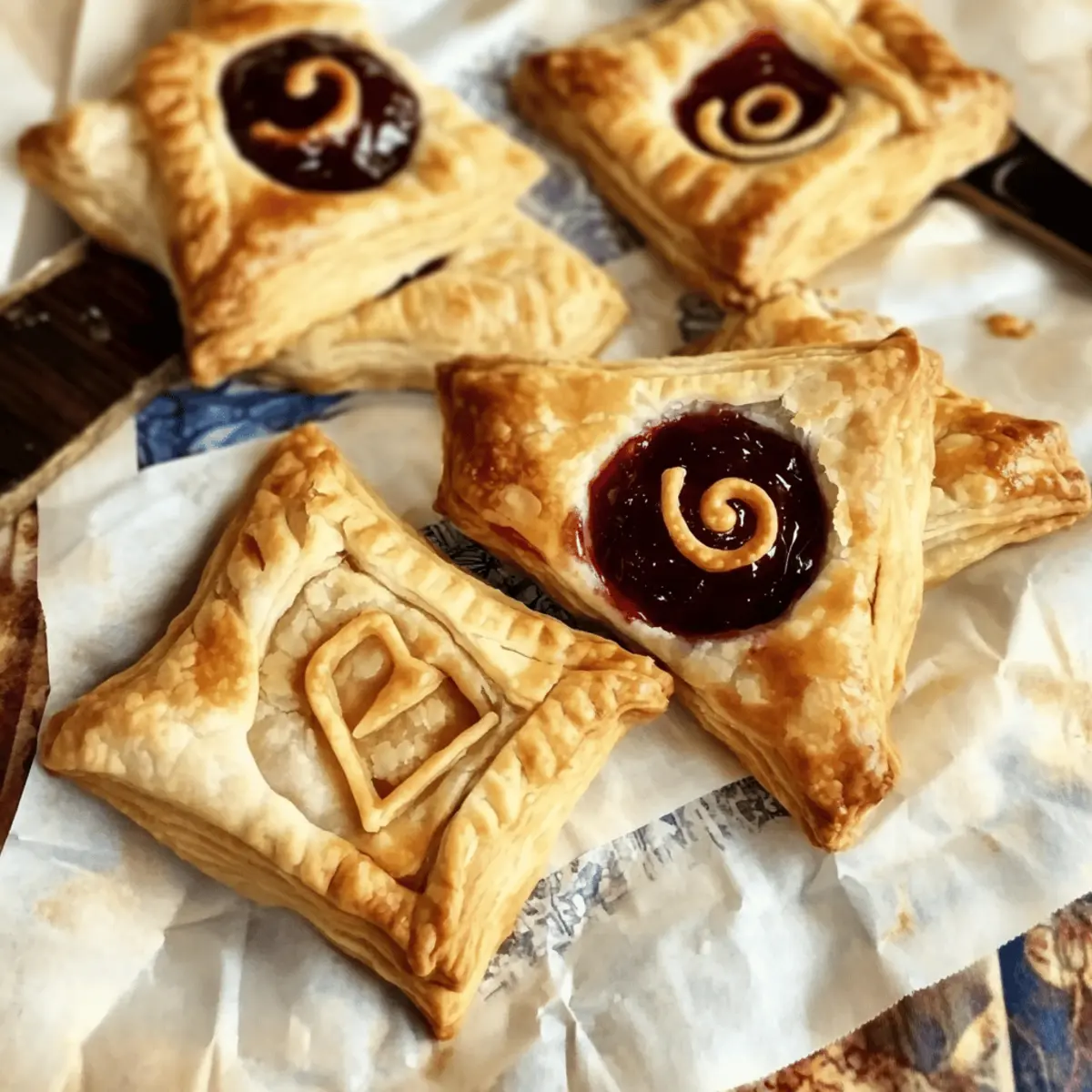 Jump to Recipe Print RecipeAs I unwrapped the parchment from a fleeting Hogwarts letter, the aroma of cherry and buttery pastry danced in the air, instantly transporting me to a world of magic and wonder. Today, I’m thrilled to share my recipe for Easy Vegan Harry Potter Letter Hand Pies—delightful pastries that capture the spirit of the wizarding world in a deliciously fun way. With a quick prep time and a charming presentation, these hand pies are perfect for festive gatherings or cozy movie nights. The combination of flaky pastry filled with sweet cherry jam and crowned with a whimsical edible chocolate wax seal adds an enchanting twist that will leave everyone wondering if they’ve stumbled into Diagon Alley! Ready to bring a little magic to your kitchen? Let’s dive into this enchanting recipe together! Why Are These Hand Pies So Magical? Simplicity and Charm: Creating these hand pies is a breeze, making them perfect for any skill level in the kitchen. Festive Appeal: With their whimsical design, they’re not just delicious but also a showstopper at any gathering, especially during movie marathons or themed parties. Vegan Delight: Made without animal products, everyone can enjoy these cute pies! The substitution options ensure they fit various dietary preferences while retaining rich flavor. Flavor Explosion: The combination of buttery pastry and sweet cherry jam is irresistible—every bite evokes the cozy atmosphere of Hogwarts. Pair them with a warm cup of tea for an enchanting experience. For even more delightful treats, check out my Air Fryer Hand Pies that are just as easy to make and bursting with flavor! Harry Potter Letter Hand Pies Ingredients For the Pastry Plain Flour – Provides the structural base for the pastry; substitute with gluten-free flour if needed. Caster Sugar – Adds just the right sweetness to the dough and topping; use coconut sugar for a less refined option. Dairy-Free Block Butter – Creates a rich, buttery texture; margarine works well as a substitute or try coconut oil for a unique flavor. Ice-Water – Essential for bringing the pastry dough together; always use cold water to maintain that beautiful texture. For the Filling Cherry Jam/Conserve – This sweet filling packs a fruity punch; feel free to substitute with your favorite fruit jam or compote. For the Decoration Dairy-Free Milk – Brush this on for sealing and browning the pastry; any plant-based milk will do the trick. Dairy-Free Chocolate – Perfect for creating the charming wax seal on top; choose between white or dark chocolate based on your preference. Edible Glitter (optional) – A delightful touch for decoration to enhance that magical theme; skip it if you don’t have any. Icing Sugar (optional) – Dust for added sweetness and a pretty presentation on the finished pastries. Bringing the magic of Hogwarts into your kitchen has never been easier with these Harry Potter Letter Hand Pies! Enjoy whipping up these delightful treats and watch as everyone falls in love with their whimsical flair. Step‑by‑Step Instructions for Harry Potter Letter Hand Pies Step 1: Make the Pastry Dough In a mixing bowl, sift together plain flour and caster sugar for your Harry Potter Letter Hand Pies. Cube the cold dairy-free butter and mix it in until the texture resembles fine sand. Gradually add ice-water, one tablespoon at a time, until the dough holds together. Shape it into a disc, wrap it in cling film, and refrigerate for at least 30 minutes to firm up. Step 2: Preheat & Roll Out Preheat your oven to 170°C (340°F) while you roll out the dough for the hand pies. Remove the chilled pastry from the fridge and place it between two sheets of grease-proof paper. Roll it out to about 3mm thick, making it easier to cut into diamond shapes. Use a sharp knife to create as many diamonds as possible, keeping the edges neat and clean. Step 3: Fill & Shape Pastries Take a diamond-shaped piece of dough and place a spoonful of cherry jam right in the center. Brush the edges with dairy-free milk to ensure they seal properly. Gently fold the corners toward the center, creating a beautiful envelope shape. Press the edges firmly to seal in that delicious jam so it doesn’t escape during baking. Step 4: Bake Once all the pastries are shaped, place them on a lined baking tray. Brush the tops lightly with dairy-free milk and sprinkle with a little extra sugar for a lovely crust. Bake in your preheated oven for 20-25 minutes, watching closely until they turn golden brown and crisp. When done, remove them from the oven and allow to cool completely. Step 5: Prepare Chocolate Seals While the pastries cool, melt your dairy-free chocolate using a bain-marie to create those charming wax seals. Place a spoonful of melted chocolate on a piece of parchment paper, and use a stamp or the back of a spoon to create a seal shape. Optionally, sprinkle with edible glitter for a magical touch, and let the seals set until firm. Step 6: Serve Once your chocolate seals have hardened, carefully attach them to the cooled Harry Potter Letter Hand Pies using a bit of melted chocolate. These delightful pastries can be enjoyed warm or at room temperature, making them a perfect treat for movie nights or festive gatherings. Share your magical creations with friends and family, and delight in the joy they bring! How to Store and Freeze Harry Potter Letter Hand Pies Fridge: Keep your delectable Harry Potter Letter Hand Pies in an airtight container for up to 2 days to maintain their flakiness and flavor. Freezer: For longer storage, freeze them unbaked. Simply wrap each pastry individually in plastic wrap, then place them in a freezer-safe bag for up to 2 months. Reheating: When ready to enjoy, bake the frozen hand pies straight from the freezer at 170°C (340°F) for about 25-30 minutes, until golden and crispy. Room Temperature: If you prefer them at room temperature, let them cool down after baking and store in an airtight containe