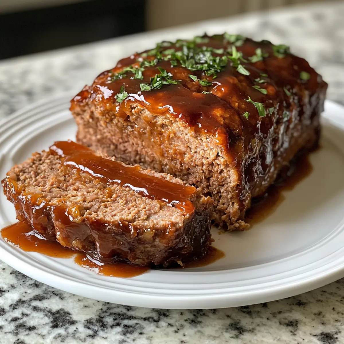 Jump to Recipe Print RecipeWho would have thought that a humble meatloaf could be so transformative? With my Honey BBQ Meatloaf, we’re elevating this classic comfort food into something truly memorable. Crafted from a blend of ground beef and pork, this dish gets a dazzling upgrade with a luscious honey BBQ glaze that strikes a perfect balance between sweet and tangy. Not only is it a crowd-pleaser that your family will request again and again, but it’s also a breeze to prepare on busy weeknights. Imagine serving up a tender, flavorful meatloaf, bursting with creativity, and watching everyone join in for seconds. Are you ready to bring this delightful twist to your table? Why is this meatloaf so irresistible? Flavor Explosion: The rich combination of honey and BBQ sauce creates a mouthwatering glaze that tantalizes every taste bud. Moist and Tender: Thanks to the blend of ground beef and pork, this meatloaf stays incredibly moist, making each bite deliciously satisfying. Easy Prep: With simple ingredients and straightforward steps, you can whip this up in no time—even on a busy weeknight! Versatile: Feel free to experiment with different BBQ sauces or add veggies like bell peppers for a personal touch. Why not pair it with sides like mashed potatoes or roasted vegetables for an unforgettable meal? This Honey BBQ Meatloaf truly redefines comfort food—perfect for any occasion! Honey BBQ Meatloaf Ingredients For the Meatloaf • Ground Beef – Offers rich flavor; use 85/15 for a perfect balance of taste and fat. • Ground Pork – Adds moisture and tenderness; swap in more ground beef for a leaner option. • Yellow Onion – Finely diced for aromatic flavor; ideal for its natural sweetness. • Garlic Cloves – Minced for depth; fresh garlic enhances aroma, though powder works in a pinch. • Eggs – Binds the mixture; beat them for an even distribution. • Whole Milk – Keeps the meatloaf moist; non-dairy options can substitute but may alter texture. • Seasoned Breadcrumbs – Provides structure; fresh breadcrumbs enhance moisture retention. • Parmesan Cheese – Introduces savory depth; pecorino can be used for a sharper flavor. • Fresh Parsley – Adds a touch of freshness; dried parsley is a good substitute. • Worcestershire Sauce – Enhances umami flavor; use soy sauce for a gluten-free alternative. • Sea Salt & Black Pepper – Season to taste; adjust according to dietary needs. • Dried Thyme – Adds earthiness; consider herbs de Provence for a flavor twist. For the Glaze • BBQ Sauce – The base for a sweet, tangy glaze; try your favorite for customization in flavor. • Honey – Provides sweetness and helps caramelize; maple syrup can alter the flavor slightly. • Grape Jelly – Gives shine and additional sweetness; feel free to use another fruit preserve. • Apple Cider Vinegar – Balances the glaze’s sweetness; lemon juice is a great substitute. • Dijon Mustard – Adds flavor complexity; yellow mustard can be used if needed. This Honey BBQ Meatloaf is sure to become a family favorite—the perfect blend of comforting feel and delightful taste! Step‑by‑Step Instructions for Honey BBQ Meatloaf Step 1: Preheat and Prepare the Pan Start by preheating your oven to 350°F (175°C). While it heats up, take a 9×5 inch loaf pan and line it with parchment paper, letting the edges hang over for easy removal later. This simple preparation will ensure your Honey BBQ Meatloaf comes out effortlessly and without sticking. Step 2: Sauté the Aromatics In a small skillet over medium heat, add a bit of oil and sauté the finely diced yellow onion and minced garlic until softened, about 5 minutes. You want them to be translucent and fragrant, bringing out their natural sweetness. Once cooked, set them aside to cool completely before adding to the meat mixture. Step 3: Combine Dry Ingredients In a large mixing bowl, combine the beaten eggs, whole milk, seasoned breadcrumbs, grated Parmesan cheese, and all the spices: sea salt, black pepper, and dried thyme. Let this mixture sit for about 5 minutes. This resting time allows the breadcrumbs to soften and absorb all the flavors, setting the stage for a tender Honey BBQ Meatloaf. Step 4: Incorporate the Meats and Onions Now, it’s time to add in the cooled onion and garlic mixture to the bowl, along with the ground beef and ground pork. Mix gently with your hands until just combined—be cautious not to overmix, as this could result in a denser meatloaf. The goal is to achieve a tender texture in your final dish. Step 5: Form the Meatloaf Transfer the meat mixture into your prepared loaf pan. Use your hands to gently press it down, making sure to eliminate any air pockets and create an even shape. The mixture should hold together well but remain light. This step is key to crafting the perfect Honey BBQ Meatloaf that is both tasty and visually appealing. Step 6: Make the Glaze In a separate bowl, whisk together your favorite BBQ sauce, honey, grape jelly, apple cider vinegar, and Dijon mustard to create a sticky, flavorful glaze. The balance of sweet and tangy will elevate your meatloaf. Reserve one-third of this glaze for later to ensure a deliciously caramelized finish. Step 7: Bake and Glaze Place the loaf pan in your preheated oven and bake for 45 minutes. After this initial baking time, carefully remove the meatloaf and spread one-third of the reserved glaze over the top. Return it to the oven and let it bake for an additional 25-30 minutes. You’ll know it’s done when the internal temperature reaches 160°F (71°C). Step 8: Rest and Serve Once baked, remove the Honey BBQ Meatloaf from the oven and let it rest for about 10 minutes. This resting period allows it to set and makes slicing much easier. Serve it warm with the remaining glaze drizzled on top for a delicious finishing touch. Enjoy your delightful meal! Expert Tips for Honey BBQ Meatloaf Avoid Overmixing: Mixing too vigorously can lead to a to