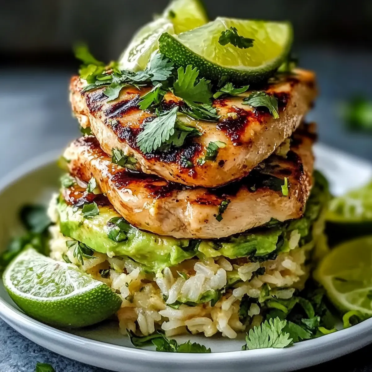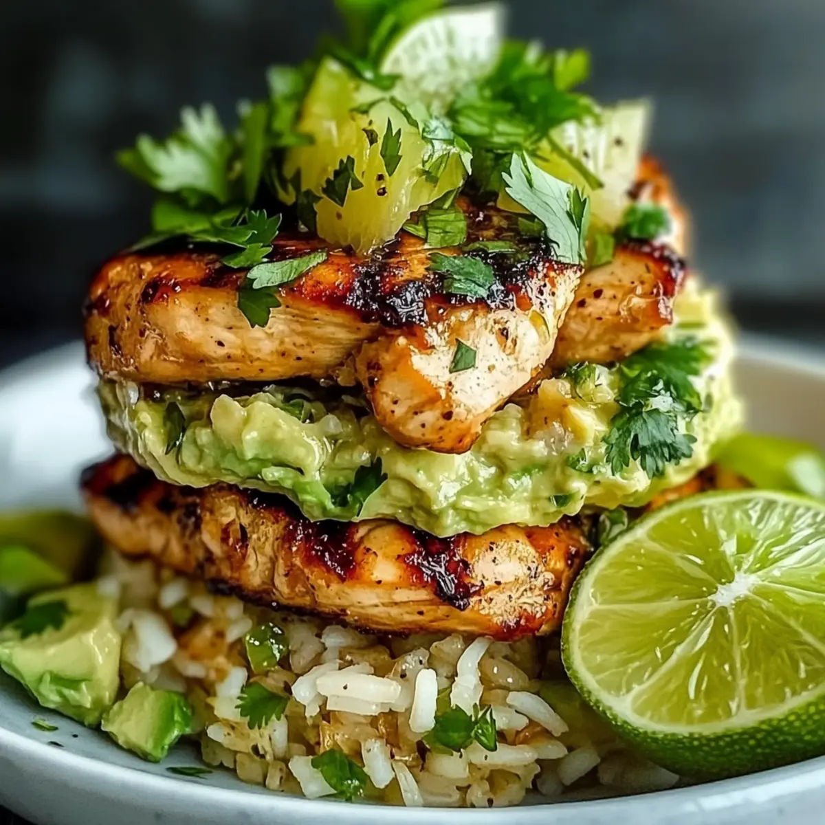 Jump to Recipe Print RecipeAs I stirred the sweet aroma of honey with a zesty splash of lime, I knew I was onto something special. The Honey Lime Chicken Avocado Rice Stack is a delightful quick Mediterranean feast that has become a staple in my kitchen. This vibrant dish comes together in under 30 minutes, making it an ideal choice for busy weeknights or meal prep. Picture creamy avocado rice layered with juicy, marinated chicken, creating a satisfying meal that’s not only a feast for the eyes but also a treat for the palate. Plus, it’s easily adaptable—switch the chicken for shrimp or tofu, and try quinoa or cauliflower rice for a fun twist! Ready to elevate your dinner game with this mouthwatering stack? Why is Honey Lime Chicken Avocado special? Bursting with Flavor: The balance of sweet honey and tangy lime brings a delightful brightness to every bite, making it irresistibly satisfying. Quick and Easy: With a prep time of under 30 minutes, you can whip up this dish, perfect for busy weeknights or surprise guests. Versatile Options: Easily swap in shrimp or tofu for the chicken, or try quinoa for a protein-packed variation that suits any diet. Meal Prep Friendly: This recipe is ideal for meal prep, allowing you to enjoy a fresh homemade meal ready to go throughout the week. Nutritionally Balanced: With approximately 500 calories per serving, this dish offers a lovely mix of proteins, carbs, and healthy fats. Pair it with sides like a Mediterranean quinoa salad for an extra boost! Honey Lime Chicken Avocado Ingredients • Your key to a vibrant meal! For the Chicken Marinade Chicken Breasts – Boneless and skinless for juicy results; thighs work well too! Honey – Adds sweetness to balance the zesty lime; maple syrup can be swapped for a vegan option. Lime Juice – Fresh lime juice brings acidity and brightness; opt for fresh limes for the best flavor. Lime Zest – Enhances the lime flavor with aromatic notes that elevate the dish. Olive Oil – Provides richness in both the marinade and rice; avocado oil is a great substitute. Garlic – Fresh minced garlic adds depth; avoid powdered garlic for best flavor. Cumin – Offers warmth; coriander works as a substitute if needed. Smoked Paprika – Imparts a subtle smokiness; regular paprika can be used instead. Salt & Pepper – Essential for seasoning; taste for your desired balance. For the Rice Base Cooked Jasmine or Basmati Rice – Acts as a creamy base; cauliflower rice can be swapped for a low-carb alternative. Ripe Avocado – Ensure ripeness for the best creamy texture in the rice; adds delicious creaminess. Extra Lime Juice – Brightens the avocado rice even further; freshness is key! Fresh Cilantro or Parsley – Optional garnish that adds a pop of color and flavor. Chili Flakes – Add optional heat; adjust to taste based on your preference. Toasted Sesame Seeds – Optional garnish that adds delightful crunch and visual appeal. Step‑by‑Step Instructions for Honey Lime Chicken Avocado Step 1: Marinate the Chicken In a bowl, combine honey, lime juice, lime zest, olive oil, minced garlic, cumin, smoked paprika, salt, and pepper, mixing until smooth. Coat the chicken breasts thoroughly in this fragrant marinade. For maximum flavor infusion, refrigerate the marinated chicken for at least 30 minutes, or up to 2 hours if time permits. Step 2: Cook the Chicken Preheat a grill pan over medium-high heat. Once hot, add a drizzle of olive oil to ensure the chicken doesn’t stick. Cook the marinated chicken for 5-6 minutes on each side, or until it’s beautifully golden brown and the internal temperature reaches 165°F (75°C). The aroma will be enticing as the chicken cooks to perfection. Step 3: Prepare the Avocado Rice While the chicken is cooking, mash a ripe avocado in a separate bowl and mix in additional lime juice, olive oil, and a pinch of salt for flavor. Once the chicken is done, fold in warm, cooked jasmine or basmati rice into the mashed avocado until the mixture is creamy and well-combined, creating a delightful base for your Honey Lime Chicken Avocado dish. Step 4: Assemble the Stack Using a mold, layer the creamy avocado rice at the bottom for a sturdy base. Top off the rice with slices of the juicy grilled chicken, ensuring each piece is nestled into the avocado goodness. To finish, sprinkle with fresh cilantro, lime zest, optional chili flakes for heat, and toasted sesame seeds for added crunch, creating a beautifully presented stack. Step 5: Serve and Enjoy Once assembled, drizzle a touch of extra lime juice over the top of the stack to enhance the freshness. Serve immediately for the best experience, and enjoy your vibrant Honey Lime Chicken Avocado Rice Stack, which beautifully melds flavors and textures that delight the senses! How to Store and Freeze Honey Lime Chicken Avocado Fridge: Store cooked Honey Lime Chicken and avocado rice separately in airtight containers for up to 3 days to maintain freshness and texture. Freezer: Marinated chicken can be frozen for up to 3 months. Thaw in the fridge overnight before cooking for the best results. Avoid Freezing: Do not freeze the avocado rice, as it is best enjoyed fresh due to the creamy texture that doesn’t hold well after freezing. Reheating: Reheat the chicken in a skillet over medium heat for a few minutes until warmed through. Microwave the rice for about 30 seconds, stirring in between to ensure even heating. What to Serve with Honey Lime Chicken Avocado Rice Stack Picture a delightful spread that will elevate your Honey Lime Chicken Avocado Rice Stack into a memorable meal experience. Crispy Roasted Brussels Sprouts: Their crunchy exterior adds a wonderful contrast that pairs beautifully with the creamy avocado rice. Mediterranean Quinoa Salad: Packed with fresh vegetables and a tangy dressing, this salad complements the sweetness of the chicken and adds a refreshing touch. Garlic Naan Bread: Soft and pillowy, this bread is perfect for scooping