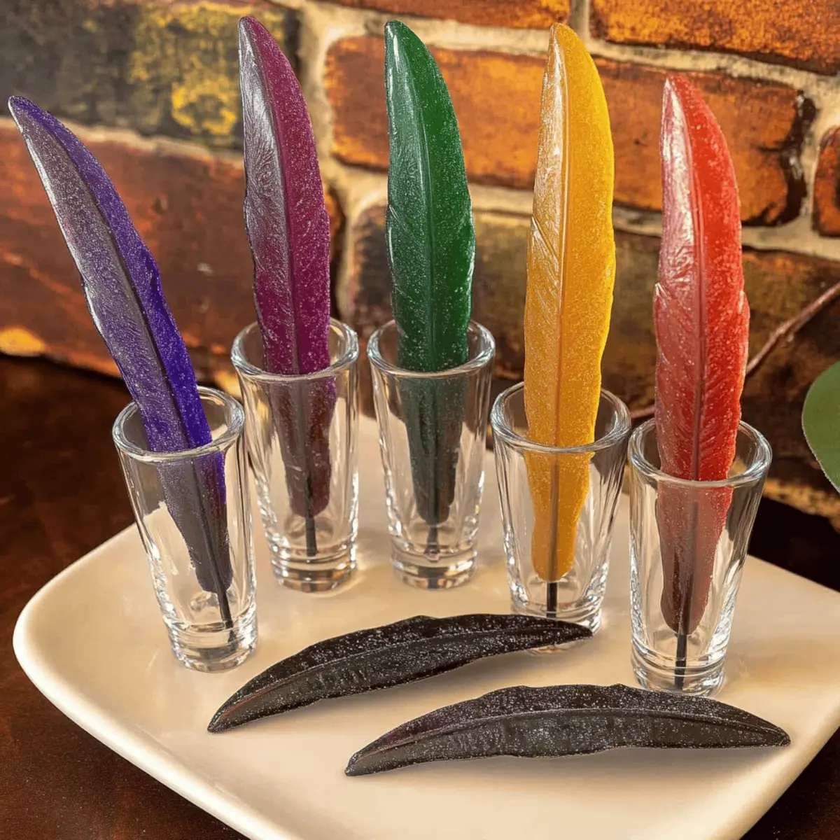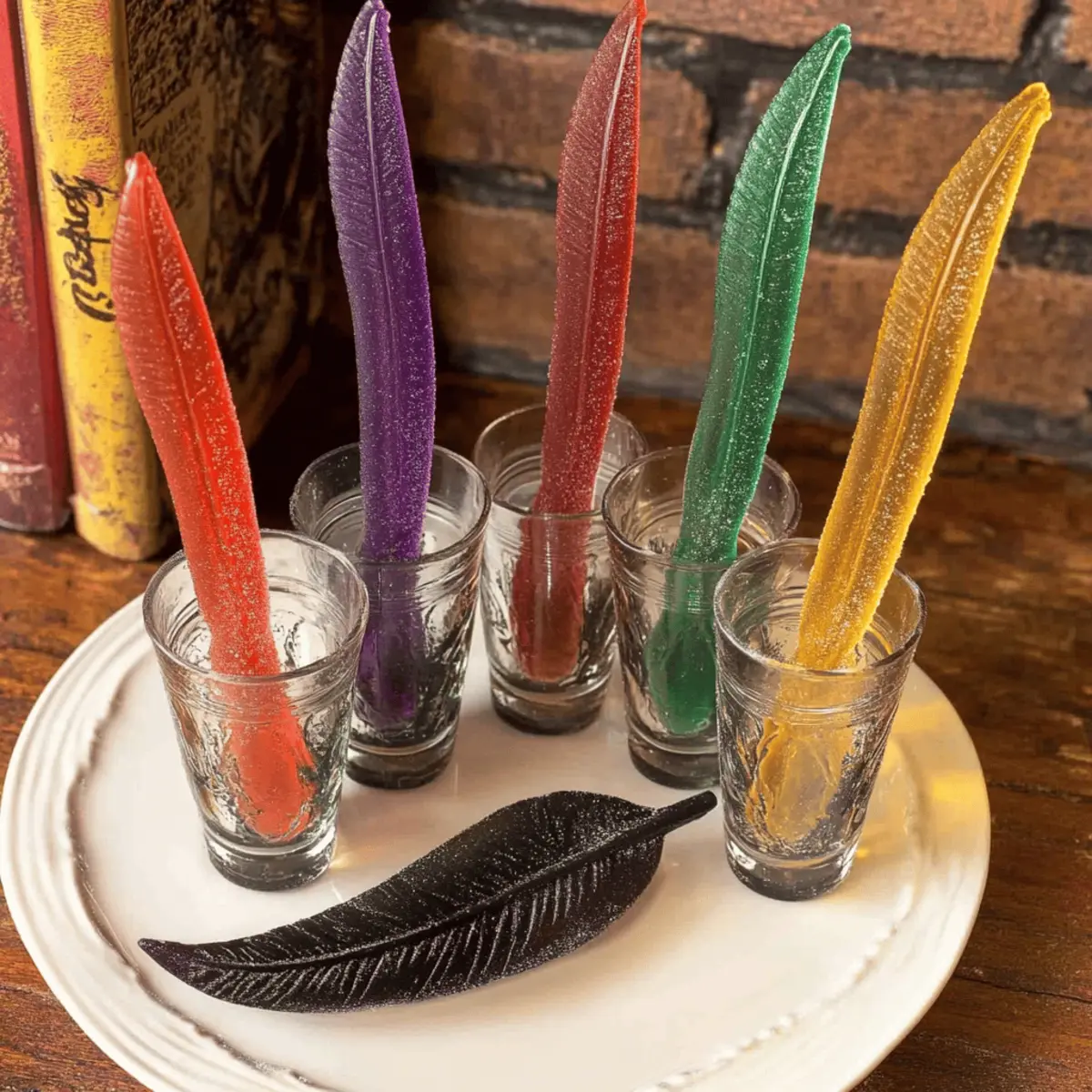 Jump to Recipe Print RecipeAs I stood in my kitchen, the sweet aroma of melted sugar enveloped me, reminiscent of the bustling halls of Honeydukes from Harry Potter. Today, I’m excited to share my recipe for Honeyduke’s Sugar Quills—delightfully whimsical candy that’s as enchanting as the world of magic. These little quills not only look stunning but are incredibly easy to make, making them a fantastic project for families or anyone looking to add some fun to their sweet tooth cravings. In just 13 minutes, you’ll create colorful, crunchy treats that capture the spirit of Hogwarts and are perfect for parties or a cozy night in. Ready to unleash your inner wizard and craft these charming confections? Let’s get started! Why Are These Sugar Quills So Special? Magic in the Kitchen: Crafting Honeyduke’s Sugar Quills is not just a recipe; it’s an adventure! Ideal for kids and adults alike, these candy treats bring the whimsical world of Harry Potter to your home with ease. Quick Delight: In just 13 minutes, you can whip up colorful confections that are perfect for any gathering. Customizable Fun: With options to experiment with flavors and colors, each batch can reflect your favorite Hogwarts house or theme. Perfect for Parties: These enchanting quills make stunning decorations for Harry Potter-themed parties, adding a charming touch to your sweet table. Join the fun and pair these candies with other magical delights like Iced Brown Sugar or delightful treats from the magical realm such as Sugar Cookie Fruit. Your guests will be spellbound! Honeyduke’s Sugar Quills Ingredients • Get ready to embark on a sugary adventure with these magical quilled candies! For the Candy Base Granulated Sugar – The main sweetener that gives structure and crunch to your Honeyduke’s Sugar Quills. Water – Vital for dissolving the sugar smoothly. Corn Syrup – This keeps your candy from becoming gritty; light corn syrup works too for a smoother finish. For Flavoring and Color LorAnn’s Candy Flavoring – Infuses distinct tastes into the candy; pick flavors that correspond to your chosen Hogwarts house (like cherry for Gryffindor)! LorAnn’s Tart and Sour Enhancer – Provides a delightful tanginess that elevates the flavor experience. Food Color – Achieve the vibrant hues that make your quills not just tasty but visually captivating! Gather these delightful ingredients, and you’re well on your way to creating sweet, magical moments that your family and friends will cherish! Step‑by‑Step Instructions for Honeyduke’s Sugar Quills Step 1: Prepare the Molds Begin by decorating your workspace! Set out your feather molds on a sturdy cutting board. Make sure each mold is clean and dry, ready to capture the soon-to-be candy magic. This preparation ensures that your molds catch the hot syrup swiftly, allowing each Honeyduke’s Sugar Quills to take shape without sticking. Step 2: Combine the Flavoring In a small cup, mix together your selected LorAnn’s candy flavoring and tart and sour enhancer. Stir gently until combined, creating a delightful potion of flavors. This step adds a magical twist to your candy. Remember to keep your favorite flavors in mind, especially those that align with the Hogwarts houses, for an enchanting Honeyduke’s Sugar Quills taste experience. Step 3: Cook the Sugar Mixture In a medium-sized pot, combine the granulated sugar, corn syrup, and water. Place over medium-high heat and stir until the sugar is dissolved. Once the mixture begins boiling, resist the temptation to stir further, as it may affect the candy’s texture. Monitor the bubbling mixture as it grows in intensity, achieving that perfect sheen before reaching the magic temperature. Step 4: Monitor Temperature Attach a candy thermometer to the side of the pot to track the temperature without stirring. Continue boiling the sugar until the thermometer reads 300°F, the hard crack stage. At this point, the syrup will have transformed into a glossy golden color. Be attentive; this stage is crucial for achieving the satisfying crunch in your Honeyduke’s Sugar Quills. Step 5: Incorporate Flavor and Color When the mixture reaches 300°F, swiftly remove it from the heat. Carefully whisk in your combined flavoring and desired food color until fully blended. The rush of vibrant color and flavor will bring your Honeyduke’s Sugar Quills to life! Work quickly to avoid the syrup hardening, keeping your candy adventure rolling smoothly. Step 6: Pour the Syrup into Molds With your hot syrup ready, it’s time to be swift! Carefully drizzle the melted candy into each mold, filling them evenly without overflowing. This step requires quick hands, so be mindful as you fill each feather mold with the colorful concoction. Allow the magic of the syrup to set in its mold, readying the candies for their transformation. Step 7: Cool and Remove the Candies Once all the molds are filled, let them cool at room temperature until the candy hardens completely, usually around 30 minutes. You’ll know they’re ready when the surface appears firm and glossy. Gently pop each Honeyduke’s Sugar Quills out of their molds, revealing your beautiful creations. Handle with care as you prepare these candies for serving or presentation. Step 8: Package for Presentation Now that your quills are ready, consider how you’d like to showcase them! Place the Honeyduke’s Sugar Quills in colorful candy bags or on a whimsical platter for a delightful display. These charming treats can add a magical touch to Harry Potter-themed gatherings or simply serve as enchanting candies to enjoy with friends and family. Make Ahead Options These Honeyduke’s Sugar Quills are perfect for meal prep enthusiasts! You can prepare the candy mixture up to 24 hours in advance; simply follow the cooking instructions until reaching 300°F and then let it cool completely in the pot. Once cooled, transfer the mixture to an airtight container and refrigerate to m