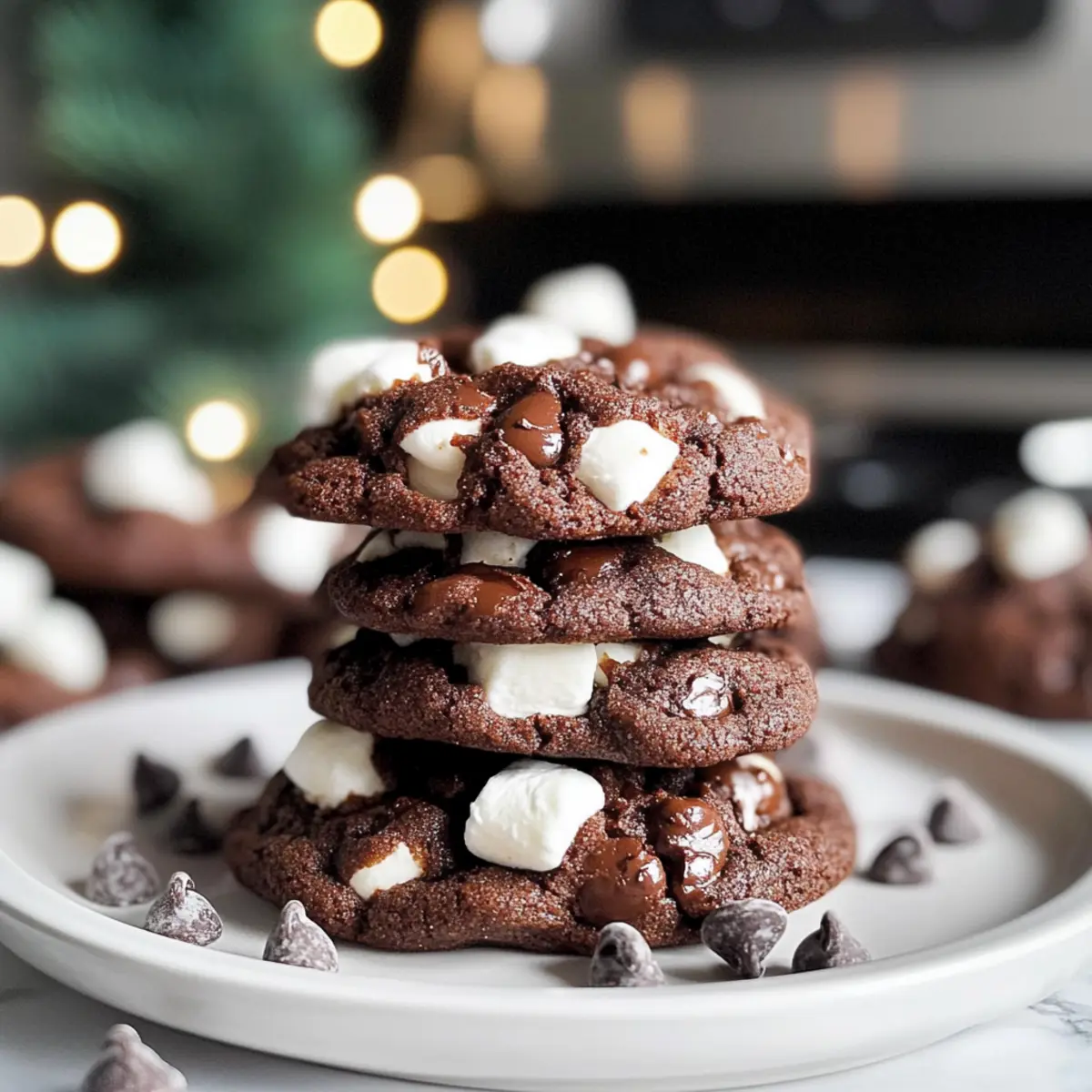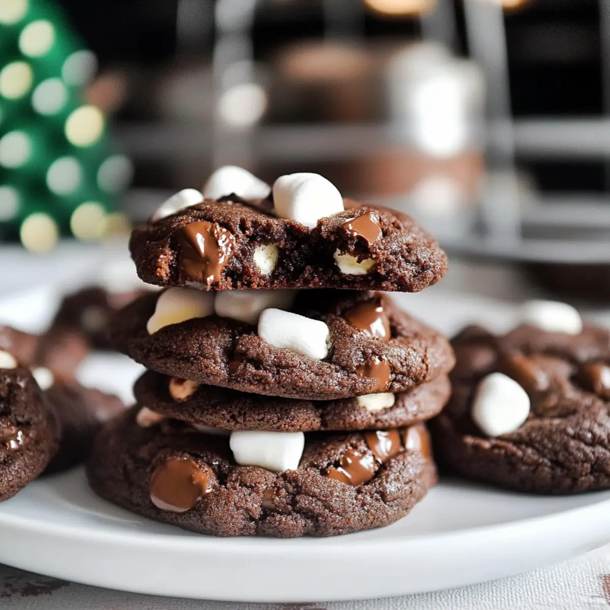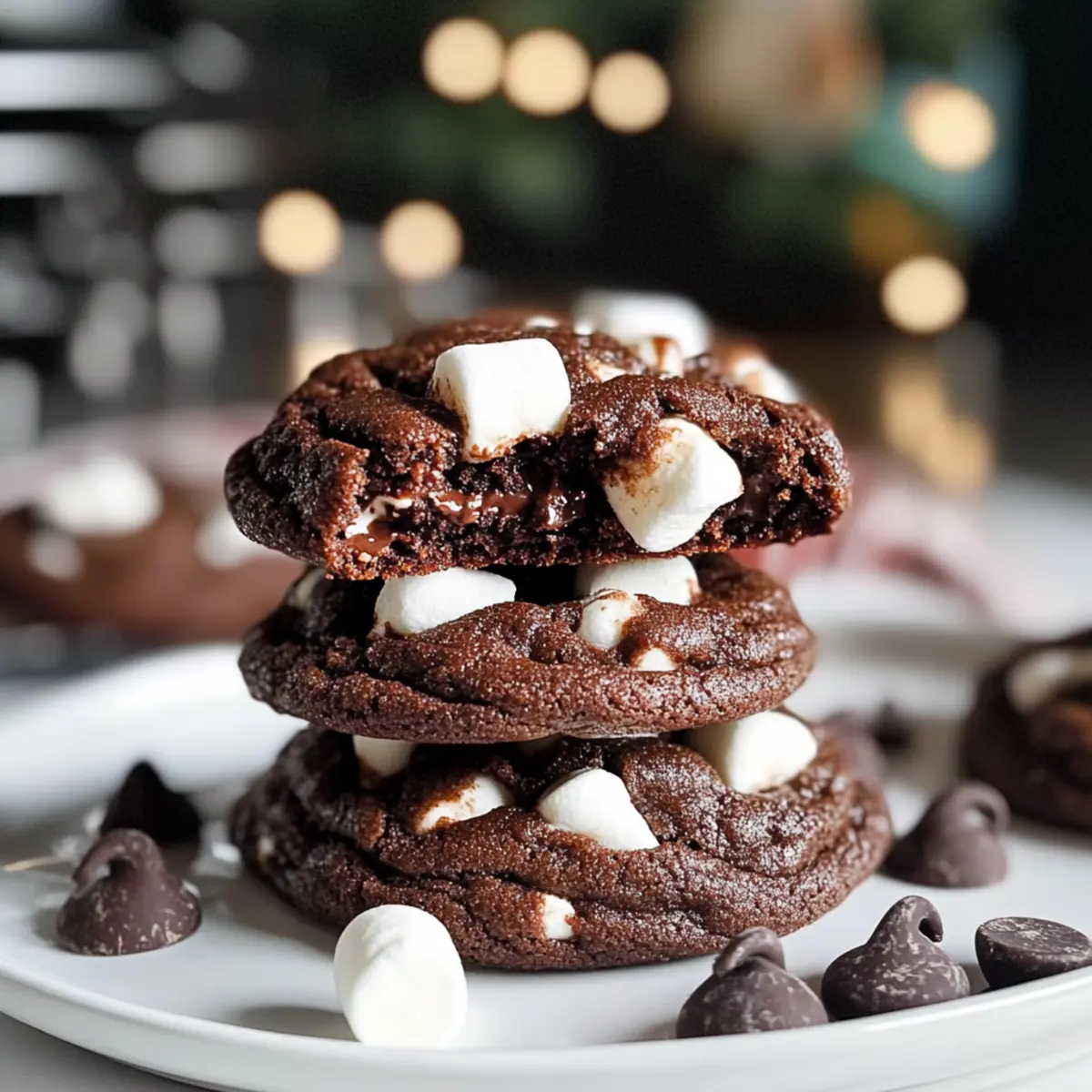 Jump to Recipe Print RecipeAs I pulled my first batch of Hot Chocolate Cookies from the oven, the rich aroma of chocolate enveloped my kitchen, instantly whisking me back to cozy winter nights with loved ones. These delightful cookies are not just a holiday treat; they effortlessly blend the deliciousness of hot cocoa with the comforting warmth of freshly baked cookies. Soft, chewy, and each filled with gooey marshmallow bits, they’re perfect for a quick indulgence or impressive cookie exchanges. Plus, the straightforward preparation makes them accessible for bakers of all skill levels. Curious about how to bring this sweet winter magic into your own home? Let’s dive into the recipe! Why are Hot Chocolate Cookies a must-try? Winter Magic: Each bite of these Hot Chocolate Cookies delivers the nostalgic goodness of your favorite hot cocoa. Easy Recipe: With minimal ingredients and simple steps, they’re perfect for bakers of all levels, making it a breeze to whip up a batch any day! Gooey Centers: The luscious marshmallow center oozes delight, ensuring they’re a hit for cookie exchanges or cozy nights at home. Endless Variations: Feeling adventurous? Try adding spices or substitute chocolate chips—like with my Mint Chocolate Chip Protein Balls for a unique twist! Quick & Convenient: These cookies bake in just 10 minutes, making them a rapid go-to for satisfying sweet cravings, and they can be tucked into school lunches or holiday gift boxes. Crowd-Pleaser: Everyone loves cookies, and these chewy, chocolatey bites topped off with extra chocolate will leave your friends and family begging for more! Hot Chocolate Cookies Ingredients • Get ready to create magic in your kitchen with these delicious Hot Chocolate Cookies! For the Cookie Dough Butter – For richness and moisture; substitute with margarine for a dairy-free option. Sugar – Sweetens the cookies; you can use white sugar instead of brown sugar or vice versa. Brown Sugar – Adds depth and moisture; light or dark brown sugar works equally well. Egg – Binds ingredients together; replace with a flax egg for a vegan variation. Milk – Contributes to a soft texture; any plant-based milk works for a dairy-free treat. Vanilla Extract – Enhances the flavor; substitute with almond extract for a nutty twist. Flour – Provides structure; use gluten-free flour for a gluten-free version. Powdered Hot Cocoa Mix – Infuses your cookies with rich chocolate flavor; a homemade mix can be used as a substitute. Unsweetened Cocoa Powder – For additional chocolate richness; dark cocoa powder can enhance the flavor. Baking Soda – A leavening agent for rise; baking powder can be used as an alternative. Salt – Balances the sweetness; consider reducing salt for a lower sodium content. For the Filling Marshmallow Bits – Creates those gooey centers; mini marshmallows can be substituted but may ooze out. Semi-Sweet Chocolate Chips – Adds delightful chocolate chunks; feel free to swap for milk or dark chocolate chips. These ingredients will bring your Hot Chocolate Cookies to life, making them a delightful treat for any occasion! Step‑by‑Step Instructions for Irresistible Hot Chocolate Cookies with Gooey Marshmallow Center Step 1: Preheat the Oven Begin by preheating your oven to 350°F (175°C). While the oven warms up, line your baking sheets with parchment paper to prevent sticking and ensure easy cleanup later. The aroma of melting chocolate and baking cookies will soon fill your kitchen, setting the stage for these delightful Hot Chocolate Cookies. Step 2: Cream the Butter and Sugars In a large mixing bowl, combine softened butter with both white and brown sugars. Using a handheld mixer or stand mixer, cream the mixture on medium speed until it’s light, fluffy, and creamy—about 2-3 minutes. This step is crucial for incorporating air, which contributes to the cookies’ chewy texture. Step 3: Add the Wet Ingredients Next, mix in one egg, milk, and vanilla extract into the creamed butter and sugar mixture. Continue to beat on medium speed until everything is well combined, scraping down the sides of the bowl with a spatula as needed. This ensures your Hot Chocolate Cookies have a smooth and flavorful base. Step 4: Incorporate Dry Ingredients Gradually add your flour, powdered hot cocoa mix, unsweetened cocoa powder, baking soda, and salt into the wet mixture. Mix on low speed until just combined, taking care not to overmix, which could toughen the cookies. You want to see little specks of chocolate in the dough, hinting at the deliciousness to come. Step 5: Fold in Marshmallow Bits and Chocolate Chips With a spatula, gently fold in the marshmallow bits and semi-sweet chocolate chips until they are evenly distributed throughout the dough. This step is where your Hot Chocolate Cookies get their gooey marshmallow center and decadent chocolate chunks, creating an irresistible contrast. Step 6: Scoop the Dough Using a cookie scoop or tablespoon, portion out the cookie dough onto your prepared baking sheets, leaving 2 inches between each scoop to allow for spreading. The dough should be slightly rounded but not overly compact. This allows the Hot Chocolate Cookies to bake evenly, creating a soft and chewy texture. Step 7: Bake the Cookies Place the baking sheets in the preheated oven and bake for 8-10 minutes, or until the edges are firm but the centers remain soft and slightly puffed. This is key for achieving the perfect chewy cookie. Remember, they will continue baking after being removed from the oven, so resist the urge to overbake! Step 8: Add Extra Toppings As soon as the cookies come out of the oven, gently press a few additional chocolate chips and marshmallow bits onto each cookie. This creates a beautiful, melty topping that enhances the presentation and flavor of your Hot Chocolate Cookies. Step 9: Cool and Transfer Allow the cookies to cool on the baking sheets for about 5 minutes—this lets them set up a bit. Then