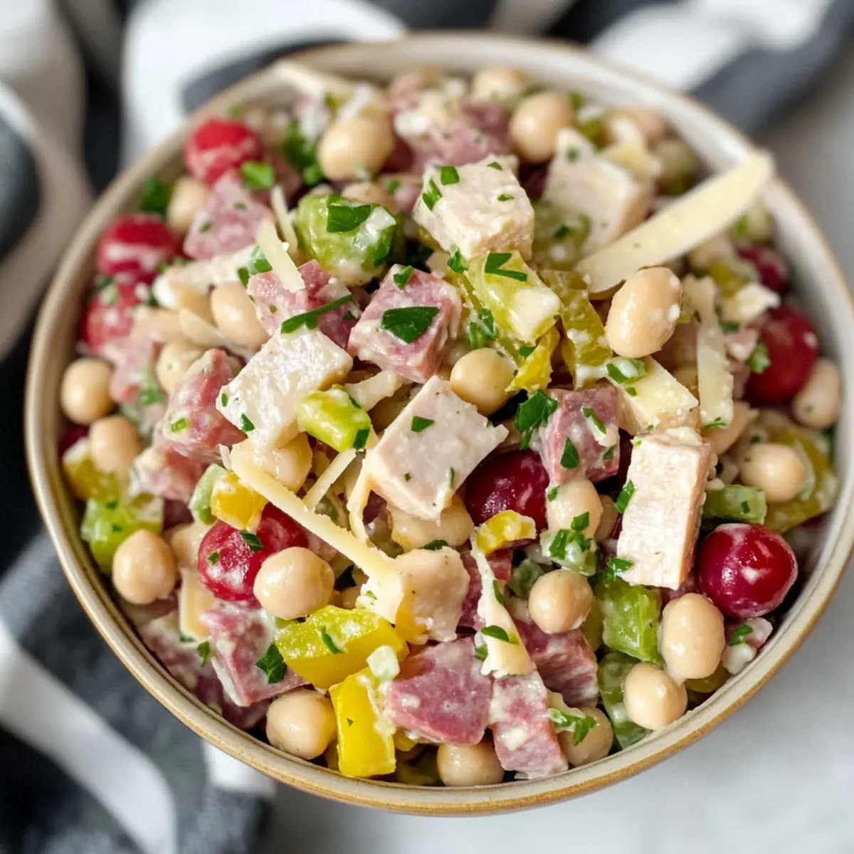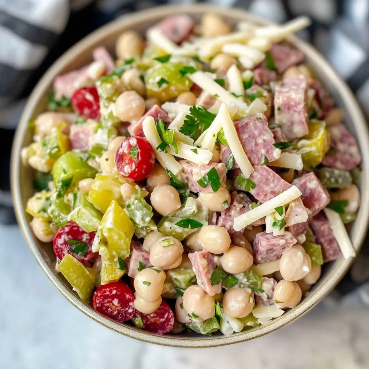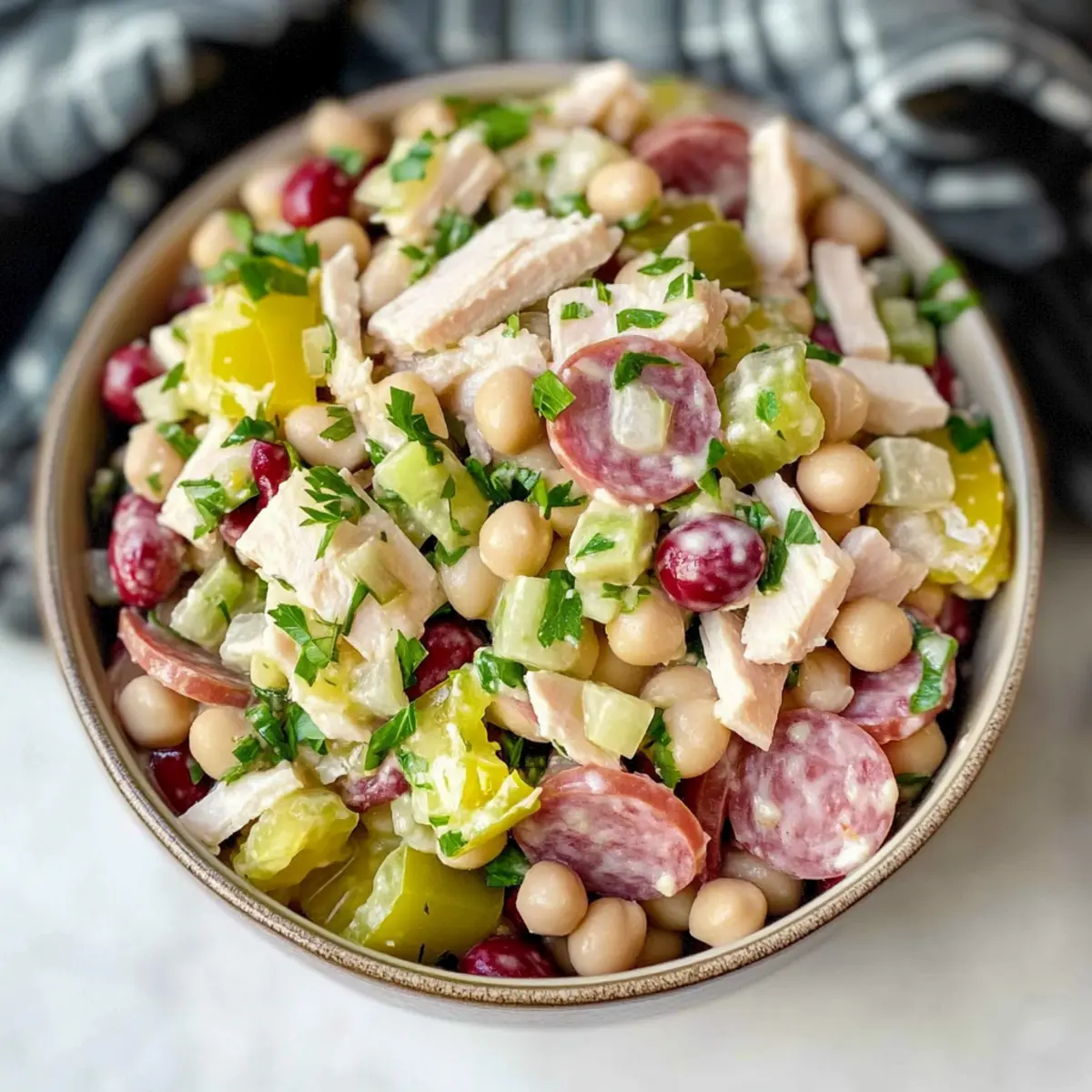 Jump to Recipe Print RecipeAs I rummaged through my pantry one afternoon, I stumbled upon a medley of beans begging to be transformed into something extraordinary. Enter the High-Protein Italian Grinder Bean Salad—a vibrant twist on the beloved Italian deli sandwich, packed with zesty goodness and wholesome nutrition. This recipe is far from your average salad; it’s a delightful combination of garbanzo beans, tender turkey, and a touch of salami, all tossed with a creamy Greek yogurt dressing. Not only is it a meal prep superstar, making it easy to enjoy healthy lunches throughout the week, but it also boasts an impressive 35 grams of protein and 12 grams of fiber per serving. Whether you’re hosting a get-together or craving a filling dinner, this salad is destined to shine on your table. Ready to discover just how delicious bean salads can be? Let’s dive in! Why is this salad a game-changer? Vibrant Flavors: Dive into a bowl brimming with the bold, zesty notes of Italian cuisine, transforming ordinary ingredients into an irresistible dish. High-Protein Powerhouse: With an impressive 35 grams of protein per serving, this salad fuels your day while keeping you satisfied. Meal Prep Friendly: Easily whip up a batch and enjoy it for days, making lunch effortless and healthy, just like my Radish Salad Roasted. Customizable Delight: Switch up the beans or add your favorite veggies, creating a salad tailored just for you! Crowd-Pleasing Appeal: This colorful dish not only looks great but tastes fantastic, making it a perfect choice for gatherings or family dinners. Unique Twist: Say goodbye to boring meals and hello to an innovative take on the classic grinder sandwich that’s both nutritious and delicious! Italian Grinder Bean Salad Ingredients • Get ready for a protein-packed delight! For the Salad Garbanzo Beans – A hearty base that boosts protein. Substitute with Great Northern beans or navy beans for variety. White Beans – Adds creaminess and fiber, enhancing texture; can be replaced with kidney beans if desired. Diced Turkey Breast – Provides lean protein; omit for a vegetarian option or swap with marinated artichoke hearts for extra flavor. Diced Salami – Introduces a savory touch; can be replaced with any cured sausage or omitted for a lighter option. Green Bell Pepper – Adds a crunchy, mild sweetness; swap with red or yellow bell peppers for a sweeter flavor. Cherry Tomatoes – Offers juiciness; can be substituted with regular diced tomatoes if necessary. Sliced Pepperoncini – Introduces tang and a hint of heat; jalapeños are a spicy alternative. Red Onion – Provides sharpness and crunch; green onions can be a milder substitute. Parsley – Adds freshness and color; can be replaced with basil or cilantro for a unique flavor twist. Provolone or Mozzarella – Gives creaminess that pairs beautifully with the dressing; use a dairy-free alternative if needed. For the Dressing Plain Greek Yogurt – Serves as the base for a creamy dressing; substitute with lactose-free yogurt or mayonnaise if preferred. Extra Virgin Olive Oil – Adds richness; can be substituted with avocado oil for a different flavor. Red Wine Vinegar – Introduces acidity; white wine vinegar or lemon juice are excellent alternatives. Pepperoncini Brine – Enhances flavor and tang; can be omitted or swapped with pickle juice for similar acidity. Dijon Mustard – Lends sharpness and helps emulsify the dressing; yellow mustard works in a pinch. Garlic – Adds aromatic depth; use garlic powder if fresh isn’t available. Dried Oregano – Provides herbal notes; Italian seasoning can be a convenient substitute. Red Pepper Flakes – Delivers a kick of heat; adjust to taste or omit for a milder salad. Sea Salt – Enhances overall flavor; adjust according to personal taste preferences. With this Italian Grinder Bean Salad, your meal is not just delicious—it’s a vibrant and nutritious offering that stands out on any table! Enjoy creating your culinary masterpiece. Step‑by‑Step Instructions for Italian Grinder Bean Salad Step 1: Make the Dressing In a medium bowl, combine 1 cup of plain Greek yogurt, ¼ cup of extra virgin olive oil, 2 tablespoons of red wine vinegar, 2 tablespoons of pepperoncini brine, and 1 tablespoon of Dijon mustard. Add 1 clove of grated garlic, 1 teaspoon of dried oregano, a pinch of red pepper flakes, and sea salt to taste. Whisk until the mixture is smooth and creamy, with a tangy aroma that hints at the delicious Italian flavors to come. Step 2: Combine the Salad Ingredients In a large mixing bowl, add 1 can of rinsed garbanzo beans and 1 can of rinsed white beans for a hearty base. Then, toss in 1 cup of diced turkey breast, ½ cup of diced salami, 1 chopped green bell pepper, and a handful of halved cherry tomatoes. To elevate the flavor, fold in ¼ cup of sliced pepperoncini, ¼ cup of finely chopped red onion, and ¼ cup of chopped fresh parsley, along with 1 cup of diced provolone or mozzarella cheese. Step 3: Dress the Salad Drizzle the freshly made dressing over the bean mixture in the large bowl. Use a sturdy spoon or spatula to gently toss the salad, ensuring each ingredient is evenly coated with the creamy dressing. The vibrant colors and textures should come together beautifully, creating a delightful rainbow of flavors that embodies the spirit of the Italian Grinder Bean Salad. Step 4: Chill and Serve Cover the salad with plastic wrap or transfer it to an airtight container, and refrigerate for at least 30 minutes. This chilling time allows the flavors to meld deliciously. Before serving, give the salad a good toss, and consider garnishing it with extra pepperoncini slices and cheese for that final touch of Italian flair. Enjoy the refreshing goodness right away or enjoy it for days as a meal prep delight! Expert Tips for Italian Grinder Bean Salad Ingredient Freshness: Use fresh vegetables and herbs to elevate the taste; wilted greens can make your It