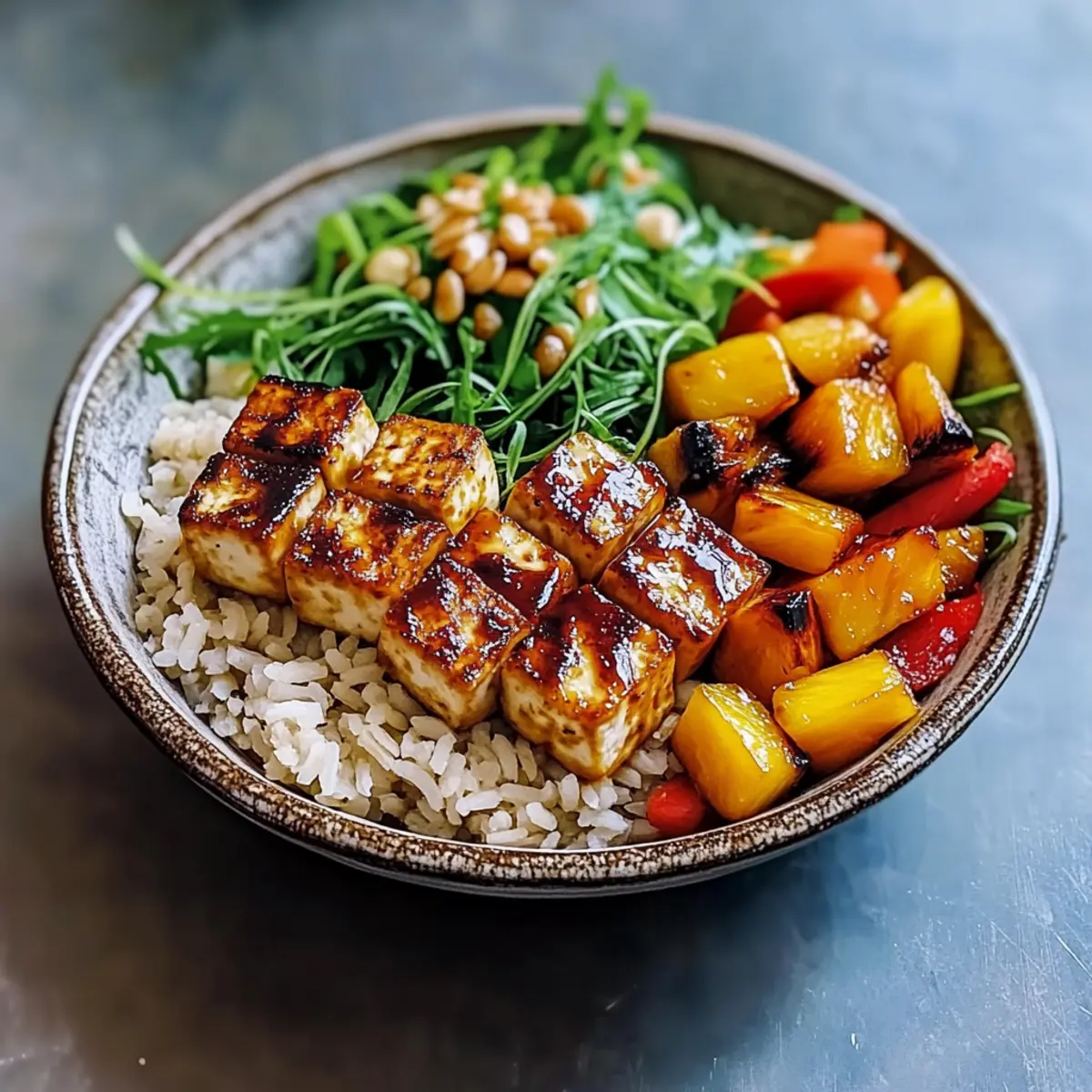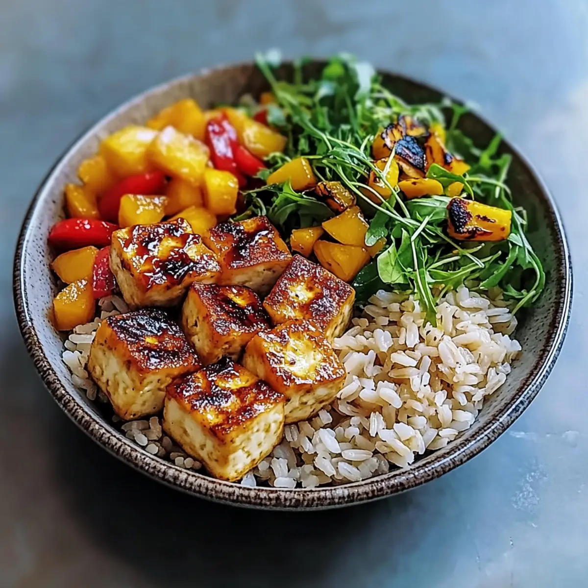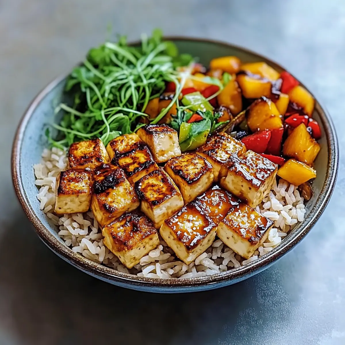 Jump to Recipe Print RecipeAs I stood in my kitchen, the lively scents of turmeric and miso wafted through the air, sparking joy in my heart. You see, there’s something magical about whipping up a batch of Katsu-Style Tofu Rice Bowls that can brighten even the busiest of weeknights. This quick, customizable meal is not only a delightful comfort food but also a healthy choice, packed with vibrant vegetables and topped with sweet, charred pineapple. With just a handful of ingredients and a mere 30 minutes to spare, you can create a dish that tantalizes the senses and leaves you feeling nourished. Whether you’re a devoted vegetarian or simply looking for a wholesome alternative to fast food, this recipe is sure to inspire your inner chef. Ready to dive into an adventure for your taste buds? Let’s get cooking! Why are Katsu-Style Bowls a Must-Try? Healthy and delicious, Katsu-Style Tofu Rice Bowls bring a nutritious twist to your dinner table. Quick to prepare, you can whip up these vibrant bowls in just 30 minutes, making them perfect for busy weeknights. Customizable to suit various tastes, feel free to swap tofu for grilled chicken or your favorite vegetables. Irresistible flavors, with the blend of curry and miso, deliver a satisfying umami punch, while crunchy textures from fresh veggies add excitement to every bite. Elevate your meal with a drizzle of mango chutney, or check out our Grilled Teriyaki Tofu for more inspiration! Katsu-Style Tofu Rice Bowls Ingredients Get ready to embark on a flavor-filled journey! For the Tofu Firm Tofu – This provides the main protein source; you can substitute with eggplant or sweet potato for a different twist. Ground Turmeric – Adds a beautiful color and earthy flavor; omit if you prefer a simpler dish. White Miso – Brings umami depth to the dish; tahini makes a great alternative. Rice Vinegar – Offers bright acidity; apple cider vinegar works as a suitable substitute. Mirin – Delivers a hint of sweetness; feel free to use honey or agave syrup instead. Breadcrumbs – Essential for that crispy coating; using panko can make it even crispier. Olive Oil – Perfect for frying tofu; vegetable or coconut oil can also be used for a different flavor. Curry Powder – Essential seasoning that enhances flavors; garam masala is a lovely swap. For the Rice and Toppings Short Grain Brown Rice – The hearty base for your bowl; quinoa is a fantastic alternative if desired. Sesame Seeds – Adds a delightful crunch and nutty flavor; you could substitute with crushed nuts. Mango Chutney – A sweet topping to tie it all together; any fruit chutney can make a great alternative. Pineapple – Provides a sweet, tropical element; feel free to swap with seasonal fruits for variety. Fresh Red Chillies – Adds a spicy kick and vibrant color; you can omit this for a milder option. Spring Onions – Offer crunch and freshness; chives or scallions are excellent substitutes. Mixed Crunchy Veg – A colorful medley for added nutrition; think carrots, sugar snaps, cucumber, and cabbage. Fresh Coriander (Cilantro) – The ultimate herb garnish that brightens up flavors; parsley can be an alternative. Hot Chili Sauce – Perfect for those who like it spicy; Sriracha or any favorite hot condiment works well. With these ingredients at hand, you’re all set to create your own delicious Katsu-Style Tofu Rice Bowls that will satisfy your cravings while keeping it healthy! Step‑by‑Step Instructions for Katsu-Style Tofu Rice Bowls Step 1: Prepare the Tofu Begin by draining and pressing the firm tofu for about 15 minutes to remove excess moisture. Then, cut it into bite-sized cubes and marinate in a mixture of turmeric, white miso, rice vinegar, mirin, and olive oil for 15 minutes, ensuring all sides are coated. This step infuses rich flavors into the tofu, making it the star of your Katsu-Style Tofu Rice Bowls. Step 2: Cook the Rice While the tofu marinates, bring a pot of water to a boil and add short grain brown rice. Reduce the heat to a simmer and cook for approximately 45 minutes until the rice is tender and fluffy. Once done, fluff the rice with a fork, allowing it to cool slightly while you prep the other components of your delicious Katsu-Style Tofu Rice Bowls. Step 3: Coat Tofu In a shallow dish, combine breadcrumbs and sesame seeds, mixing well. Take the marinated tofu cubes and gently toss them in this mixture, ensuring they’re nicely coated on all sides. The breadcrumbs will create a delightful crunch, leading to a perfect crispy texture when fried, which is essential for the Katsu-Style Tofu Rice Bowls. Step 4: Fry Tofu Heat a generous amount of olive oil in a large skillet over medium heat. Carefully add the coated tofu cubes in batches to avoid overcrowding the pan. Fry each side for about 4-5 minutes until golden brown and crispy. Keep an eye on the tofu to achieve that perfect crunchy exterior, elevating your Katsu-Style Tofu Rice Bowls to a scrumptious experience. Step 5: Char Pineapple In the same skillet used for frying tofu, add sliced pineapple and char them for about 2-3 minutes until they develop a caramelized exterior. This step adds a sweet tropical element that beautifully complements the crispy tofu and fresh veggies in your Katsu-Style Tofu Rice Bowls. Step 6: Assemble the Bowls Start assembling your Katsu-Style Tofu Rice Bowls by dividing the fluffy brown rice among serving bowls. Top each bowl with a generous portion of the crispy tofu, charred pineapple, and a vibrant selection of mixed crunchy vegetables like carrots and cucumber. Drizzle with mango chutney for added sweetness and flavor. Step 7: Serve Finish off your Katsu-Style Tofu Rice Bowls by garnishing with freshly chopped red chillies and coriander for an extra burst of color and flavor. Serve with your favorite hot chili sauce on the side, allowing guests to personalize the heat level to their taste, ensuring a delightful dining experience. What to Serve with Katsu-Style 