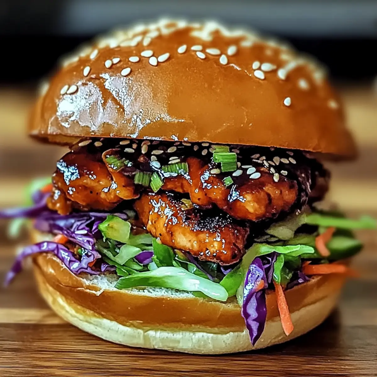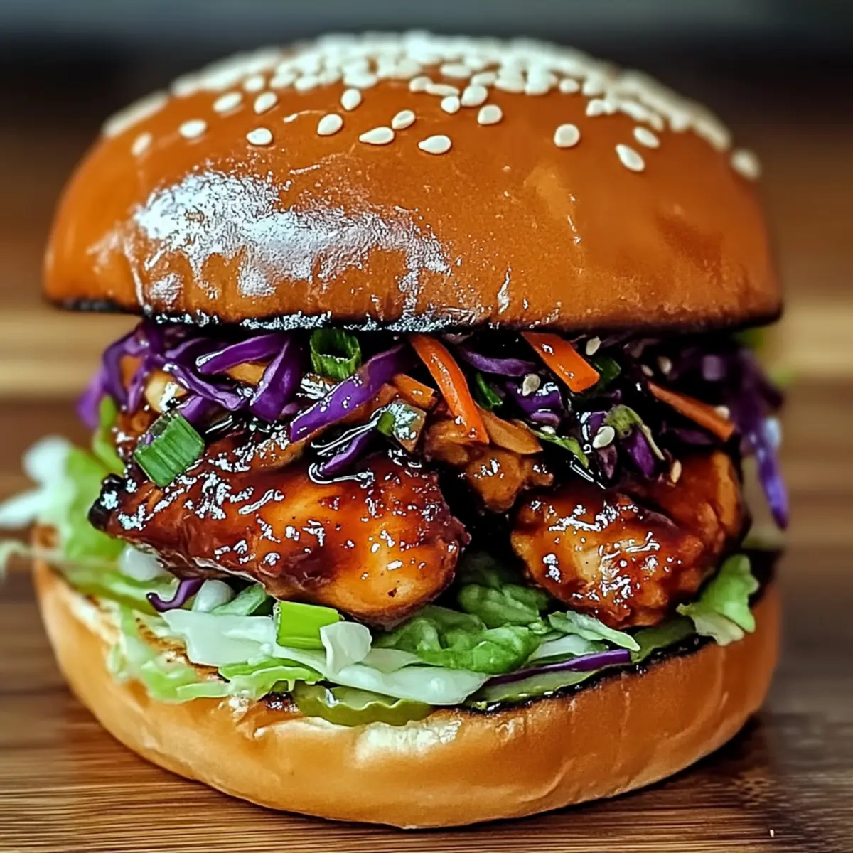 Jump to Recipe Print RecipeAs I took a bite of the Korean BBQ Chicken Sandwich with Crunchy Slaw, a delightful explosion of flavors reminded me why I love cooking at home. The tender marinated chicken combined with the crisp freshness of the slaw is a match made in culinary heaven, all coming together in under 30 minutes. Not only is this dish a crowd-pleaser for your next backyard BBQ, but it also offers an easy weeknight meal that’s customizable for every dietary need. Whether you’re craving succulent chicken or a vegan twist, this sandwich has you covered. Are you ready to elevate your sandwich game? Let’s dive into the delicious details! Why is this sandwich a must-try? Deliciously Bold Flavors: The harmonious blend of savory marinated chicken and crunchy slaw makes each bite an explosion of taste. Quick to Make: Ready in under 30 minutes, it’s perfect for busy weeknights or last-minute gatherings. Customizable Options: Vegan friends can enjoy it too! Simply swap chicken for tofu or tempeh and use vegan mayo. Perfect for Any Occasion: This sandwich is great for summer cookouts and casual family dinners alike. Pair it with sweet potato fries or a refreshing Asian noodle salad for a complete meal! Satisfying Textures: The tender chicken and crunchy slaw create an irresistible contrast, making every bite truly memorable. Korean BBQ Chicken Sandwich Ingredients • For the Chicken Marinade Chicken Thighs – Juicy protein base for the sandwich; substitute with chicken breasts for a leaner option. Soy Sauce – Provides saltiness and umami flavor; opt for low-sodium for a healthier take. Brown Sugar – Adds sweetness and supports caramelization; can be replaced with coconut sugar. Honey – Enhances sweetness and moisture; substitute with agave nectar for a vegan option. Gochujang – Delivers heat and depth; reduce for a milder taste or switch to sriracha if preferred. Rice Vinegar – Adds acidity to balance flavors; apple cider vinegar works as an alternative. Sesame Oil – Infuses richness and nutty aroma; avoid if there are sesame allergies. Garlic – Fresh aromatics that elevate flavor; use minced fresh for the best results. Ginger – Freshly grated adds warmth; ideal for enhancing flavor. • For the Crunchy Slaw Green & Red Cabbage – Provides crunch and vibrant color; can substitute red cabbage with more green if needed. Carrot – Adds sweetness and crunch; julienne or grate as preferred. Mayonnaise – Creamy base for the dressing; use vegan mayo for a plant-based version. Salt and Black Pepper – Essential seasonings to amplify flavors; adjust to taste. • For the Sandwich Assembly Brioche or Potato Buns – Soft sandwich holders; opt for gluten-free buns if required. Butter – Used for toasting the buns for added flavor and golden color; can omit for a dairy-free option. Dive into the delightful world of this Korean BBQ Chicken Sandwich with Crunchy Slaw and experience the perfect balance of flavors and textures! Step‑by‑Step Instructions for Korean BBQ Chicken Sandwich with Crunchy Slaw Step 1: Marinate the Chicken In a mixing bowl, whisk together soy sauce, brown sugar, honey, gochujang, rice vinegar, sesame oil, garlic, and ginger until well combined. Add the chicken thighs, ensuring they are fully coated in the marinade. Cover the bowl and let it marinate for 20 minutes to 2 hours in the refrigerator for maximum flavor infusion. Step 2: Prepare the Slaw While the chicken marinates, prepare the crunchy slaw by combining shredded green and red cabbage with julienned carrot in a separate bowl. In another small bowl, whisk mayonnaise, a splash of rice vinegar, a pinch of sugar, salt, and black pepper. Pour this dressing over the slaw mixture and toss well to coat. Chill the slaw in the fridge to let the flavors meld. Step 3: Cook the Chicken Heat a skillet over medium-high heat and remove the marinated chicken from the bowl, shaking off any excess marinade. Cook the chicken for about 6-7 minutes on each side, or until beautifully browned and reaches an internal temperature of 165°F (75°C). Once cooked, let the chicken rest for 5 minutes before slicing it into generous pieces. Step 4: Toast the Buns While the chicken rests, prepare the brioche or potato buns. Spread butter on the cut sides of each bun, then place them in the hot skillet or under a broiler. Toast until golden brown, which should take about 2-3 minutes. Keep a close eye to prevent burning, as you want them perfectly crispy. Step 5: Assemble the Sandwich Now it’s time to build your delicious Korean BBQ Chicken Sandwich! Place a generous slice of the grilled chicken on the bottom half of each toasted bun. Optionally drizzle with extra BBQ sauce, then layer on a heap of the crunchy slaw. Finally, crown it with the top half of the bun to finish your sandwich masterpiece. Expert Tips for Korean BBQ Chicken Sandwich Marinate Longer: The longer you marinate the chicken, the better the flavor. Aim for at least an hour, or even overnight for the best results. Avoid Crowding: When cooking the chicken, avoid overcrowding the skillet. This ensures even cooking and helps achieve a nice char without steaming. Toast with Care: Don’t skip toasting the buns! It helps prevent them from becoming soggy. If you’re using gluten-free buns, toast them just a bit longer for best texture. Taste and Adjust: Always taste your slaw dressing before adding it to the cabbage. Adjust the sweetness and acidity to fit your personal preference for the Korean BBQ Chicken Sandwich. Load Up on Veggies: Feel free to add or substitute veggies in the slaw. Cucumbers, radishes, or even mango can enhance crunch and flavor while making it your own! What to Serve with Korean BBQ Chicken Sandwich with Fresh Cabbage Slaw If you’re looking to create a memorable meal around this vibrant sandwich, the right sides and drinks can elevate your dining experience to new heights. Sweet Potato Fries: Crispy on the outside and soft inside, 