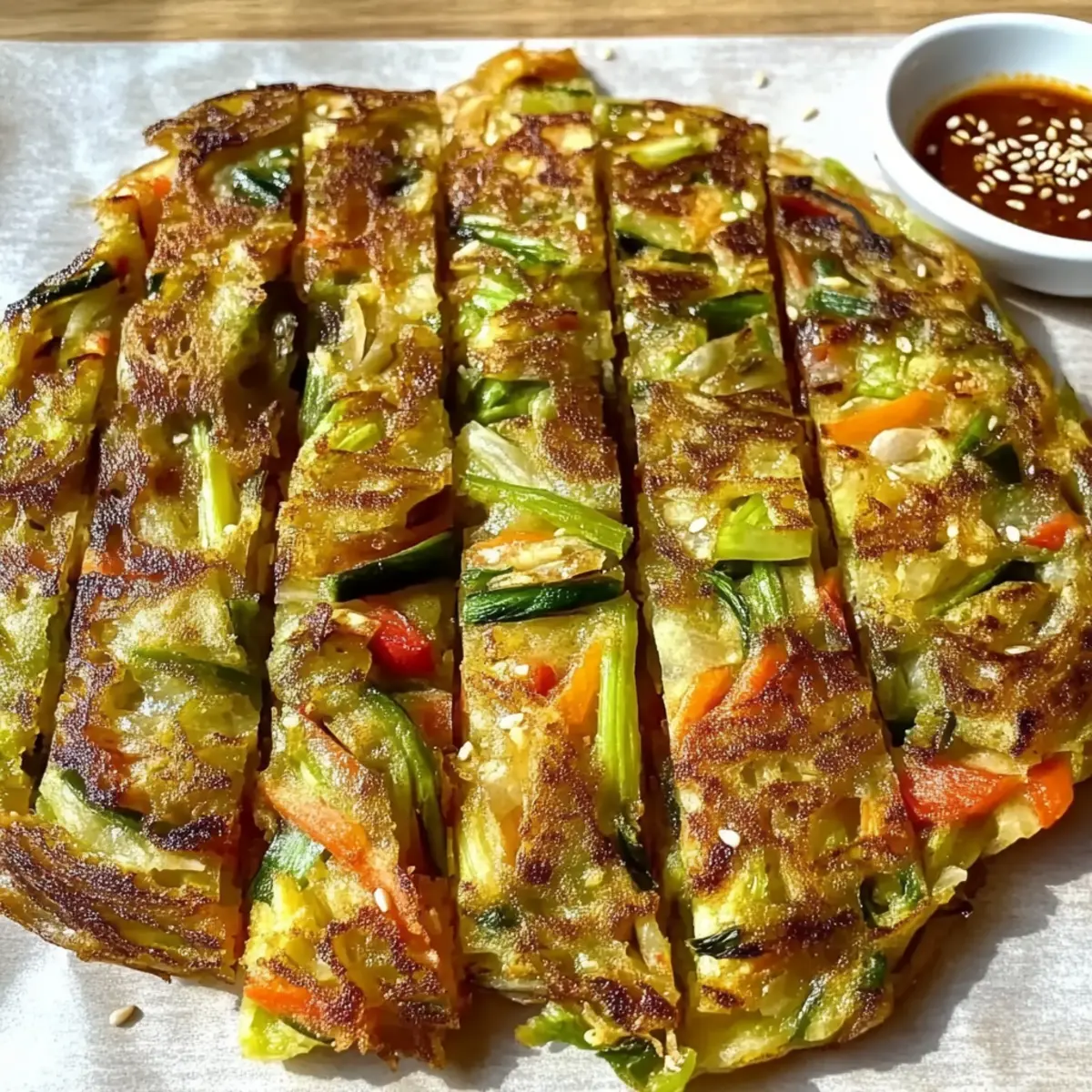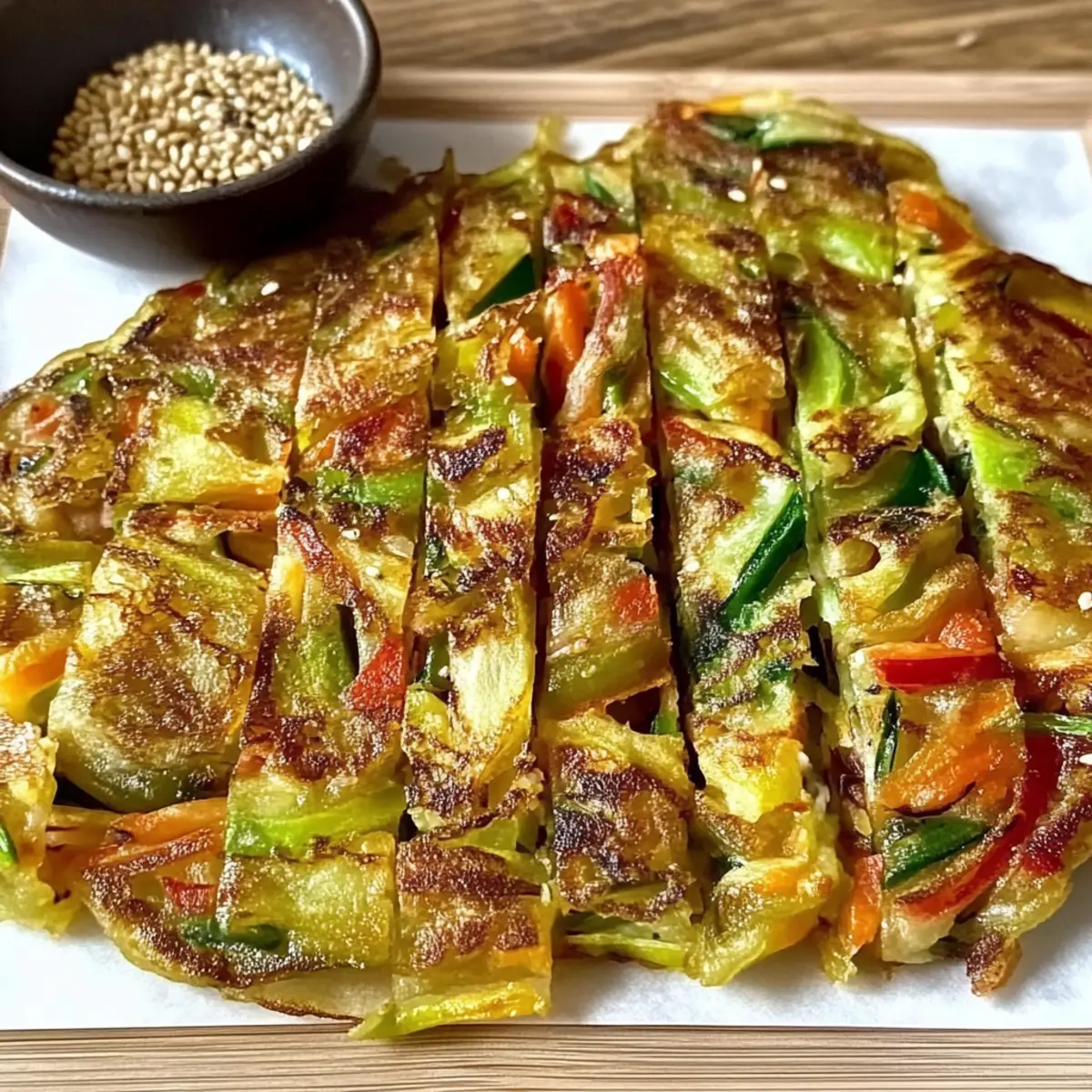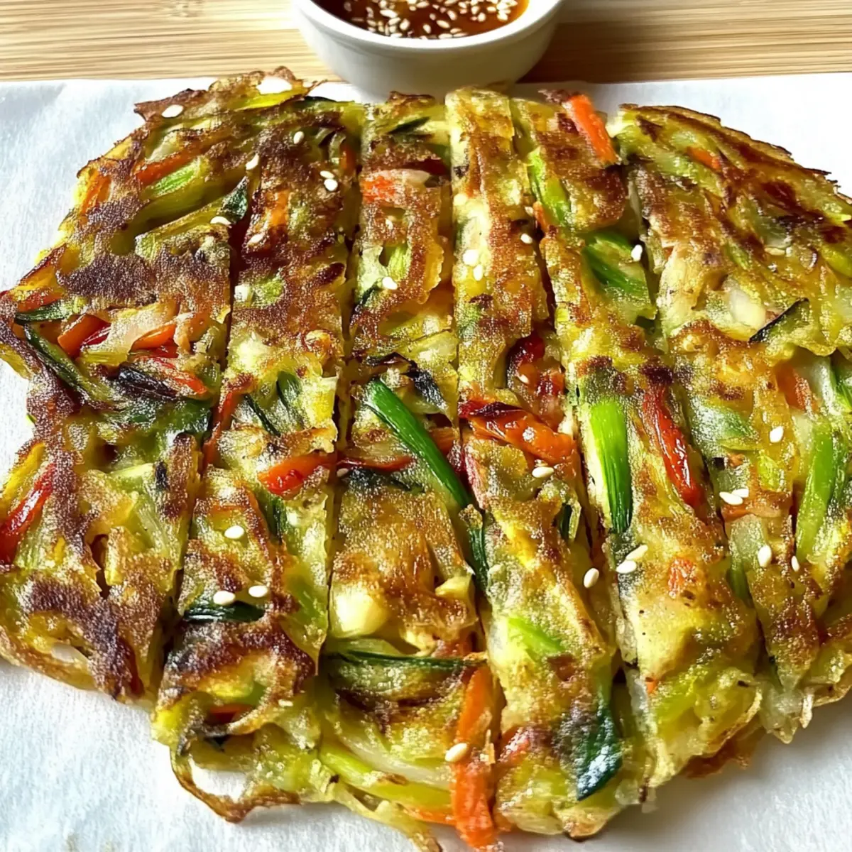 Jump to Recipe Print RecipeAs I stood in my kitchen, the vibrant colors of fresh vegetables beckoned from the countertop, sparking the idea to whip up a batch of crispy Korean Vegetable Pancakes, or Yachaejeon. The sound of the sizzling batter hitting the pan was music to my ears, promising a savory crunch with each bite. This recipe is not only easy to prepare but also a fantastic way to sneak some veggies into your day. Whether you’re looking for a quick snack, a delightful side dish, or a simple meal that can be enjoyed warm or cold, these pancakes are sure to satisfy. Plus, with the option to customize them based on seasonal ingredients, each version tells a delicious story. Are you ready to savor the taste of Korea in your own kitchen? Why Are Korean Vegetable Pancakes So Irresistible? Crispy, these pancakes deliver the texture you crave, with a golden-brown exterior that’s perfectly crunchy. Colorful veggies add not just beauty but a burst of flavor, making each bite a delight. Versatile and customizable, you can swap ingredients based on what’s in season or your pantry—try adding mushrooms or kimchi for a unique twist! Quick and easy to prepare, they fit seamlessly into any busy schedule, serving as a healthy, delicious alternative to fast food. Ideal for sharing, whether as a finger food for gatherings or a side to your favorite Korean BBQ, they guarantee to impress every guest! Want to explore more delightful Asian dishes? Don’t miss out on these Korean Ramen Grilled recipes! Korean Vegetable Pancakes Ingredients • Get ready for a flavorful twist! For the Batter Flour – Provides structure and base; use all-purpose flour or a gluten-free blend for variations. Cornstarch – Enhances crispiness; ensure it’s gluten-free if needed. Water – Hydrates the batter for the desired consistency. Turmeric – Adds vibrant color and a hint of warmth. Salt – Enhances flavor. Baking Powder – Helps with leavening for a fluffy interior. For the Vegetables Green Onions – Provides fresh taste and crunch; other fresh herbs can be used for added flavor. Red Onion – Adds sweetness and color. Carrot – Contributes sweetness and texture; substitute with zucchini for a different flavor. Red Pepper – For color and sweetness. Cabbage – Adds crunch and bulk; can replace with leafy greens for a fresh twist. Hot Pepper – Introduces a spicy kick; optional based on heat preference. For Frying and Dipping Oil for Frying – Necessary for crisping; use a neutral oil or add sesame oil for extra flavor. Soy Sauce – Main component of the dipping sauce. Rice Vinegar – Adds acidity to balance flavors. Toasted Sesame Seeds – For texture and nutty flavor. Chili Flakes – Optional for heat in the sauce. Sesame Oil – Imparts rich flavor to the dipping sauce. Dive into your culinary adventure with these Korean Vegetable Pancakes, bursting with fresh vegetables, and let every bite be a celebration of flavor! Step‑by‑Step Instructions for Korean Vegetable Pancakes Step 1: Prepare the Vegetables Start by washing and slicing your vegetables: green onions, red onion, carrot, red pepper, cabbage, and any optional hot pepper. Aim for uniform, thin slices to ensure even cooking. Let the vibrant colors of your fresh veggies inspire you as you cut them into ideal shapes, perfect for mixing into your Korean Vegetable Pancakes. Step 2: Make the Batter In a large mixing bowl, combine all-purpose flour, cornstarch, turmeric, salt, and baking powder. Gradually add water while whisking until the mixture is smooth and lump-free. The batter should be thick but pourable—it will hold the chopped veggies together. This batter acts as the heart of your Korean Vegetable Pancakes, giving them a lovely texture. Step 3: Combine Mixtures Gently fold the prepared vegetables into the batter until they are evenly coated. Make sure not to over-mix, as you want the vegetables to maintain some structure. The vibrant mix of colors should be visible through the thick batter, adding to the anticipation of your crispy Korean Vegetable Pancakes. Step 4: Prepare the Dipping Sauce In a small bowl, whisk together soy sauce, rice vinegar, sesame oil, toasted sesame seeds, and optional chili flakes for a flavorful dipping sauce. Adjust the flavors to your liking, ensuring a balance of salty and tangy. Set this aside to allow the flavors to meld while you cook the pancakes. Step 5: Heat the Pan Place a non-stick skillet over medium heat and add enough oil to generously coat the bottom. Wait for the oil to shimmer, a sign that it’s hot enough. This step is crucial for achieving that golden, crispy exterior on your Korean Vegetable Pancakes. Warm oil invites a satisfying sizzle as you prepare to cook. Step 6: Cook the Pancakes Pour a ladleful of batter into the hot pan, spreading it into a thin circle. Cook for about 3-4 minutes or until the bottom is beautifully golden. Carefully flip the pancake using a spatula and cook for an additional 3-4 minutes until both sides are crisp and inviting. Repeat with the remaining batter, ensuring the pan isn’t overcrowded. Step 7: Serve Once all your Korean Vegetable Pancakes are cooked, arrange them on a serving platter while they’re still warm. Serve with the dipping sauce on the side, encouraging everyone to indulge in the crispy, savory goodness. These pancakes can be enjoyed immediately, bringing the vibrant flavors of Korea right to your table. Korean Vegetable Pancakes Variations & Substitutions Feel free to explore these creative twists on the classic Korean Vegetable Pancakes, making each bite a new adventure! Dairy-Free: Substitute any dairy-based dips with a tahini sauce or a vegan soy sauce dip for a creamy texture. Gluten-Free: Use a gluten-free flour blend instead of all-purpose flour, and double-check cornstarch is gluten-free for a safe option. Extra Crunch: Add crushed rice crackers or panko breadcrumbs to the batter for an irresistible crunch that elevates the