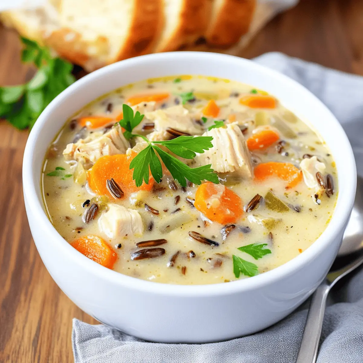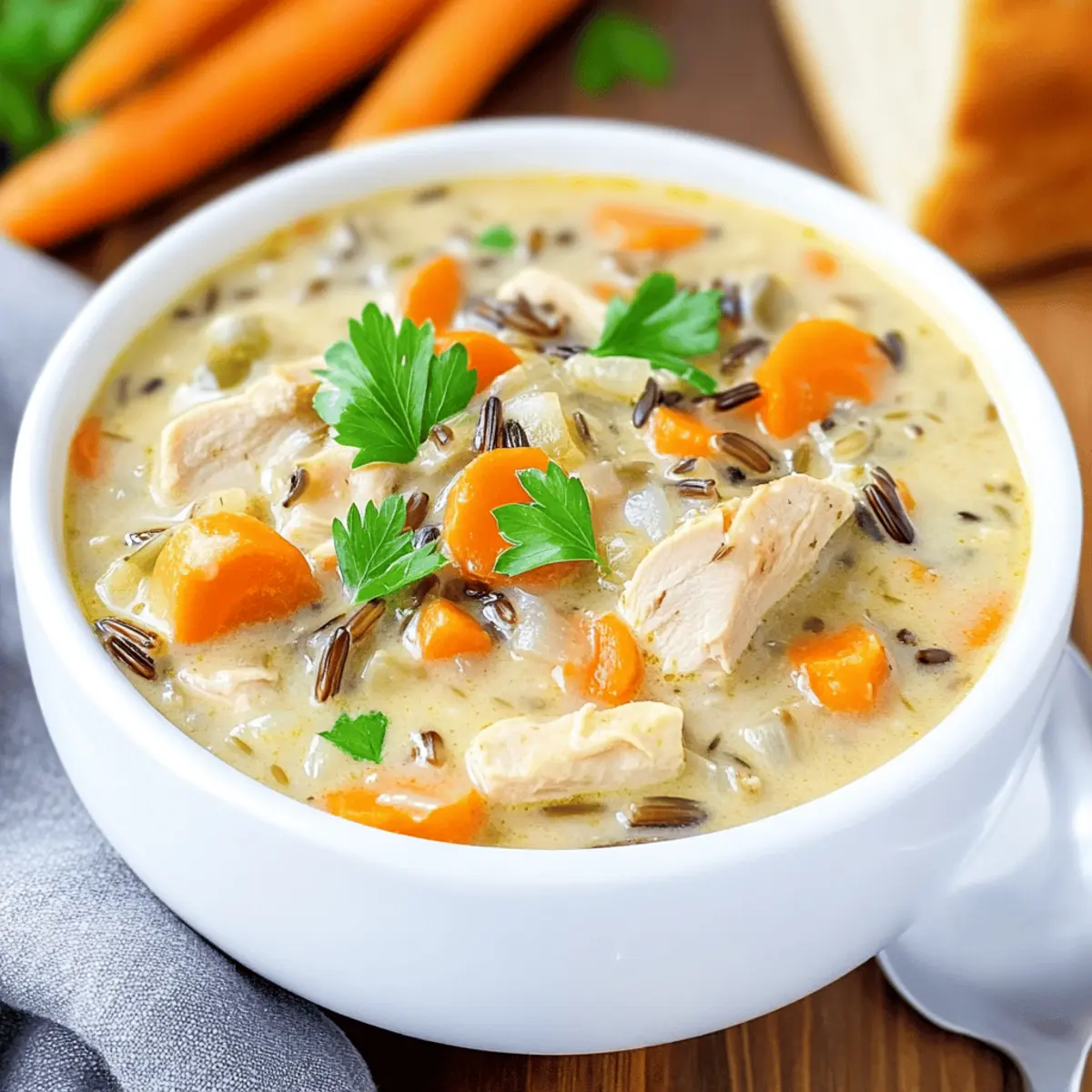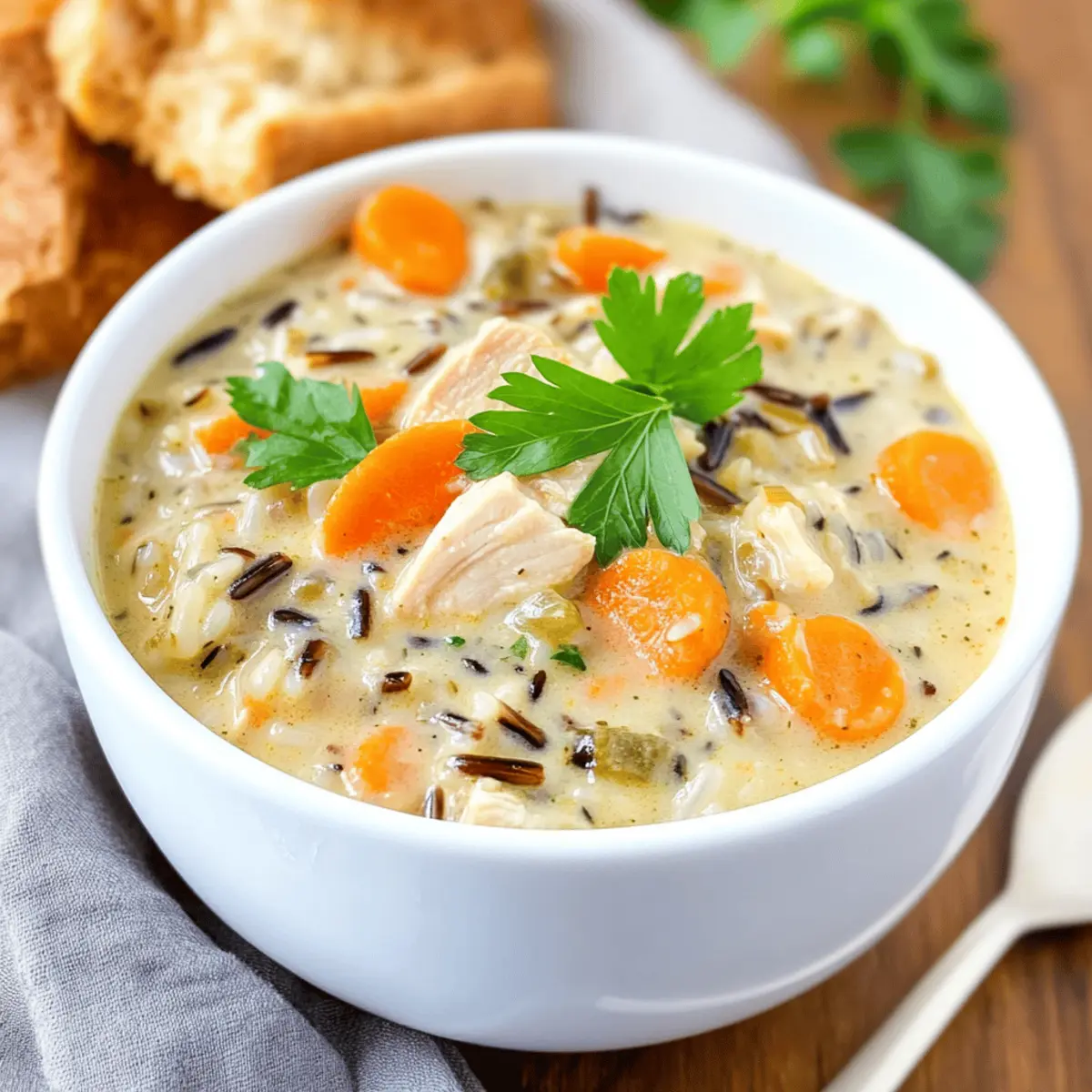 Jump to Recipe Print RecipeAs the last bits of turkey from our holiday feast sat in the fridge, an idea sparked—a cozy bowl of creamy leftover turkey and wild rice soup was the calling. There’s something truly heartwarming about transforming what would typically be waste into a nourishing dish that brings together family and friends. This Leftover Turkey and Wild Rice Soup not only boasts creamy goodness, but it also makes a perfect quick meal to satisfy those comfort food cravings. With just a bit of chopping and simmering, you’ll create a hearty delight packed with tender vegetables and a rich broth, ideal for chilly evenings. Wondering how to make the most of your leftovers while indulging in a healthy dish? Let’s dive into this delightful recipe that will have your taste buds dancing and your family requesting seconds! Why Is This Leftover Soup So Special? Hearty Comfort: This creamy soup is your ultimate comfort food during those chilly nights, combining tender vegetables and satisfying wild rice. Quick & Easy: With minimal prep time, it’s perfect for busy evenings when you want something nutritious without spending hours in the kitchen. Waste Not, Want Not: Transform your leftover turkey into a delightful dish, reducing food waste while creating something truly delicious. Versatile Base: Feel free to customize by adding vegetables like peas or corn, or substitute turkey with chicken for variety. Crowd Pleaser: It’s a dish the whole family will love, with flavors that will keep them coming back for more! Pair it with cornbread for a complete meal that feels extra special, just like with our Tortellini Soup Cozy. Leftover Turkey and Wild Rice Soup Ingredients • Elevate your soup with these fresh, wholesome ingredients. For the Soup Base Onion – Adds flavor and aroma; use yellow or white onions for sweetness. Celery – Provides crunch and flavor depth; fennel can be used for a unique taste. Garlic – Enhances overall flavor; fresh garlic is recommended for the best taste. Carrots – Adds sweetness and color; parsnips can be substituted for a different flavor. Avocado Oil – Used for sautéing; olive oil or butter are good replacements. For the Main Ingredients Wild Rice Blend – The foundation of the soup, providing chewiness and heartiness; brown rice can be used if needed. Chicken or Turkey Broth – Creates a rich soup base; feel free to use homemade for enhanced flavor. Water – Dilutes the broth as needed; adjust according to your desired soup thickness. Turkey – Leftover meat that adds protein; chicken can be swapped in if needed. For Creaminess Butter/Ghee/Vegan Butter – Thickens the soup and adds richness; a plant-based fat is a great vegan option. Whole Wheat Pastry Flour – Thickener for the roux; gluten-free all-purpose flour works as an alternative. Milk – To achieve a creamy texture; any type of milk including plant-based options is fine. For Garnish Chopped Parsley – Optional garnish that adds a fresh touch to your leftover turkey and wild rice soup. Step‑by‑Step Instructions for Leftover Turkey and Wild Rice Soup Step 1: Prepare the Vegetables Finely chop one onion and mince two cloves of garlic. Then, slice two stalks of celery and two carrots thinly using a mandolin or food processor for even cooking. Having all your vegetables prepped creates a smooth cooking process as you assemble your creamy leftover turkey and wild rice soup. Step 2: Sauté the Aromatics In a large stockpot, heat two tablespoons of avocado oil over medium-high heat. Add the chopped onion and minced garlic, sautéing for about 5 minutes until the onions turn translucent and fragrant. The aroma will create a lovely base for your soup as you layer in the flavors. Step 3: Add the Vegetables After the onions and garlic are ready, add the sliced celery and sauté for an additional 2 minutes. Then, toss in the thinly sliced carrots and cook for another 2 minutes. This process helps to soften the veggies, ensuring they contribute their sweetness to the leftover turkey and wild rice soup. Step 4: Combine Broth and Rice Pour in 6 cups of chicken or turkey broth and 2 cups of water into the stockpot, stirring well. Next, add 1 cup of wild rice and 1 tablespoon of poultry seasoning. Bring the mixture to a boil, then cover and reduce the heat to a gentle simmer, allowing it to cook for 45 minutes, until the rice is tender and the flavors meld beautifully. Step 5: Incorporate Turkey Once the wild rice is cooked, add 2 cups of shredded leftover turkey to the soup. Stir gently to incorporate the turkey, allowing it to warm through for about 5 minutes. This step fills your creamy leftover turkey and wild rice soup with protein and hearty goodness. Step 6: Make the Roux In a separate saucepan over medium heat, melt 2 tablespoons of butter. Whisk in 2 tablespoons of whole wheat pastry flour and cook for about 2 minutes to create a roux, which will thicken your soup. Stir until it’s light golden brown, ensuring it doesn’t burn for the best texture. Step 7: Create the Creamy Base Gradually whisk in 2 cups of milk to the roux, stirring constantly until the mixture is smooth and thickened, about 3-4 minutes. Once ready, you’ll have a creamy base that will enhance the overall richness and comfort of your leftover turkey and wild rice soup. Step 8: Combine and Serve Stir the creamy roux into the stockpot with the soup until fully incorporated and heated through. Taste and adjust seasoning if needed. Serve your healthy leftover turkey and wild rice soup warm, garnishing with freshly chopped parsley for a delightful finish. What to Serve with Healthy Leftover Turkey and Wild Rice Soup Elevate your cozy bowl of soup with these delightful pairings that will warm your heart and satisfy your appetite. Cornbread: This slightly sweet, buttery bread complements the creamy texture of the soup, making every sip and bite a comforting treat. Crusty Bread: A perfect side for dipping, crusty bre
