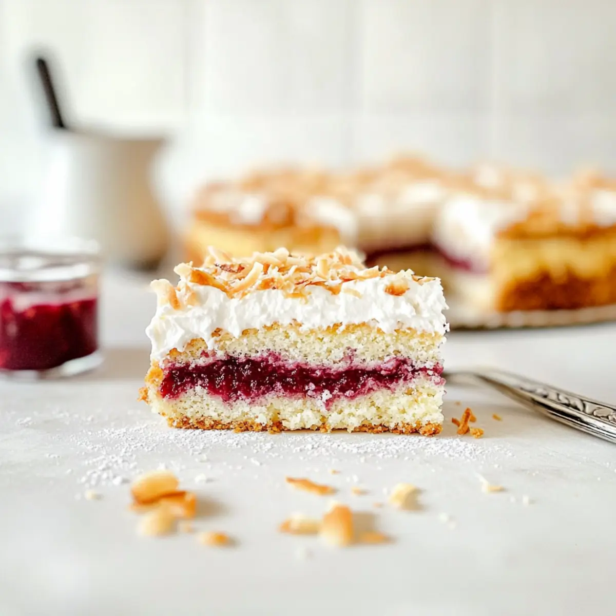 Jump to Recipe Print RecipeAs I sat sipping tea on a rainy afternoon, I couldn’t help but reminisce about my grandmother’s kitchen where the scent of fresh baking wafted through the air. One of her cherished recipes was the Classic New Zealand Louise Cake, a delightful creation featuring a buttery vanilla shortbread base, tangy raspberry jam, and a fluffy coconut Swiss meringue that melts in your mouth. This homemade dessert is not only a nostalgic trip down memory lane, but it’s also perfect for gathering friends and family around the table. Whether you’re looking to impress at your next gathering or simply crave a slice of something sweet, this cake is a true crowd-pleaser. Plus, it’s surprisingly easy to whip up and can even be customized gluten-free by swapping in specific flours! Curious about how to recreate this classic dessert? Let’s dive into the delightful layers of Louise Cake together! Why is Louise Cake so special? Tradition Matters: This Classic New Zealand Louise Cake is a beloved favorite, steeped in nostalgia and family gatherings. Delicious Layers: With its buttery shortbread base, tangy raspberry jam, and fluffy coconut Swiss meringue, each forkful offers a delightful harmony of flavors. Customizable Options: Feel free to swap out the jam for your preferred fruit or even use nuts in the meringue for a fun twist! No Fuss Baking: Despite its impressive appearance, the recipe is straightforward, making it perfect for bakers of all skill levels. Perfect for Sharing: Whether you’re serving it during afternoon tea or at a joyful get-together, it’s sure to be a crowd-pleaser—just like my favorite Strawberry Spoon Cake that brings smiles at every celebration! Louise Cake Ingredients For the Base • Unsalted Butter – Provides richness and moisture; feel free to use salted butter if that’s what you have on hand. • Granulated Sugar – Sweetens the base for a tender texture; you can substitute caster sugar if that’s your preference. • All-Purpose Flour – Creates the structure of the cake; opt for gluten-free flour for a gluten-free version. • Eggs – Essential for stability; use two yolks in the base and five whites in the meringue, but you can reduce to three for a thinner layer. For the Jam Layer • Raspberry Jam – Adds a burst of tartness and sweetness; feel free to swap in your favorite fruit jam for customization. For the Meringue Topping • Egg Whites – Whip to stable peaks for fluffy meringue; using room-temperature whites will yield the best results. • Shredded Coconut – Adds delicious texture and flavor; desiccated coconut can also be used without altering the amount. • Granulated Sugar (for Meringue) – Helps stabilize the meringue; it’s essential for achieving that delightful airy texture. Each of these ingredients plays a crucial role in crafting the delightful layers of the Louise Cake, making it a truly special treat that brings joy to every gathering! Step‑by‑Step Instructions for Louise Cake Step 1: Prepare the Pan Preheat your oven to 350°F (180°C) and line a 9″ square baking pan with parchment paper, allowing the paper to hang over the edges for easy removal later. This will ensure that the Louise Cake doesn’t stick to the pan, helping you achieve neat slices after baking. Step 2: Make the Base In a mixing bowl, cream together ½ cup of unsalted butter and ½ cup of granulated sugar until the mixture is pale and fluffy. Add two egg yolks, mixing well after each addition, then gradually incorporate 1 cup of all-purpose flour to form a soft dough. Press this dough evenly into the lined baking pan, creating a smooth base for your Louise Cake. Step 3: Spread the Jam Once the base is prepared, spread ½ cup of raspberry jam evenly over the surface, covering it fully to ensure every bite is packed with flavor. This sweet and tangy layer adds delightful contrast to the buttery shortbread, setting the stage for the fluffy topping to come. Step 4: Prepare the Meringue In a heatproof bowl over a double boiler, whisk together five egg whites and ¾ cup of granulated sugar until well combined, then heat gently. Continue whisking until the sugar dissolves and the mixture reaches about 120°F (49°C), about 5 minutes, then remove from heat. Beat the mixture with an electric mixer until it forms stiff peaks and is glossy; this creates the light, airy texture essential for the Louise Cake’s meringue. Step 5: Fold in Coconut Once your meringue has reached stiff peaks, carefully fold in 1 cup of shredded coconut using a spatula. Take care to maintain the airiness of the meringue as you mix; this ingredient adds wonderful flavor and texture to the topping that perfectly complements the layers below. Step 6: Assembly Spread the meringue mixture over the raspberry jam layer, smoothing the top with a spatula. Aim for an even layer, allowing it to reach the edges of the baking pan. This fluffy topping will provide a satisfying contrast to the dense shortbread bottom, elevating your Louise Cake to new heights. Step 7: Bake Place the assembled cake in your preheated oven and bake for about 30 minutes, or until the meringue is set and lightly browned. Keep an eye on it towards the end for that perfect golden hue, which indicates that the meringue is both fluffy and lightly crisped. Step 8: Cool and Serve After baking, remove the Louise Cake from the oven and let it cool completely in the pan for a minimum of an hour. Once cooled, use the parchment paper to lift it out and slice into squares. This cooling period ensures that the meringue sets properly and prevents it from cracking when cut. What to Serve with Classic New Zealand Louise Cake As you prepare to indulge in the layers of this nostalgic dessert, consider a few delightful accompaniments that elevate the experience even further. Fresh Berries: A medley of strawberries, blueberries, and raspberries adds a pop of color and refreshing acidity that complements the sweet lay