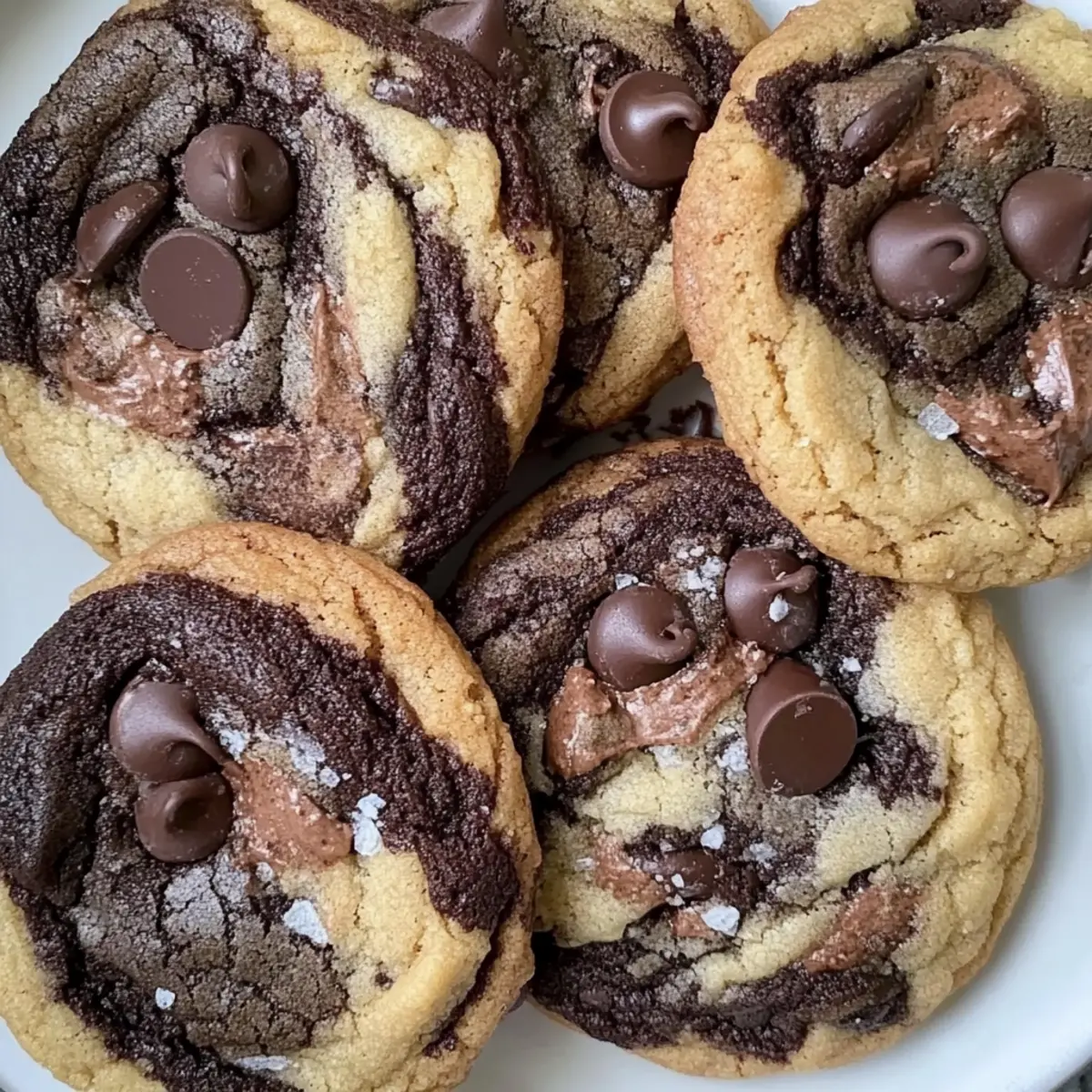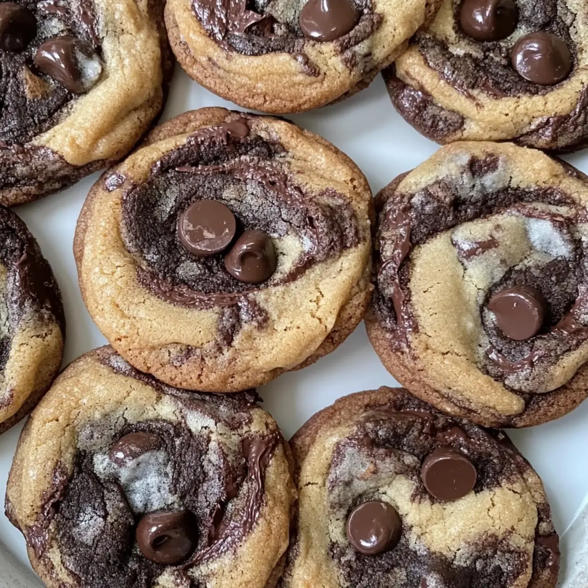 Jump to Recipe Print RecipeIn the heart of my kitchen, a delightful mishap occurred: two of my utmost favorite desserts collided, resulting in the most enchanting creation. Say hello to the Marbled Brownie Chocolate Chip Cookies! This small-batch treat seamlessly marries the rich, fudgy essence of brownies with the soft and chewy appeal of brown butter chocolate chip cookies. The irresistible reward? A baked good that’s quick to whip up and sure to impress anyone lucky enough to enjoy one. With their beautifully marbled appearance and a depth of flavor that’s sure to captivate chocolate lovers, these cookies will have your loved ones coming back for seconds—and thirds! Curious how you can recreate this magical fusion in your own kitchen? Let’s dive into this delicious adventure! Why are these cookies so irresistible? Fudgy Delight: The combination of brownie and chocolate chip cookie dough creates an indulgent bite that’s impossible to resist. Quick and Simple: Perfect for those who crave homemade treats without spending all day in the kitchen. Marbled Magic: The stunning marbled effect makes these cookies a showstopper at any gathering. Plus, you can easily switch up ingredients—try dark chocolate chips, or add nuts for a twist. Perfect Pairing: Serve with ice cream or drizzle of caramel for a dessert that feels gourmet yet homemade. You’ll find yourself turning to these Chocolate Chip Cookies for all occasions! Marbled Brownie Chocolate Chip Cookies Ingredients For the Browned Butter Unsalted Butter – Brown it to enrich flavor and aroma; keep it unsalted for better control over your cookie’s saltiness. For the Brownie Dough Semi-Sweet Chocolate Chips – These add deep chocolate bursts; you can opt for dark chocolate chips for an even richer taste. Dark Brown Sugar – Infuses moisture and a hint of molasses flavor; light brown sugar can be used but will yield a milder taste. Egg – Acts as a binder and creates structure; make sure it’s room temperature for the best results. All-Purpose Flour – Provides the necessary structure; measuring accurately is key to avoid a tough texture. Natural Unsweetened Cocoa Powder – Intensifies the chocolatey flavor; make sure it’s unsweetened for the right balance. Baking Powder – Essential for a good rise; it contributes to that chewy texture you crave. Salt – Balances out the sweetness; don’t skip it—it amplifies all the flavors! For the Chocolate Chip Cookie Dough Granulated Sugar – Sweetens and contributes to texture; feel free to adjust the amount to your taste. Vanilla Extract – Adds depth and warmth; go for pure vanilla extract to elevate the flavor profile! Now that you’ve got the ingredients for these delightful Marbled Brownie Chocolate Chip Cookies, get ready to impress your family and friends with a treat that’s as fun to make as it is to eat! Step‑by‑Step Instructions for Marbled Brownie Chocolate Chip Cookies Step 1: Prepare Brown Butter In a medium saucepan, place unsalted butter and cook over medium heat, stirring frequently. Watch closely as the butter melts and then simmers, turning a rich amber color with tiny brown specks forming at the bottom—this should take about 5-7 minutes. Once browned, remove from heat and allow it to cool slightly. Step 2: Make Brownie Cookie Dough In a heatproof bowl, combine the melted chocolate chips and browned butter, stirring until smooth and glossy. Next, whisk in the cocoa powder until fully combined, then add a room temperature egg and dark brown sugar, mixing until fluffy for about 2-3 minutes. Gently fold in the all-purpose flour, baking powder, and salt until there are no streaks of dry ingredients—then refrigerate the brownie dough for 30 minutes to firm up. Step 3: Make Chocolate Chip Cookie Dough In another bowl, whisk together remaining granulated sugar and the cooled browned butter until well combined. Incorporate a room temperature egg and pure vanilla extract, mixing until smooth. Gradually fold in all-purpose flour, baking powder, baking soda, salt, and chocolate chips, being careful not to overmix; stop when just combined for the best texture. Step 4: Combine Doughs Using a cookie scoop, take portions of both the brownie cookie dough and chocolate chip cookie dough. Gently mix the pieces together, forming marbled dough balls, ensuring each ball has a balance of both flavors. Place these marbled dough balls on a tray and chill in the refrigerator for another 30 minutes—this step helps in achieving thick cookies when baked. Step 5: Preheat Oven & Bake Preheat your oven to 350°F (175°C) while the dough is chilling. Prepare a baking sheet by lining it with parchment paper. Once the oven is ready, arrange the marbled dough balls on the baking sheet, spacing them a couple of inches apart. Bake for 12-14 minutes, until the edges are golden and the centers look slightly set yet soft, indicating the perfect chewy texture. Step 6: Final Touches Immediately after removing the cookies from the oven, use a spatula to gently “scoot” the cookies to shape them into perfect round forms while they are still warm. Allow them to cool on the baking sheet for a few minutes before transferring to a wire rack to cool completely. Revel in the delightful aroma of your Marbled Brownie Chocolate Chip Cookies—it’s time to savor your creation! Expert Tips for Marbled Brownie Chocolate Chip Cookies Chill the Dough: Ensuring your dough is chilled for at least 30 minutes helps prevent the cookies from spreading too much, resulting in thicker Marbled Brownie Chocolate Chip Cookies. Measure Accurately: Using a kitchen scale for your ingredients guarantees precise measurements, which is crucial for the cookies’ texture and flavor. Don’t Overmix: Mix the dough just until combined. Overmixing can lead to tough cookies, while gentle mixing keeps them soft and chewy. Brown Butter Carefully: Watch the butter closely as you brown it; too long can result in burnt 