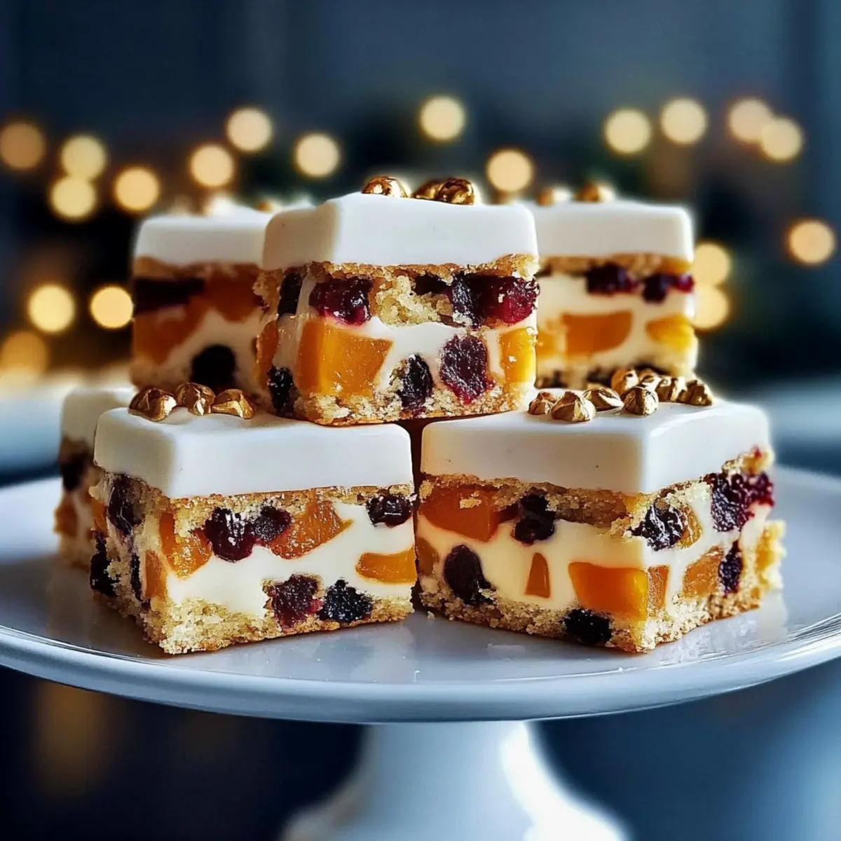 Jump to Recipe Print RecipeAs I stood in my kitchen, the aroma of spices and dried fruits wafting in the air, I knew that the holidays were officially upon us. Mary Berry’s Christmas Cake Bites are my go-to recipe for spreading holiday cheer. These delightful bite-sized treats not only capture the essence of festive flavors but also offer an effortless way to impress guests. With quick preparation and the ability to make them ahead of time, they’re perfect for gatherings, ensuring you can enjoy your celebrations without being stuck in the kitchen. Each bite delivers a chewy texture and a warm sweetness that evokes the cozy moments of tradition. Don’t you find yourself curious about how these little delights can elevate your holiday gathering? Why are Christmas Cake Bites a Must-Have? Easy Preparation: These Mary Berry’s Christmas Cake Bites require minimal effort, making them a delightful addition to your holiday spread without the stress. Festive Flavors: Each bite bursts with the cozy warmth of dried fruits and a hint of brandy, evoking cherished holiday memories. Make Ahead: Prepare these treats in advance—perfect for the busy holiday season! Store them easily, so they are ready to impress your guests at a moment’s notice. Versatile Serving: Whether at tea time, as party canapés, or alongside a festive spread, their charming presentation fits any gathering beautifully. Combine them with a cup of tea or coffee and enjoy this crowd-pleaser that rivals even a classic Christmas cake! For more delightful ideas, don’t miss my recipe for Wrapped Mozzarella Bites. Mary Berry’s Christmas Cake Bites Ingredients For the Cake Bites • Apricots – Provides sweetness and a chewy texture; soak in brandy for enhanced flavor. • Brandy – Adds depth and a festive kick; can substitute with orange juice for a non-alcoholic variant. • Butter – Creates a rich base for moisture; use unsalted for better control over saltiness. • Light Brown Sugar – Contributes sweetness and a slight caramel flavor; can be replaced with granulated sugar if needed. • Eggs – Binds and adds structure; ensure they are at room temperature for better mixing. • Plain Flour – Acts as the main structure; substitute with gluten-free flour for a gluten-free option. • Raisins – Adds natural sweetness and texture; replace with sultanas if desired. • Currants – Provides a tart contrast to the sweetness; can also use dried cranberries. • Cherries – Offers pop and sweetness within the bites; fresh cherries can substitute if in season. For the Glaze and Decorations • Apricot Jam – Used for glazing and enhancing flavor; substitute with warm marmalade if needed. • Golden Marzipan – Adds a traditional layer of flavor; use almond paste if marzipan is unavailable. • Ready-to-roll White Icing – Gives a smooth finish to the cakes; can skip for a more rustic look. Step-by-Step Instructions for Mary Berry’s Christmas Cake Bites Step 1: Preheat and Prepare Start by preheating your oven to 160ºC (or 140ºC for fan ovens). While the oven warms up, grease and line a 30 × 20 cm traybake tin with non-stick paper, ensuring it’s ready for your delicious Mary Berry’s Christmas cake bites. This initial step sets the foundation for that perfect, golden bake. Step 2: Soak the Apricots In a bowl, combine the chopped apricots with enough brandy to cover them and let them soak overnight. This allows the apricots to absorb the rich flavors of the brandy, enhancing the taste of your cake bites. The next day, you’ll have plump, flavorful pieces ready to mix into your batter. Step 3: Mix Ingredients In a large mixing bowl, cream together the softened unsalted butter and light brown sugar until the mixture is light and fluffy, which should take about 4-5 minutes. Then, add the soaked apricots along with any remaining brandy. Mix in the eggs, plain flour, and other dried fruits, ensuring a uniform blend; you’ll notice the delightful colors and textures come together beautifully. Step 4: Bake Pour the cake batter into your prepared tin, spreading it out evenly and leveling the top with a spatula. Place the tin in your preheated oven and bake for 1 to 1¼ hours until the cake is golden and a skewer inserted in the center comes out clean. Watch for a delightful golden-brown hue indicating it’s perfectly baked. Step 5: Cool and Glaze Once baked, remove the cake from the oven and let it cool in the tin for about 15-20 minutes. Then, carefully transfer it to a wire rack to cool completely. After cooling, brush the top with warm apricot jam, which gives a shiny glaze and adds another layer of flavor to your Christmas cake bites. Step 6: Add Marzipan and Icing Roll out the golden marzipan on a surface dusted with icing sugar until it’s large enough to cover the cake. Lay it over the cooled cake, smoothing it out gently. Next, roll out the ready-to-roll white icing and place it over the marzipan for a smooth finish. This creates a festive facade for your delightful treats. Step 7: Slice and Serve Once the icing has set slightly, it’s time to slice your Mary Berry’s Christmas cake bites into small squares. These bite-sized delights are perfect for serving at holiday gatherings or alongside your favorite tea. Arrange them on a decorative platter for an inviting presentation that will surely impress your guests. Make Ahead Options Mary Berry’s Christmas Cake Bites are ideal for busy home cooks looking to streamline their holiday preparations! You can soak the apricots and prepare the batter up to 24 hours in advance; just be sure to refrigerate the mixture to maintain freshness. Once baked and cooled, you can cover and ice the cake bites up to 2 days ahead of serving—just keep them in an airtight container at room temperature, ensuring they remain moist and flavorful. When it’s time to impress your guests, simply slice the cake into squares and arrange them on a festive platter for a delightful pr
