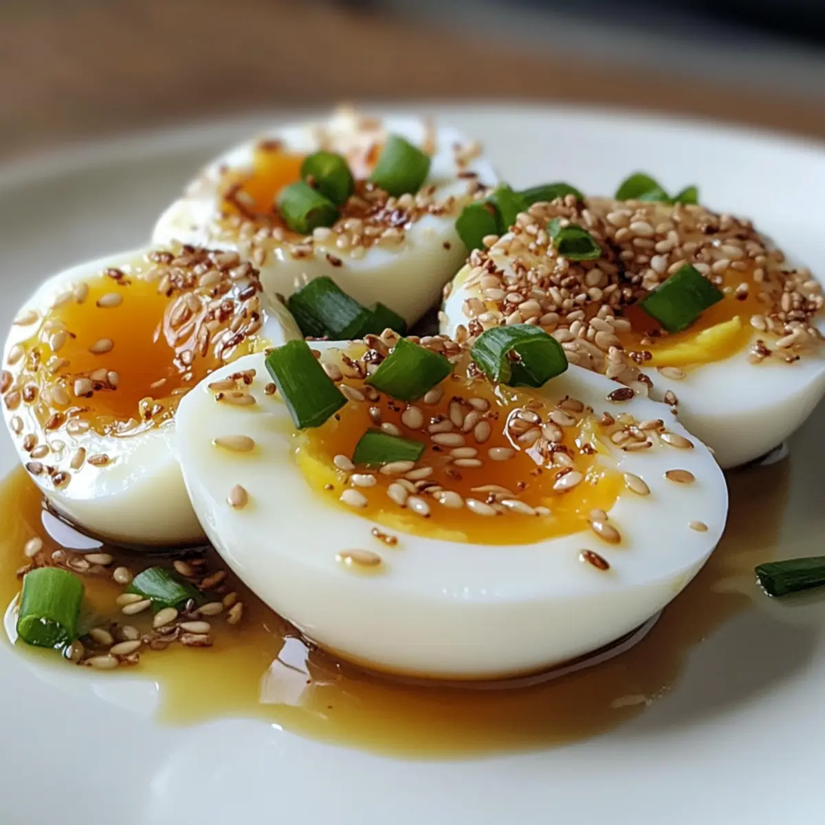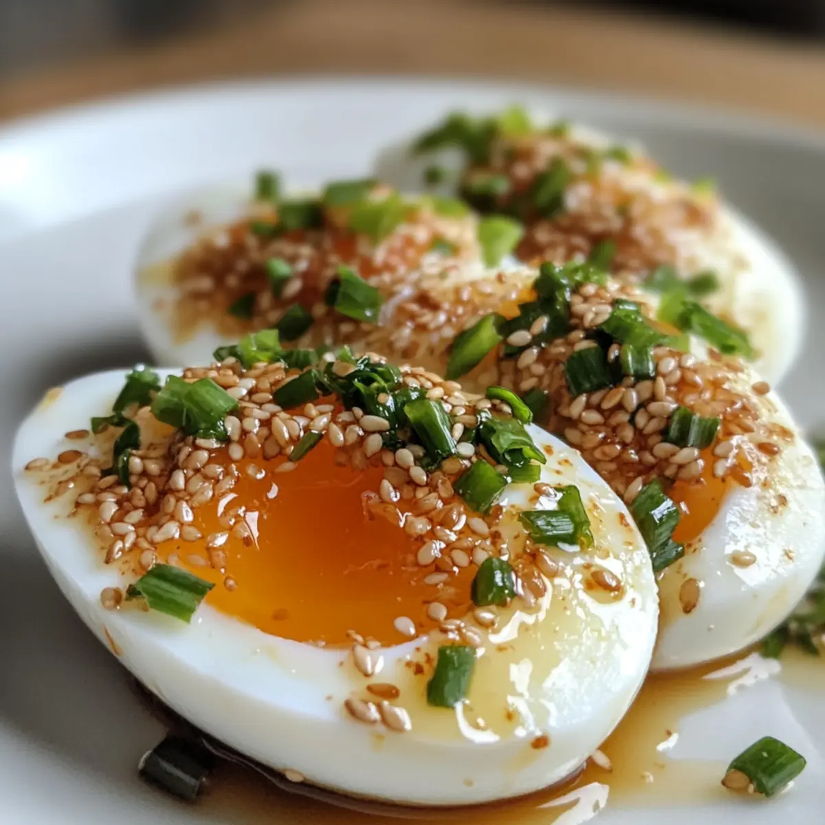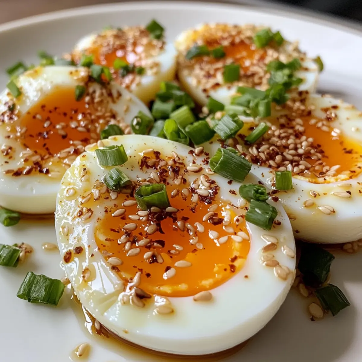 Jump to Recipe Print RecipeAs I was wandering through a bustling local market, the aroma of savory soy sauce mixed with the unmistakable scent of fresh garlic caught my attention. It wasn’t long before I stumbled upon the delightful Mayak Eggs, a staple in Korean cuisine that’s not just a dish but an experience, too. These addictive soy marinated eggs have a soft, jammy yolk that melds perfectly with the sweet and savory marinade, making them an ideal addition to any meal or simply enjoyed as a snack. What I love most is how quick they are to make—perfect for busy evenings or a last-minute banchan (side). Plus, they’re loved by everyone, making them a crowd-pleaser at any gathering. Are you ready to transform your kitchen with this delicious treat? Why are Mayak Eggs so irresistible? Simplicity, cooking Mayak Eggs is incredibly easy, making it perfect for both novice cooks and seasoned chefs. Flavor-packed, the combination of soy sauce, garlic, and honey creates a unique blend of sweet and savory tastes that you simply can’t resist. Quick and Convenient, ready to enjoy in just six hours, they fit perfectly into any busy schedule. Versatile as a Side, these eggs can accompany a variety of dishes or stand alone as a tasty snack. Crowd-pleaser, everyone adores them, ensuring they’ll disappear in no time, whether served at a dinner party or a casual family meal. Experience the joy of homemade Korean banchan with our addictively delicious Mayak Eggs! Mayak Eggs Ingredients • Prepare to be delighted with Mayak Eggs! For the Eggs Large Eggs – These provide the perfect amount of protein and create the wonderfully jammy yolks. Vinegar – Optional during boiling; helps make peeling the shells a breeze. For the Marinade Yellow Onion – Adds a depth of flavor to the marinade that beautifully complements the eggs. Garlic – Fresh garlic brings out the umami and enhances the overall aroma—a must for authentic taste. Green Onion – Gives a touch of freshness and mild sweetness; you can substitute it with chives if needed. Chili Pepper – Adds a pop of heat and color—feel free to adjust to your spice preference! Toasted Sesame Seeds – These provide a nutty flavor; however, you can omit them if desired. Soy Sauce – The key ingredient for that rich umami flavor—opt for low sodium to maintain balance. Honey – This sweet component beautifully balances the saltiness of the soy sauce; sugar or rice syrup works, too. Water – Used to create a well-balanced marinade for soaking. Experience the joy of these Mayak Eggs as they transform simple ingredients into a deliciously addictive treat! Step‑by‑Step Instructions for Mayak Eggs Step 1: Boil Eggs Start by bringing a large pot of water to a brisk boil over high heat. If desired, add 2 tablespoons of vinegar to help with easy peeling later. Lower the heat to a gentle simmer, then carefully add the eggs and boil them for exactly 6 minutes for that perfect soft-boiled texture. Step 2: Ice Bath Once the 6 minutes are up, promptly transfer the eggs into a bowl of ice water. This cold shock halts the cooking process and ensures the eggs cool completely, making peeling easier. Let them sit in the ice bath for about 15 minutes, keeping an eye on the clock for a seamless transition. Step 3: Prepare Marinade While the eggs cool, it’s time to create your flavorful marinade for these addictive Mayak eggs. In a mixing bowl, combine chopped yellow onion, minced garlic, sliced green onion, and your choice of chili pepper for a hint of heat. Add toasted sesame seeds, soy sauce, honey, and water, stirring until well blended. Step 4: Peel Eggs Once the eggs have cooled, gently crack them on a hard surface all around the shell to create small fissures. Start peeling from the wider end, where there’s often an air pocket, which should make the shells come off smoothly. Be patient, as keeping the eggs intact will enhance their marinated beauty. Step 5: Marinate Eggs Place the peeled eggs carefully into an airtight container. Pour the marinade over them, ensuring they are completely submerged for the best flavor infusion. Seal the container tightly and refrigerate for at least 6 hours or, better yet, overnight for the ultimate taste experience with your Mayak Eggs. Step 6: Serving After marinating, you can enjoy your delicious Mayak eggs straight from the fridge or serve them as a delightful accompaniment. They pair perfectly with rice, drizzled with extra marinade, sesame oil, or even a sprinkle of furikake. Watch these crowd-pleasers vanish quickly at any meal! Expert Tips for Mayak Eggs Perfect Peeling: Use an ice bath: Chilling eggs for at least 15 minutes after boiling helps separate the shell from the egg white, making peeling easier. Submersion Secret: Keep eggs submerged: If your eggs float in the marinade, press them down gently with plastic wrap to ensure they soak up all the delicious flavors in the Mayak eggs. Storage Wisdom: Freshness matters: For the best taste, consume Mayak eggs within 3-4 days. Store them in an airtight container to maintain their flavor and texture. Customize Heat: Adjust spice levels: Feel free to modify the chili pepper amount based on your heat preference; removing the seeds will produce a milder marinade. Experiment with Marinades: Get creative: Don’t hesitate to try adding mirin or different sweeteners in your marinade for unique flavor variations of these addictive Mayak eggs. What to Serve with Addictive Korean Mayak Eggs Experience the delightful harmony of flavors by crafting a full meal around these tender, soy-marinated bites. Steamed Jasmine Rice: This fluffy side balances the soy richness with its subtle sweetness, making it a classic pairing. Kimchi: Crunchy and tangy, this fermented dish adds a burst of flavor that complements the soft texture of the eggs beautifully. Stir-Fried Vegetables: Colorful, crispy veggies sautéed in garlic make a great way to add freshness and a crunch to your meal
