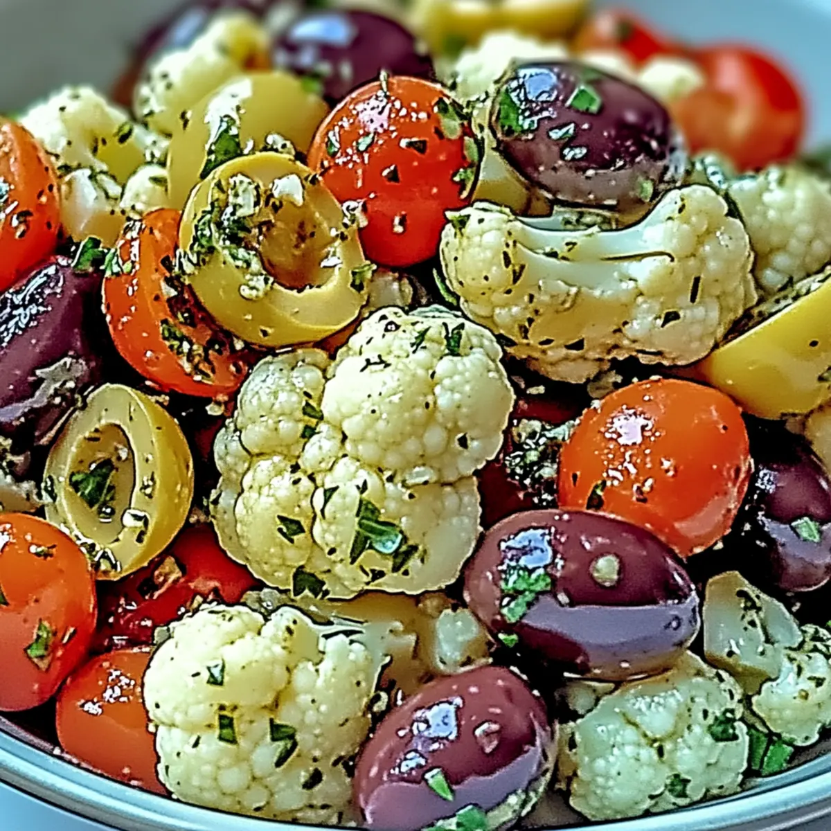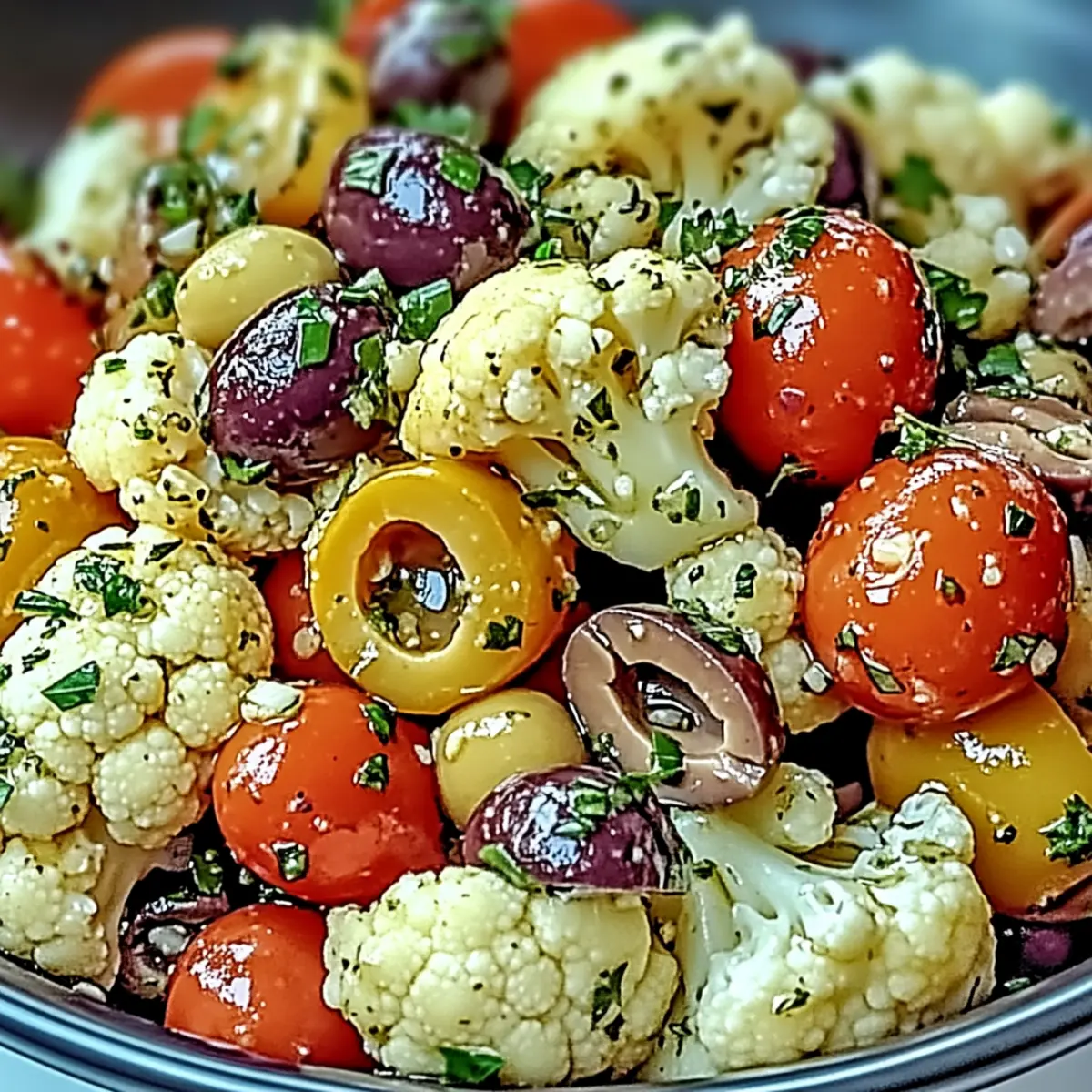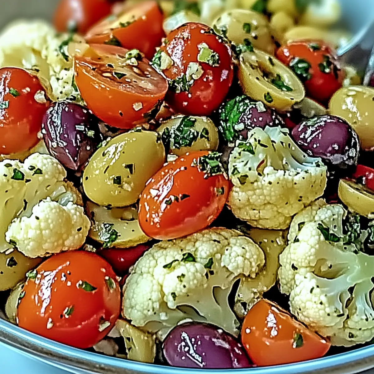 Jump to Recipe Print RecipeAs I stood in my kitchen, the sun streaming through the window, I couldn’t help but marvel at the colors of my fresh veggies. The day called for a Mediterranean Marinated Cauliflower Salad, a delightful dish that sings with vibrancy and flavor! With its crunchy cauliflower, sweet cherry tomatoes, and salty olives drizzled in a zesty herb vinaigrette, this salad was everything I needed: quick to prepare and utterly satisfying. Not only is it gluten-free and low-carb, making it perfect for those keeping an eye on their diets, but it also shines as a meal prep-friendly option for busy weeks ahead. Who says healthy can’t be delicious? Join me as we dive into this refreshing recipe—your taste buds will thank you! What’s your favorite way to enjoy cauliflower? Why is this salad a must-try? Vibrant Flavors: This Mediterranean Marinated Cauliflower Salad bursts with fresh, zesty notes that bring life to your lunch or dinner table. Quick Preparation: Ready in no time, it’s perfect for busy weeknights or spontaneous gatherings. Versatility: Easily customize it by swapping in your favorite vegetables or adding delicious extras like feta cheese! Healthy & Satisfying: With its gluten-free, low-carb profile, it’s a guilt-free indulgence that keeps you nourished without compromising on taste. Meal Prep Essential: Making it a few hours ahead only enhances its flavors, making it a fantastic option for meal prep enthusiasts. Add a side of Cucumber Shrimp Salad to elevate your meal choice even further! Mediterranean Marinated Cauliflower Salad Ingredients • Time to gather your fresh ingredients! For the Salad Cauliflower – the star ingredient, pick florets that are firm and fresh for the best crunch. Cherry Tomatoes – these sweet gems burst with flavor and can be swapped for heirloom tomatoes for a delightful twist. Red Onion – adds a sharp bite and color contrast; feel free to use diced red bell peppers for sweetness instead. Black Olives & Green Olives – these briny bites enhance the salad’s taste; substitute with capers or crispy roasted chickpeas if preferred. Parsley – a fresh herb that brightens every bite; you might also try fresh dill or mint for an interesting flavor profile. For the Dressing Olive Oil/Avocado Oil – a flavorful base for the dressing that adds healthy fats. Red Wine Vinegar/Apple Cider Vinegar – provides acidity to balance the sweetness of the salad beautifully. Dijon Mustard – perfect for adding depth to your vinaigrette; yellow mustard works in a pinch! Minced Garlic – infuses a lovely complexity; always opt for fresh garlic for the best flavor. Dried Oregano & Dried Basil – key herbs to brighten your dressing; using fresh versions will intensify the flavors even more. Salt & Black Pepper – essential for seasoning to taste, helping to create balanced flavors. Red Pepper Flakes – an optional spicy kick; adjust according to your heat preference. This delectable Mediterranean Marinated Cauliflower Salad not only tastes amazing but will also have you feeling revitalized—perfect for your next meal! Step‑by‑Step Instructions for Mediterranean Marinated Cauliflower Salad Step 1: Blanch Cauliflower Begin by bringing a large pot of salted water to a vigorous boil. Carefully add the cauliflower florets and blanch them for 1-2 minutes, just until they are slightly softened yet still crisp. Once done, swiftly transfer them to an ice bath to halt the cooking process and preserve their vibrant color and crunch. Step 2: Drain and Dry After the cauliflower has cooled in the ice bath for a few minutes, drain it thoroughly in a colander. To avoid excess moisture, gently pat the florets dry with a kitchen towel or paper towels, ensuring they’re nice and crisp for your Mediterranean Marinated Cauliflower Salad. Step 3: Combine Veggies In a large mixing bowl, combine the blanched cauliflower florets, halved cherry tomatoes, sliced red onion, and your choice of black and green olives. Add in the freshly chopped parsley for a pop of flavor and color. Gently mix the vegetables together, ensuring an even distribution of colors and textures. Step 4: Whisk Dressing In a separate medium bowl, embrace the zesty flavors by whisking together the olive oil and vinegar until emulsified. Add the Dijon mustard, minced garlic, dried oregano, dried basil, salt, and pepper; whisk vigorously until the dressing is well combined and creamy. This dressing will elevate your Mediterranean Marinated Cauliflower Salad beautifully. Step 5: Dress Salad With the dressing ready, drizzle it over your colorful vegetable mixture in the large bowl. Using a spatula or wooden spoon, gently toss the salad to coat all the ingredients evenly with the flavorful vinaigrette. This step ensures every bite is bursting with that delicious Mediterranean flavor. Step 6: Marinate Cover the salad with plastic wrap or transfer it to an airtight container. Place it in the refrigerator for a minimum of 30 minutes and up to 4 hours. This marination allows the flavors to meld beautifully, enhancing the experience of the Mediterranean Marinated Cauliflower Salad. Step 7: Final Toss Before serving, remove the salad from the fridge and give it a gentle toss to redistribute the flavors. Taste and adjust the seasoning with additional salt, pepper, or red pepper flakes if desired. This final touch will ensure that every bite is perfectly seasoned and flavorful while showcasing the vibrant colors of the salad. Storage Tips for Mediterranean Marinated Cauliflower Salad Fridge: Store in an airtight container for up to 3 days to maintain freshness. The flavors will deepen as it sits, enhancing the salad experience. Freezer: For best quality, avoid freezing the salad as the texture may suffer from freezing and thawing. Reheating: To enjoy, simply take it out of the fridge and let it come to room temperature. There’s no need to heat it, as it’s best served chilled or at room temperature