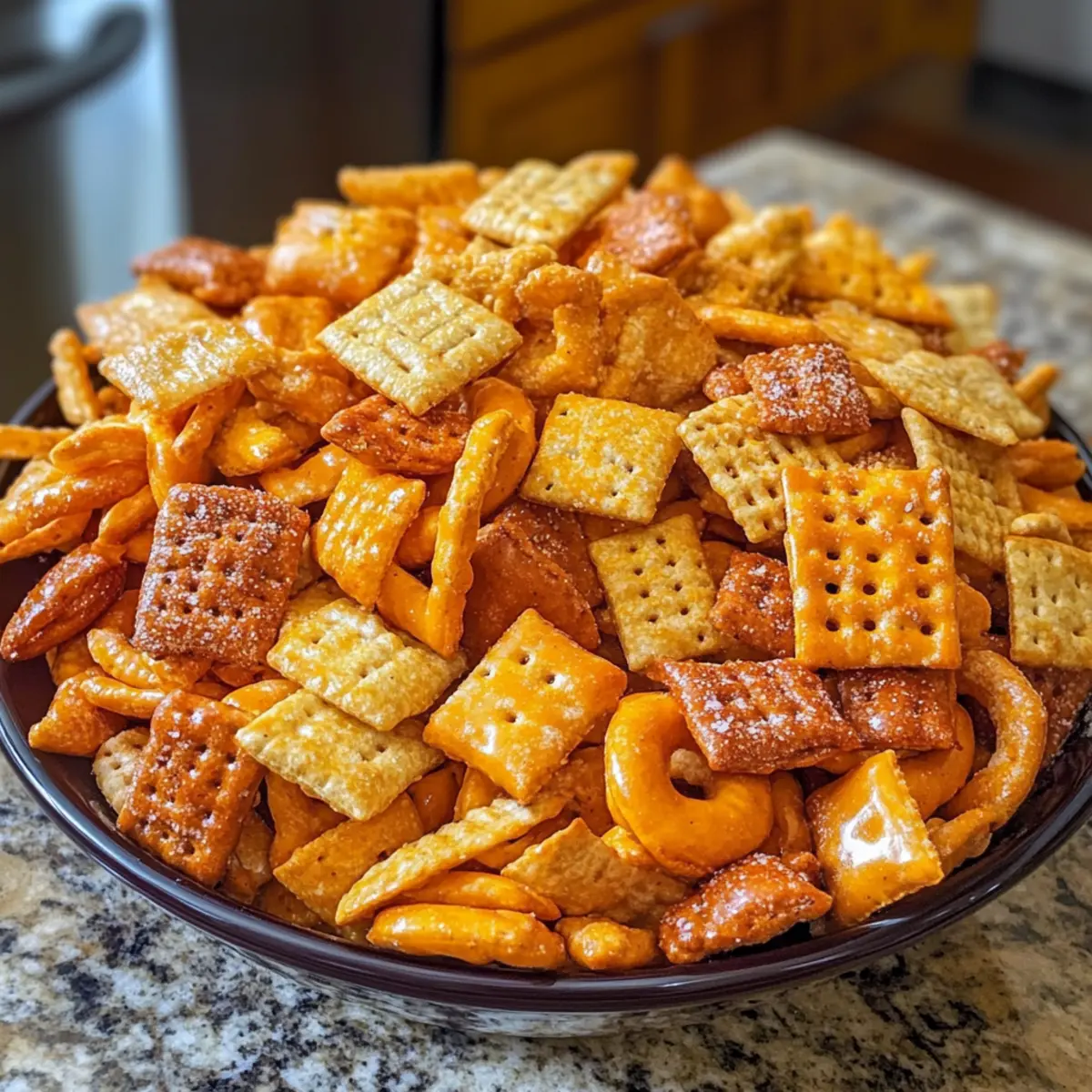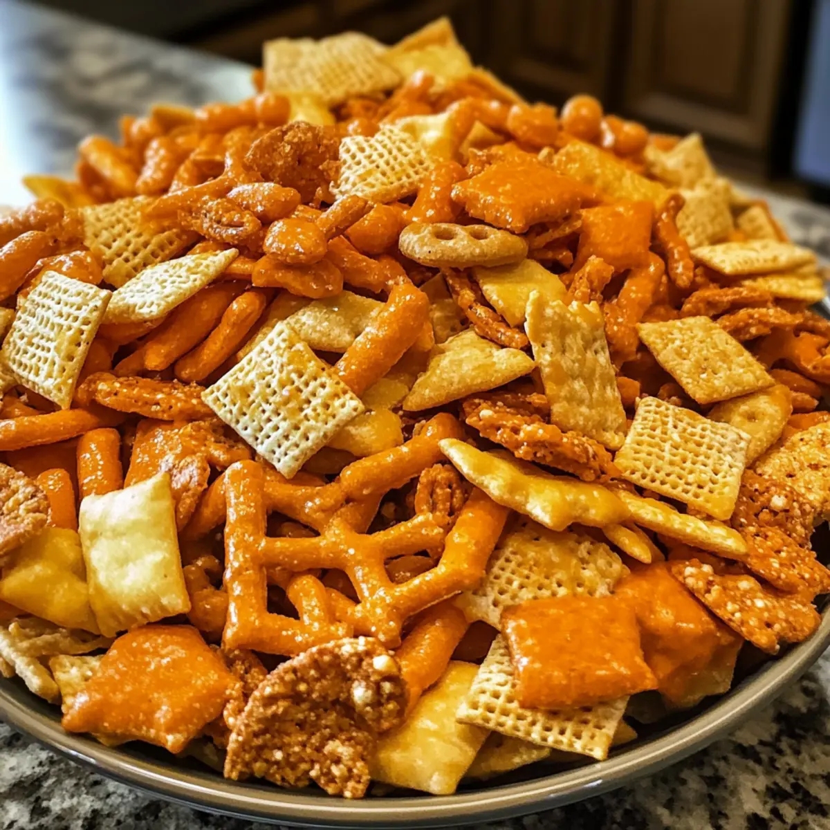 Jump to Recipe Print RecipeThe air is thick with excitement as I watch the big game unfold, my friends laughing and cheering around me. It’s the perfect moment for a snacking delight, and that’s when I unveil my secret weapon: the Million Dollar Snack Mix. This irresistible blend of cheesy, crunchy snacks is not only a crowd-pleaser but also incredibly simple to whip up, making it ideal for any occasion—be it a game day gathering or a cozy movie night. With every handful, you get a satisfying crunch paired with savory flavors, and the best part? It’s easily customizable to suit any spice level. Are you ready to discover how to create this scrumptious snack mix that will have everyone reaching for more? Let’s dive in! Why is this snack mix irresistible? Simplicity at Its Best: Crafting this Million Dollar Snack Mix is as easy as combining your favorite snacks; no elaborate cooking skills required! Flavor Explosion: Each bite bursts with a delightful mix of cheesy, savory, and slightly spicy flavors, making it a hit for any gathering. Crowd-Pleasing Appeal: Friends and family will rave about this snack, perfect for parties, movie nights, or casual snacking at home. Endless Customization: Feel free to switch up the ingredients—if you love sweet snacks, throw in some chocolate candies or nuts for a tasty twist! Time-Saving Delight: Ready in just 15 minutes, you can whip up a batch in no time, leaving you more time to enjoy your event. Consider pairing this delicious snack with other crowd favorites like Homemade Cheez Its or serve it alongside Baked Asparagus Fries for a balanced spread everyone will love! Million Dollar Snack Mix Ingredients Get ready to unleash your taste buds with this delightful snack mix! For the Base Cheez-Its – Provides cheesy flavor and crunch; substitute with any preferred cheese crackers. Cheddar cheese flavored Chex Mix – Adds savory flavor and variety in texture; regular Chex Mix can work if cheddar isn’t available. Nacho cheese flavored Bugles – Introduces a unique shape and added crunch; feel free to use tortilla chips for a different flavor profile. Cheddar cheese Goldfish crackers – A fun addition for extra cheese flavor; any small cheese cracker can also be used. Mini saltine crackers – Provides a light, flaky texture; swap with graham crackers for a surprising sweet twist. Pretzel twists – Adds that beloved salty crunch; these can be replaced with thin pretzel sticks, too. For the Coating Freshly grated Parmesan cheese – Enhances cheesiness and adds depth to the mix; Pecorino Romano makes a great substitute if desired. Canola oil – Binds ingredients together and ensures they crisp up in the oven; olive oil can be used for a flavor boost. Crushed red pepper – Gives the snack mix a spicy kick; adjust this based on your heat preference for the ultimate Million Dollar Snack Mix! Garlic powder – Adds savory depth to the flavor profile; fresh minced garlic can replace it for a zingier taste. Kosher salt – Balances sweetness and enhances the overall flavor; reduce this if you’re using salted snacks. Black pepper – Provides subtle warmth and complexity; simply skip if you’re avoiding spice. Embrace the delightful flavors and textures as you prepare this irresistible Million Dollar Snack Mix that is destined to become the star of your next gathering! Step‑by‑Step Instructions for Million Dollar Snack Mix Step 1: Preheat the Oven Begin by preheating your oven to 250°F (120°C). While the oven warms up, grab a rimmed baking sheet and line it with parchment paper. This will help prevent sticking and make for easy cleanup later. A properly preheated oven is essential to get that perfect golden crunch in your Million Dollar Snack Mix! Step 2: Combine the Snacks In a large mixing bowl, combine all your crunchy ingredients: Cheez-Its, Cheddar cheese flavored Chex Mix, Nacho cheese flavored Bugles, cheddar cheese Goldfish crackers, mini saltine crackers, and pretzels. Use a spatula or your hands to gently toss them together until they are evenly distributed. The variety of textures will create a uniquely satisfying experience in your Million Dollar Snack Mix. Step 3: Add the Parmesan Cheese Next, sprinkle freshly grated Parmesan cheese generously over your mixed snacks. Don’t be shy! This cheesy layer is what makes your Million Dollar Snack Mix truly irresistible. Make sure every bit of snack has a chance to capture that cheesy goodness for an enhanced flavor profile. Step 4: Drizzle with Oil and Season Now, drizzle canola oil over the mixture, ensuring it’s evenly coated. Sprinkle crushed red pepper, garlic powder, kosher salt, and black pepper to taste. With your hands or a spatula, gently toss everything together until every piece is well coated with oil and seasonings. This will be the secret to a flavorful and crispy Million Dollar Snack Mix. Step 5: Spread and Bake Spread the snack mix evenly on the prepared baking sheet, ensuring there’s space between the pieces for even cooking. Optionally, sprinkle additional Parmesan cheese on top for an extra cheesy finish. Place the baking sheet in the preheated oven and bake for about 15 minutes, stirring the snack mix halfway through to promote even browning. Step 6: Cool and Store Once baked, keep an eye on your mix; it should be lightly toasted and fragrant. Remove it from the oven and allow it to cool completely on the baking sheet. Once cooled, transfer your Million Dollar Snack Mix to an airtight container. It can be stored for up to a week, ready to be enjoyed anytime! Make Ahead Options These Million Dollar Snack Mix variations are perfect for busy home cooks looking for time-saving meal prep solutions! You can combine all the dry ingredients—Cheez-Its, Chex Mix, Bugles, Goldfish, saltines, and pretzels—up to 24 hours in advance and store them in an airtight container. To maintain their crunchy texture, avoid adding the Parmesan cheese and seasonings until you’r
