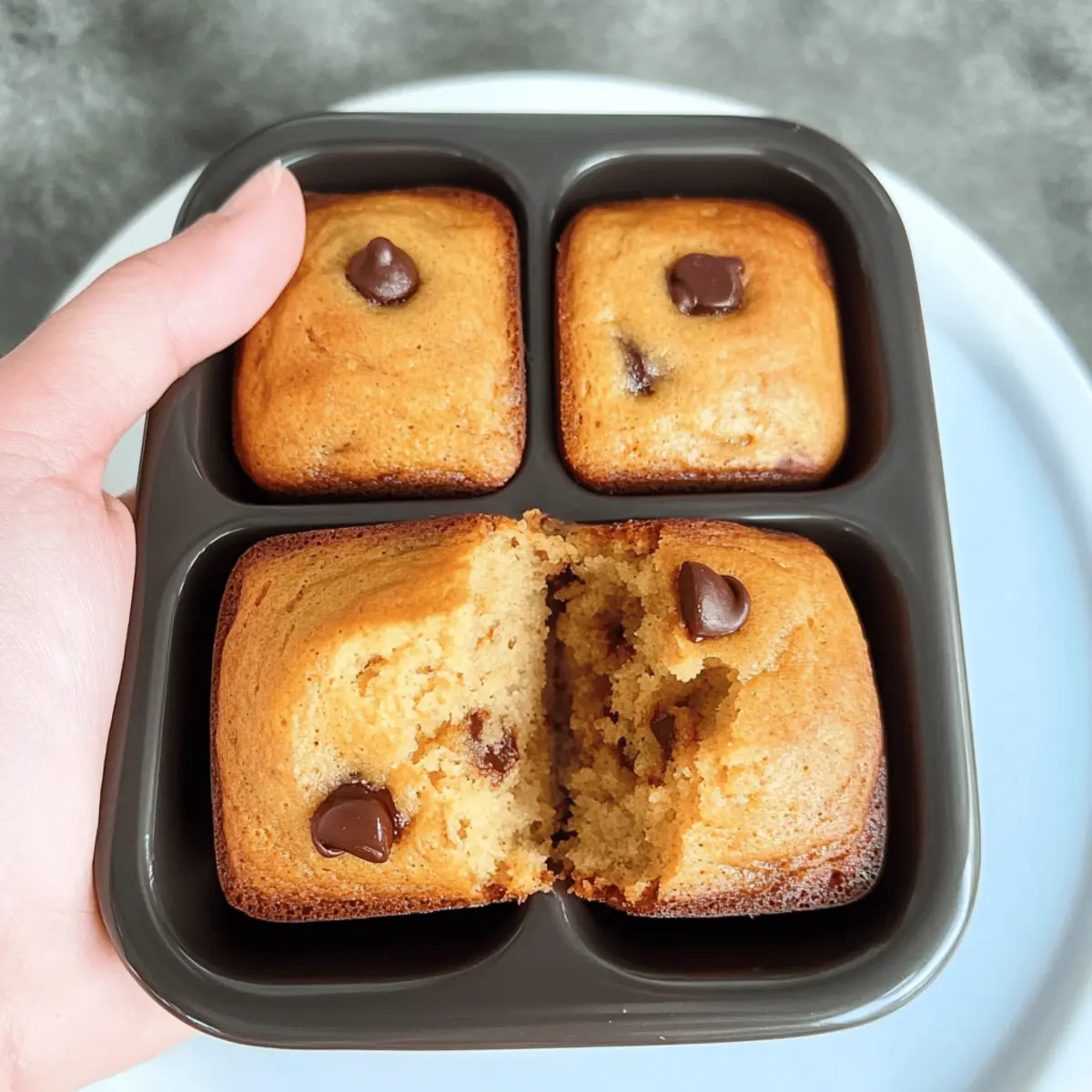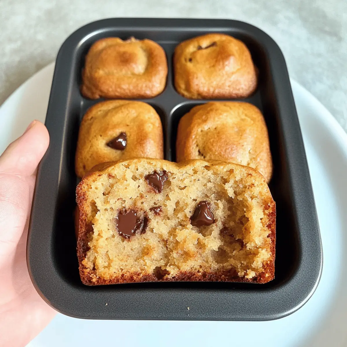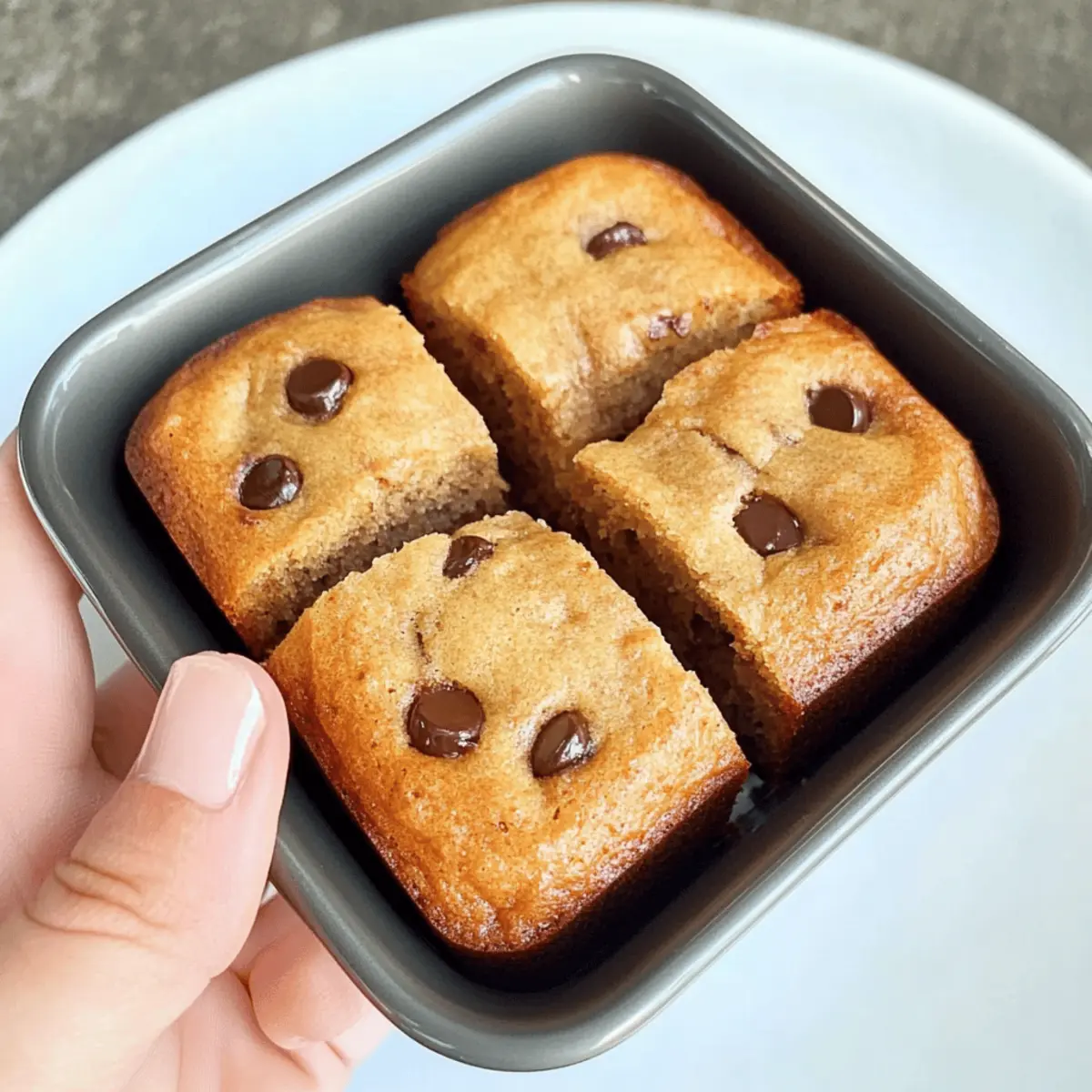 Jump to Recipe Print RecipeAs I rummaged through my pantry last week, I stumbled upon a bunch of overripe bananas, their sweet aroma filling the air. This unexpected find reminded me of the magic that is Mini Chocolate Chip Banana Bread—a delightful twist on the comforting classic that transforms ordinary ingredients into pure joy. With just five minutes of prep time, this nut-free, kid-friendly snack is not only a lifesaver for busy lunchboxes but also a healthier option that’s perfect for satisfying sweet cravings. Imagine sending your little ones off to school with a treat that is both nourishing and undeniably delicious. What could be better than knowing they’re enjoying something made with love? Ready to whip up some miniature magic? Let’s dive into the recipe! Why Choose Mini Chocolate Chip Banana Bread? Irresistible Flavor: Each mini loaf bursts with sweet banana goodness complemented by melty chocolate chips, creating a delightful treat for everyone. Quick Prep: With only five minutes of prep time, you’ll have these delicious snacks ready in a flash. Nut-Free Option: Perfect for school lunches, these mini breads are safe for kids with nut allergies, guaranteeing all friends can enjoy. Versatility: Enjoy them as a breakfast item or an afternoon snack, and feel free to add variations like dried fruit if you want more healthy options! Crowd-Pleasing Snack: Kids and adults alike will be reaching for seconds, making this recipe a surefire hit at any gathering. Looking for more delicious snack ideas? Try these Mini Chocolate Chip or Chocolate Croissant Bake! Mini Chocolate Chip Banana Bread Ingredients For the Batter • Mashed Banana – Provides natural sweetness and moisture; use very ripe bananas for the best flavor. • Egg – Binds ingredients together for structure; substitute with a flax egg for a vegan option. • Butter (50g) – Adds richness and flavor; replace with coconut oil for a dairy-free alternative. • Honey – Sweetens naturally; maple syrup serves as a great vegan substitute. • Milk (150ml) – Adds moisture to the batter; almond milk is a suitable dairy-free option. • Self-Raising Flour – Gives the mini loaves their rise; all-purpose flour with baking powder can be used if needed. • Chocolate Chips – Introduces sweetness and flavor; omit if chocolate is not allowed in school lunches. Let’s get ready to bake some delicious Mini Chocolate Chip Banana Bread that will bring joy to every snack time! Step‑by‑Step Instructions for Mini Chocolate Chip Banana Bread Step 1: Preheat and Prepare Start by preheating your oven to 180°C (350°F) to ensure the perfect bake. While the oven heats, take a greased individual brownie tin or a muffin tin and set it aside. This is where your Mini Chocolate Chip Banana Bread will transform into delightful bites, so make sure each cavity is well-greased for easy removal later. Step 2: Mix Wet Ingredients In a large mixing bowl, mash ripe bananas until smooth, then add the egg, melted butter, honey, and milk. Mix these ingredients together until you achieve a creamy consistency. This harmonious blend of flavors is essential for your Mini Chocolate Chip Banana Bread, creating a moist and delectable batter that will delight anyone who takes a bite. Step 3: Incorporate Dry Ingredients Now, gently fold in the self-raising flour and chocolate chips to the banana mixture. Stir until just combined—be careful not to overmix, as this will keep your mini loaves light and fluffy. The fragrant chocolate chips will melt slightly during baking, adding pockets of sweet goodness to each adorable bite of banana bread. Step 4: Fill the Tin Using a spoon or a small ice cream scoop, evenly distribute the batter into the prepared tin’s cavities. Fill each cavity about three-quarters full to allow room for rising. As you do this, you can admire the beautiful flecks of chocolate nestled within the banana batter, getting excited about the warm aroma soon to fill your kitchen. Step 5: Bake to Perfection Carefully place the filled tin in the preheated oven and bake for 18 minutes. Keep an eye on them as they bake; you’ll know they’re ready when a toothpick inserted into the center comes out clean, leaving you with perfectly fluffy Mini Chocolate Chip Banana Bread that’s lightly golden on top, exuding a deliciously sweet aroma. Step 6: Cool and Serve Once baked, take the tin out of the oven and let the mini breads cool in the tin for about 5 minutes. This will help them firm up slightly, making them easier to remove. Afterward, gently transfer the mini loaves to a wire rack to cool completely. Your tempting Mini Chocolate Chip Banana Bread will soon be ready to enjoy or pack in lunchboxes! How to Store and Freeze Mini Chocolate Chip Banana Bread Room Temperature: Store mini banana breads in an airtight container at room temperature for up to 3 days to maintain their soft texture and delightful flavor. Fridge: If you want them to last a bit longer, keep them in the fridge for up to a week, but be aware that this may affect their moisture level. Freezer: For longer storage, place the mini breads in a freezer-safe bag or container. They can be frozen for up to 3 months; just make sure to label them! Reheating: When ready to enjoy, let frozen mini chocolate chip banana breads thaw at room temperature for about 2 hours or warm them slightly in the microwave for a quick snack. What to Serve with Mini Chocolate Chip Banana Bread? Transport yourself to a cozy kitchen filled with the sweet aroma of banana bread, as you explore delightful pairings to complete your snack experience. Fresh Fruit: Sliced strawberries or banana slices add refreshing brightness, enhancing the sweetness of the bread while providing a healthy touch. Yogurt Dip: A creamy yogurt dip flavored with honey can elevate the flavors. It’s a lightweight option that delivers added creaminess. Nut Butters: Spread some almond or peanut butter for a protein boost. This s
