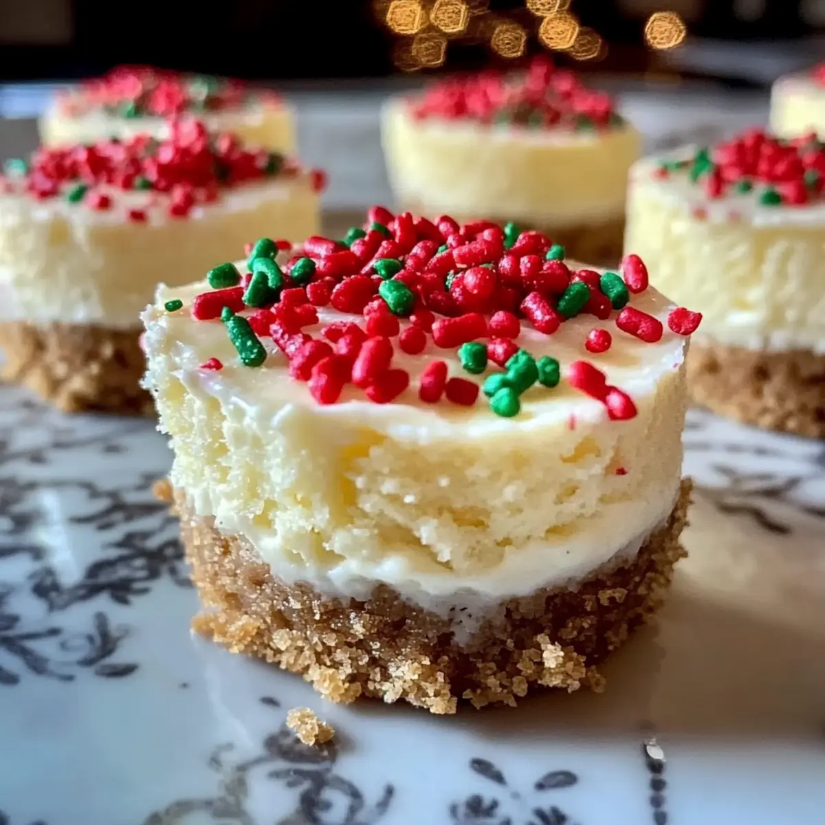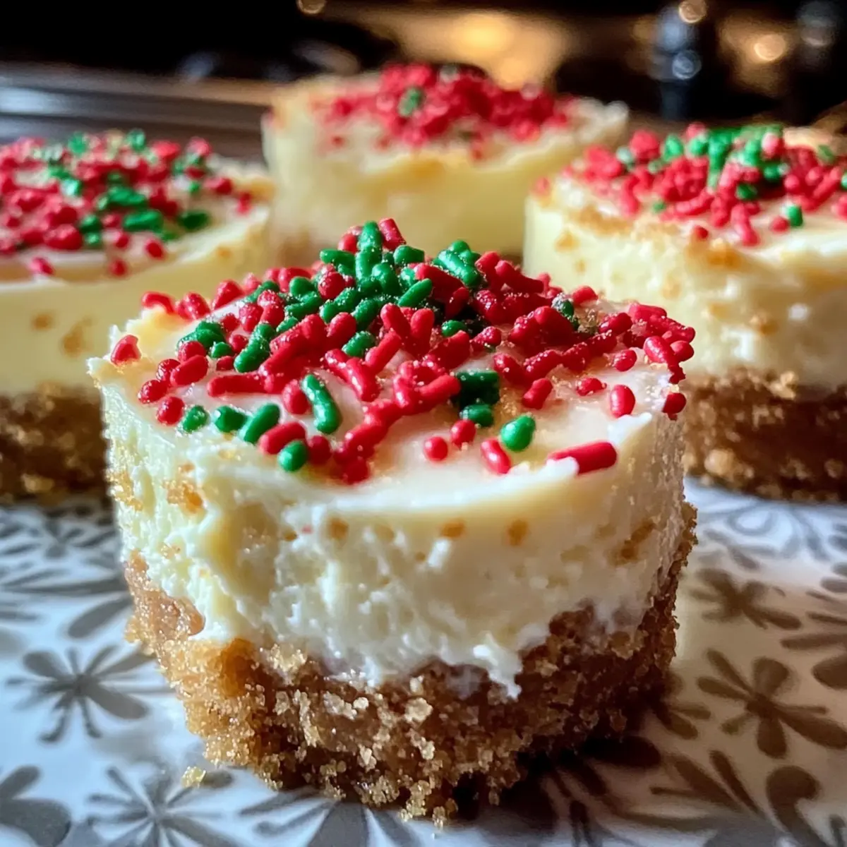Mini Christmas Cheesecakes are delightful bites of creamy cheesecake in a buttery crust, perfect for holiday gatherings.