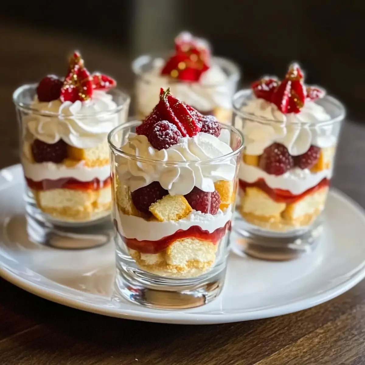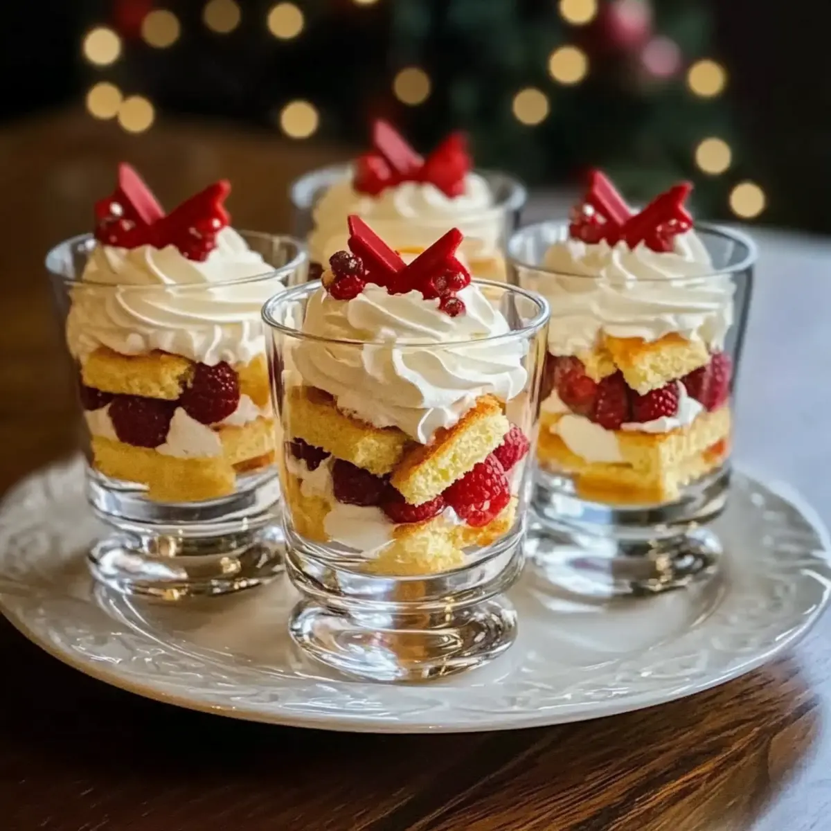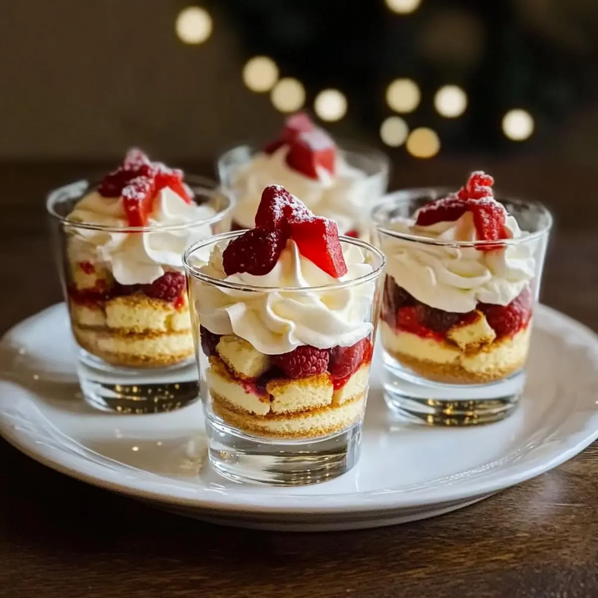 Jump to Recipe Print RecipeAs I unwrapped the festive lights each December, the air filled with the sweet scent of holiday treats, I couldn’t help but feel a spark of nostalgia. This year, I’m excited to share my Mini Christmas Trifles, a delightful layered dessert that brings joy and charm to any holiday gathering. These little cups are not only incredibly easy to assemble, but they also create a show-stopping presentation that’s sure to impress your guests. Picture layers of fluffy whipped cream, soft cake, and a burst of vibrant berries—an irresistible combination that captures the essence of a cozy Christmas celebration. Perfect for those of us who are tired of the same old desserts, these trifles are a fresh twist that delight taste buds and warm hearts. Ready to create a festive masterpiece that will leave everyone asking for more? Let’s get started! Why Are Mini Christmas Trifles a Must-Try? Irresistible flavors: Each bite combines creamy whipped cream, soft cake, and fresh berries for a delicious holiday treat. Stunning presentation: Served in individual cups, these trifles look festive and appealing, making them perfect for parties. Easy to prepare: With straightforward layering and minimal hassle, you can whip these up in no time! Versatile options: Swap in your favorite cake or fruits to personalize your trifles, keeping it fresh each time. Crowd-pleaser: Whether at family gatherings or friendly get-togethers, these trifles will become the star of the dessert table, keeping everyone coming back for more! Mini Christmas Trifle Ingredients • The perfect components for a festive delight! For the Cake Vanilla or Pound Cake – Provides structure and sweetness; use store-bought for convenience or bake your own for a personal touch. For the Custard Layer Vanilla Custard or Pudding – Adds creaminess and a rich flavor; feel free to substitute with any preferred pudding flavor. For the Creamy Layer Whipped Cream – Introduces lightness and a creamy texture; homemade version achieves the best flavor, though ready-made is a great shortcut. For the Fruity Layer Mixed Berries (Strawberries, Raspberries, Blueberries) – Offers freshness and tartness that beautifully balance the sweetness; use fresh or frozen depending on the season. Optional Add-ins Cranberry Sauce – Adds a festive touch and tartness; leave out if you prefer a sweeter flavor profile. Chopped Pistachios – Provides a lovely crunch and a pop of color for garnish; can substitute with your favorite nuts or omit for a nut-free version. Red and Green Sprinkles – Enhance the festive appeal; they’re optional but definitely add a cheerful touch. Fresh Mint Leaves – A refreshing garnish that adds a lovely aroma (optional but delightful!). These ingredient selections form the foundation for your show-stopping Mini Christmas Trifles, making them a perfect choice for your holiday dessert table! Step‑by‑Step Instructions for Mini Christmas Trifles Step 1: Prepare the Cake Begin by cutting your vanilla or pound cake into 1-inch cubes and set them aside in a bowl. Make sure the pieces are uniform to create beautiful layers in your Mini Christmas Trifles. If you’re using store-bought cake, it should be at room temperature for easy handling. Step 2: Layer the Cake and Custard In your mini trifle glasses or small cups, start building your layers with a heaping tablespoon of cake cubes at the bottom. Follow this with a generous dollop of vanilla custard or pudding, smoothing it out for an even layer. This creates a delightful base for your festive dessert! Step 3: Add the Berries Next, add a layer of mixed berries, such as strawberries, raspberries, and blueberries, on top of the custard. If you want a little extra zing, add a spoonful of cranberry sauce to contrast the sweetness. The vibrant colors will make your Mini Christmas Trifles visually appealing. Step 4: Top with Whipped Cream Now, it’s time for the whipped cream! Spoon on a thick layer of whipped cream, ensuring it covers the berries completely. This will add a light, airy texture and a creamy sweetness that complements the other flavors beautifully in your trifle. Step 5: Repeat the Layers Continue layering the trifles by repeating the previous steps: add more cake cubes, custard, berries, and whipped cream. Aim to repeat these layers until your cups reach the top, finishing with a luscious layer of whipped cream for a stunning finish. Step 6: Decorate the Trifles Add your festive touch by topping the whipped cream with a sprinkle of chopped pistachios and colorful red and green sprinkles. For an optional garnish, place fresh mint leaves on top for a delightful pop of color and aroma, making your Mini Christmas Trifles truly stand out. Step 7: Chill Before Serving Finally, refrigerate your assembled Mini Christmas Trifles for at least 30 minutes before serving. This chilling time allows the flavors to meld together and the layers to set slightly, ensuring a refreshing and enjoyable dessert experience when served. Expert Tips for Mini Christmas Trifles Uniform Cake Cuts: Ensure your cake cubes are cut evenly for consistent layers, enhancing the visual appeal of your Mini Christmas Trifles. Chill Time Matters: Don’t skip chilling! Allow at least 30 minutes in the fridge to meld flavors and improve texture—important for a refreshing dessert. Layer Visibility: Use clear cups to highlight each beautiful layer of your trifle, making it a fiesta of colors that attracts attention and appetite. Flavor Variations: Experiment with flavored pudding or whipped cream for different taste profiles, allowing you to personalize the Mini Christmas Trifles with your favorites. Berry Freshness: Go for fresh berries whenever possible; they provide the best flavor and texture, but frozen berries can work in a pinch if fresh are unavailable. Make Ahead Options These Mini Christmas Trifles are perfect for meal prep, allowing you to enjoy more time with loved ones during