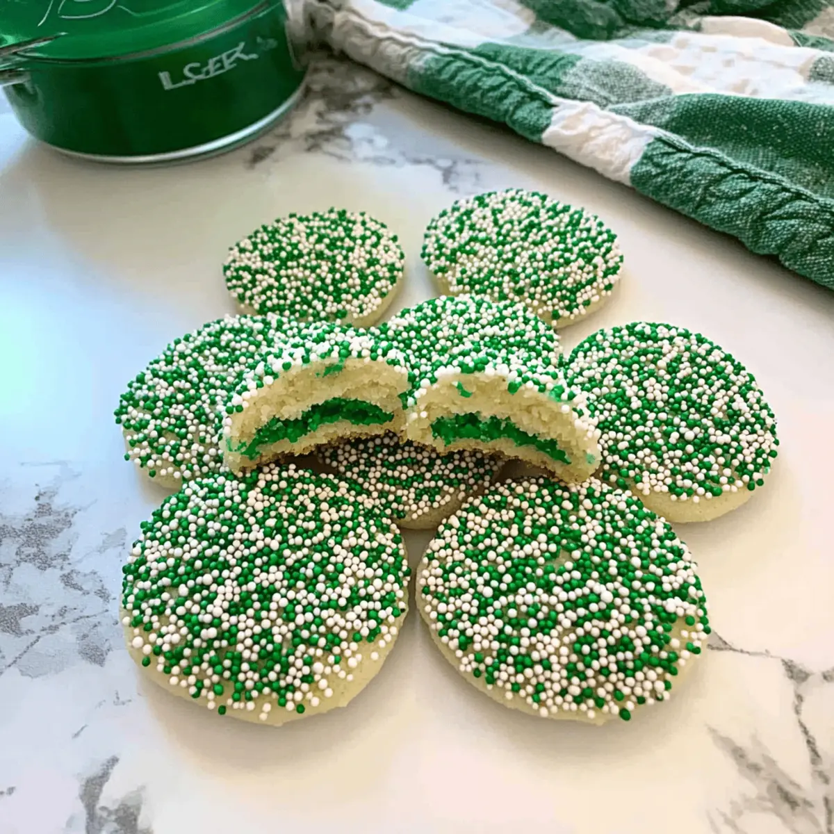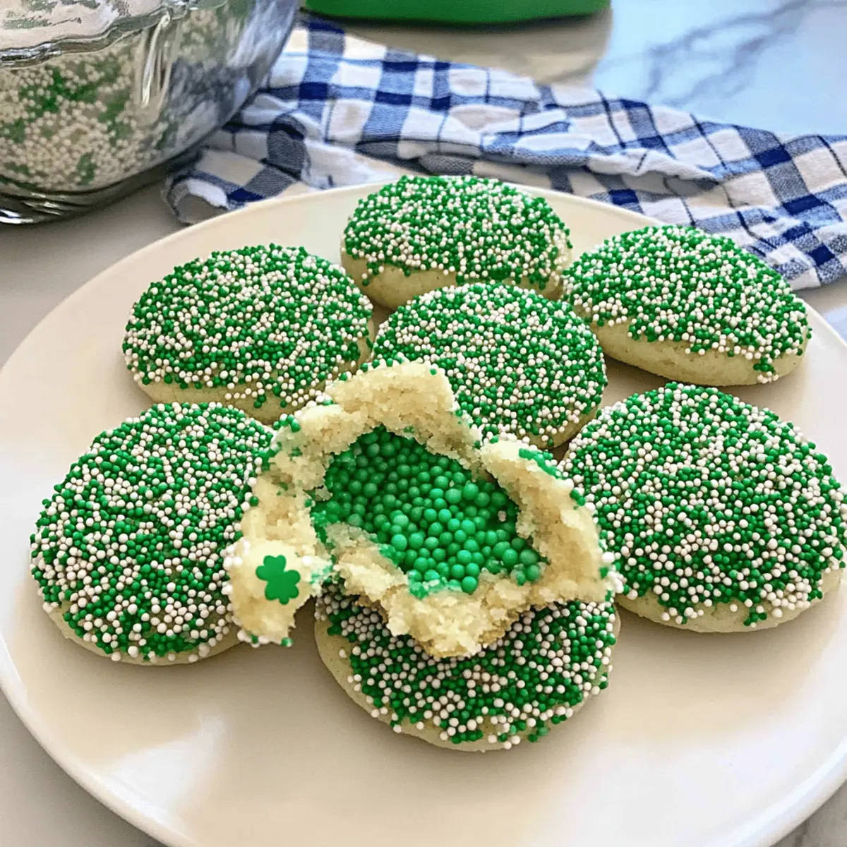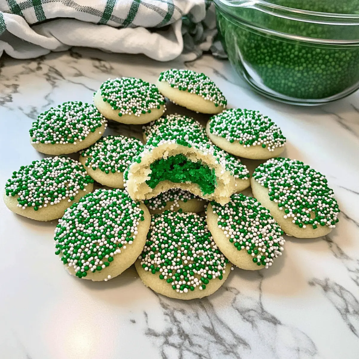 Jump to Recipe Print RecipeAs I was arranging a table full of festive treats for St. Patrick’s Day, the glimmer of green nonpareil sprinkles caught my eye. These Mint Surprise Inside Cookies instantly became the star of the show. With a delightful minty center hidden beneath a soft cookie exterior, they’re guaranteed to bring joy to all who taste them. Plus, they’re a breeze to whip up, making them a wonderful choice for busy home chefs eager to escape the fast-food rut. Whether you want to impress guests or simply indulge a sweet tooth, these festive cookies hit the spot! Curious about adding a fun twist to your holiday festivities? Let’s dive into this recipe together! Why are Mint Surprise Cookies a must-try? Festive Fun: These Mint Surprise Inside Cookies are perfect for celebrating St. Patrick’s Day, adding a cheerful touch to your dessert table. Deliciously Surprising: With a mint-flavored center hiding within a soft, sugar cookie shell, each bite is a delightful surprise! Easy to Make: This recipe requires minimal effort, making it an ideal option for busy bakers who want to create something special. Even if you’re short on time, you can whip up these treats in no time flat. Creative Variations: Feel free to switch things up by incorporating different flavor oils or sprinkles, just like you would with my Mint Chocolate Chip or Lemon Raspberry Cookies. Crowd Pleaser: Get ready to impress family and friends! These cookies will be the highlight of any gathering, making them a chocolate-lover’s dream come true. Mint Surprise Inside Cookies Ingredients For the Cookie Dough • Unsalted Butter – Provides richness and moisture; make sure it’s at room temperature for easy mixing. • Granulated Sugar – Sweetens and contributes to texture; brown sugar can be used for a deeper flavor. • Baking Powder – Acts as a leavening agent to create a light, tender cookie. • Salt – Enhances flavor; opt for kosher or fine salt for the best results. • Egg – Binds ingredients together and lends to the cookie’s structure; can substitute with a flax egg for a vegan option. • Egg Yolks – Adds richness and moisture, playing an essential role in achieving the right texture. • Pure Vanilla Extract – Introduces a sweet aroma and depth; almond extract is a tasty alternative if desired. • All-Purpose Flour – Forms the main structure of the cookies; substitute with a gluten-free flour blend if needed. • Peppermint Oil / Mint Extract – Provides the distinctive mint flavor; use a high-quality oil for the best taste. • Green Food Coloring – Enhances the festive visual appeal; adjust based on your color preference. For the Coating • Green Nonpareil Sprinkles – Adds decoration and a crunchy texture; mix with white nonpareils for added contrast. Embrace the joy of making Mint Surprise Inside Cookies this festive season! Step‑by‑Step Instructions for Mint Surprise Inside Cookies Step 1: Prepare Dough In a large mixing bowl, beat 1 cup of unsalted butter until creamy, about 2 minutes. Gradually add in 1 cup of granulated sugar, 1 teaspoon of baking powder, and ½ teaspoon of salt while mixing until light and fluffy. Beat in 1 large egg and 1 egg yolk, followed by 1 teaspoon of pure vanilla extract. Finally, gradually blend in 2 ½ cups of all-purpose flour until you have a soft dough that holds together. Step 2: Create Mint Layer Set aside ¾ cup of the prepared dough in a separate bowl. Add a few drops of peppermint oil and green food coloring to the reserved dough, mixing vigorously until the color is evenly distributed. This vibrant mint-flavored dough will form the surprise center of your cookies. Aim for a light green color that captures the festive spirit of your Mint Surprise Inside Cookies. Step 3: Shape Cookies Roll the plain cookie dough into 25 equally sized balls, about 1 inch in diameter. Repeat the process with the mint-flavored dough, creating mint balls of the same size. Flatten each plain cookie ball slightly, press a mint ball into the center, and carefully wrap the plain dough around it to form a new ball, ensuring the mint is completely enclosed within. Step 4: Coat and Bake Roll the stuffed cookie balls in a bowl of green nonpareil sprinkles, coating them generously for a festive finish. Place the coated cookie balls on a parchment-lined baking sheet, leaving about 2 inches between each cookie. Preheat your oven to 375°F and bake for 10-11 minutes, or until they are just lightly golden around the edges. Step 5: Cool and Serve Once baked, remove the Mint Surprise Inside Cookies from the oven and let them cool on the baking sheet for about 5 minutes. This will allow them to set nicely. Transfer the cookies to a wire rack to cool completely. These delightful cookies should be soft on the outside with a hidden minty surprise inside, ready to brighten up your St. Patrick’s Day festivities! Storage Tips for Mint Surprise Inside Cookies Room Temperature: Store the cookies in an airtight container for up to 5 days to maintain their softness and freshness. Fridge: If your kitchen is warm, consider keeping the cookies in the fridge for an extra layer of protection; they’ll last up to a week. Freezer: For longer storage, freeze the cookies in an airtight container for up to 1 month. Thaw at room temperature before serving. Reheating: If desired, warm the cookies in a microwave for about 10-15 seconds to restore their soft texture before enjoying the surprise mint filling again. Christmas Mint Cookies Variations Feel free to mix things up and add your personal touch to these delightful cookies! Irish Creme: Substitute peppermint oil with Irish Creme flavoring for a rich, creamy surprise inside. It pairs wonderfully with coffee! Chocolate Peppermint: Mix cocoa powder into the dough to create a chocolate cookie experience; the mint filling adds a refreshing bite. Nutty Twist: Fold in chopped nuts like walnuts or pecans for added crunch and texture th