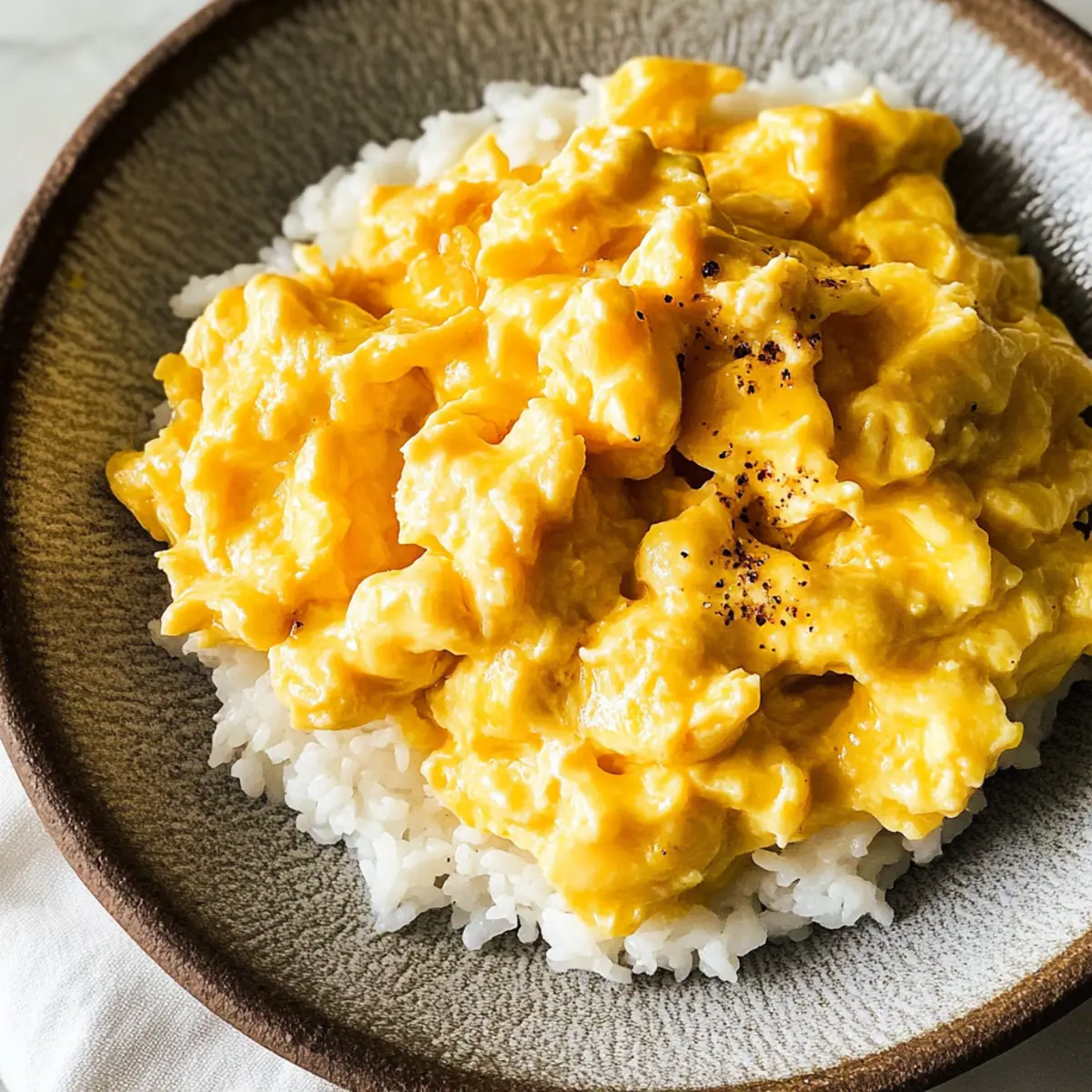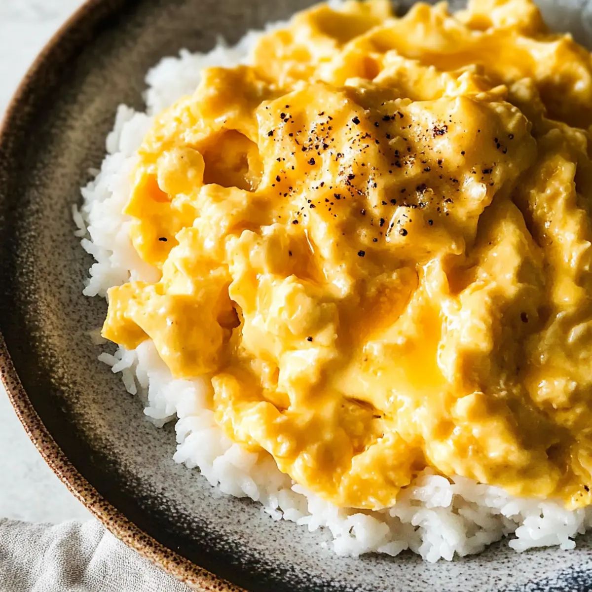Jump to Recipe Print RecipeAs I stood in my kitchen, a dream of fluffy, savory delight materialized—a quick escape from mundane breakfasts. Enter my 5-Minute Umami Miso Scrambled Eggs, a dish that transforms a few simple ingredients into an extraordinary morning treat. The beauty of this recipe lies not only in its speed but also in the rich umami flavor that makes each bite feel comforting and indulgent. With just four ingredients, you can create a creamy, Japanese-inspired twist on traditional scrambled eggs that’s sure to impress even the most discerning palate. Plus, it’s versatile enough to pair with a warm bowl of rice or a slice of toasted sourdough if you’re ready to elevate your breakfast game. Curiosity piqued? Let’s dive into making these mouthwatering miso scrambled eggs! Why are Miso Scrambled Eggs a Must-Try? Simplicity at its finest: With just four ingredients, you can whip up restaurant-quality scrambled eggs in no time. Umami-rich flavor: The combination of silky miso and eggs creates a savory experience that elevates your morning routine. Versatile serving options: Whether on toast, rice, or in a sandwich, these miso scrambled eggs are perfect for any meal. Quick and easy: Ready in just five minutes, there’s no need to spend time slaving over breakfast. Ideal for busy mornings! Crowd-pleasing: Impress your family or guests with this unique Japanese-inspired dish that marries comfort and flavor beautifully. A great way to switch up your egg game! Want more quick recipes like this? Check out our easy breakfast ideas for more inspiration! Miso Scrambled Eggs Ingredients For the Eggs • Eggs – The cornerstone of this dish, providing a fluffy and protein-packed base. • White Sugar – Adds a hint of sweetness to balance the savory miso flavor; maple syrup is a great substitute if desired. • White Miso Paste – The star ingredient that delivers the essential umami flavor characteristic of Japanese cuisine; other miso types can work, but the taste will vary. • Water – Aids in thinning the miso paste, helping create a smooth and creamy texture for the eggs. For Cooking • Toasted Sesame Oil – Infuses a nutty aroma and depth of flavor; feel free to swap with vegetable oil if you’re in a pinch. Optional Topping • Shichimi Togarashi – A delightful spice blend that adds complexity; paprika works as a mild alternative, or simply omit for a classic taste. Ready to make these delicious miso scrambled eggs? Grab your ingredients, and let’s start cooking! Step‑by‑Step Instructions for Miso Scrambled Eggs Step 1: Whisk the Eggs In a medium bowl, crack four large eggs and add a sprinkle of white sugar. Use a whisk to blend the mixture thoroughly until it’s smooth and there are no visible streaks, about 1-2 minutes. This process not only incorporates air for a fluffier texture but also prepares the eggs for the umami flavor of the miso. Step 2: Combine Miso Paste In a separate small bowl, mix one tablespoon of white miso paste with one tablespoon of cool water to create a smooth consistency. Gradually stir this miso mixture into your egg blend, ensuring it’s well incorporated. This will add a savory depth to your miso scrambled eggs, enriching their flavor profile. Step 3: Heat the Pan Place a nonstick pan over low heat and add one teaspoon of toasted sesame oil. Allow the oil to warm gently, becoming fragrant but not smoking, which should take about 1 minute. The low temperature is crucial to prevent overcooking the eggs, ensuring a creamy, soft texture in the final dish. Step 4: Cook the Egg Mixture Pour the egg and miso mix into the heated pan. Using a silicone spatula, gently stir the mixture in a slow, circular motion. Continue this for about 1-2 minutes until the eggs just begin to set but still look slightly runny, preventing overcooking for those perfect miso scrambled eggs. Step 5: Fold for Soft Scramble Once you see some curds forming around the edges, gently fold the eggs from the edges into the center. Repeat this process for an additional 2-3 minutes, until the eggs are softly scrambled but still creamy. This ensures a velvety consistency, highlighting the umami flavor of the miso. Step 6: Serve Immediately Remove the pan from heat and promptly transfer your miso scrambled eggs to a plate. For an added kick, generously sprinkle with shichimi togarashi, if desired. Serving right away is vital for the best texture and flavor; enjoy these flavorful eggs right after cooking for a comforting breakfast experience! What to Serve with Miso Scrambled Eggs Whether you’re looking to create a cozy breakfast or a delightful brunch, these eggs can shine alongside various delightful accompaniments. Steamed White Rice: This classic pairing absorbs the savory miso flavor, creating a perfectly balanced meal that nods to Japanese traditions. Toasted Sourdough: The crispy texture of sourdough contrasts beautifully with the creaminess of the miso scrambled eggs, adding heartiness to your morning. Pickled Vegetables: A side of pickled cucumbers or radishes brings a refreshing crunch that cuts through the richness of the eggs, elevating the entire dish. Avocado Slices: Creamy avocado complements the umami flavor, offering a rich, satisfying element that makes every bite feel indulgent. Warm Noodle Salad: Adding a side of soba or rice noodles lightly dressed with sesame oil can enhance the Asian flavors while maintaining a light texture. Miso Soup: Pairing miso scrambled eggs with a comforting bowl of miso soup creates a delightful duo that warms the soul and exceeds breakfast expectations. Chilled Green Tea: This refreshing beverage cleanses the palate beautifully and balances the savory notes of the meal, keeping your spirits up! With these tasty pairings, your miso scrambled eggs will transform into a breakfast spread that’s both satisfying and exciting! Make Ahead Options Miso scrambled eggs are perfect for meal prep enthusiasts! You can whisk the eg