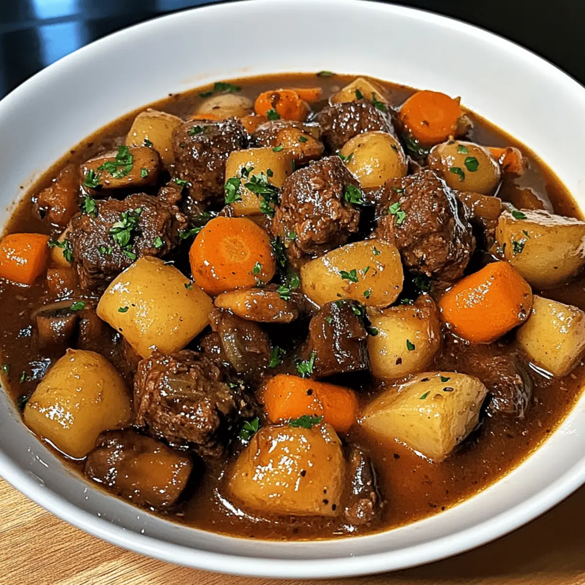 Jump to Recipe Print RecipeAs the leaves turn and a crisp chill penetrates the air, I find myself gravitating toward cozy evenings filled with comforting meals. Enter the One-Pot Autumn Beef Stew, a dish that not only warms your soul but also fills your kitchen with mouthwatering aromas. This stew is a beautifully simple way to savor the seasonal harvest, combining tender beef with hearty vegetables, all in one pot. With minimal prep time and plenty of room for personalization, it’s perfect for busy evenings when you crave something heartfelt yet effortless. Plus, it’s gluten-free, making it inclusive for everyone at the table. Are you ready to discover how to transform simple ingredients into a robust, satisfying dinner? Let’s dive into this seasonal delight together! Why is Autumn Beef Stew a Must-Try? Simplicity: This One-Pot Autumn Beef Stew is not only easy to prepare but also requires minimal clean-up, making weekday dinners a breeze. Deep Flavor: The slow simmering process allows the rich flavors of beef and vegetables to develop, creating a meal that’s both hearty and satisfying. Customizable: Feel free to unleash your creativity! Substitute veggies or even experiment with cuts of beef, like brisket. Crowd-Pleaser: This comforting dish is sure to impress family and friends, paired beautifully with crusty bread or over rice for a complete dining experience. Make-Ahead Friendly: Prepare it in advance to deepen the flavors, or store leftovers for a quick meal later, just like my Slow Cooker Beef recipe! Gather your ingredients and let’s warm up your home with this delightful stew! One-Pot Autumn Beef Stew Ingredients For the Beef • Beef Chuck – Provides rich flavor and texture; brisket or round cuts can also work but may slightly alter cooking time. For the Base • Olive Oil – Used for browning beef; adds richness. • Onions – Enhance flavor and sweetness. • Garlic – Adds aromatic depth and warmth. For the Vegetables • Carrots – Contribute natural sweetness; can substitute with peas or green beans for variety. • Potatoes – Offer heartiness and comfort. • Mushrooms – Provide an earthy flavor; any variety can be used as per preference. For the Flavoring • Tomato Paste – Adds depth and richness. • Dried Thyme & Rosemary – Essential herbs for flavoring the stew. • Salt & Pepper – Basic seasonings to enhance overall taste. For the Broth • Beef Broth – Ties the ingredients together; ensure it’s gluten-free if necessary. Step‑by‑Step Instructions for One-Pot Autumn Beef Stew Step 1: Heat the Oil Begin by heating a generous splash of olive oil in a large, heavy-bottomed pot over medium heat. Wait until the oil shimmers, signaling it’s hot enough for cooking. This initial step sets the stage for that rich flavor profile, so allow the oil to reach a perfect temperature before adding the beef. Step 2: Sear the Beef Next, add your beef chuck cubes to the pot in a single layer. Sear the meat for about 5-7 minutes, turning occasionally until it’s beautifully browned on all sides. This caramelization creates a deep, robust flavor that will enrich the One-Pot Autumn Beef Stew as it simmers later on. Step 3: Sauté the Aromatics Once the beef is nicely browned, add in the chopped onions and minced garlic. Sauté for 3-4 minutes, stirring frequently until the onions become translucent and fragrant. The aroma will begin to fill your kitchen, setting a cozy atmosphere as you prepare this comforting dish. Step 4: Add the Vegetables Incorporate sliced carrots, diced potatoes, and mushrooms into the pot, stirring lovingly to meld the flavors together. Allow the mixture to cook for another 5 minutes, letting the vegetables soften slightly and soak up the rich juices from the beef. This step primes your One-Pot Autumn Beef Stew for maximum flavor infusion. Step 5: Blend in the Seasonings Now, mix in the tomato paste along with dried thyme and rosemary, adding a sprinkle of salt and pepper to taste. Stir everything together, ensuring that the paste is evenly distributed throughout the veggies and meat. This is where your stew starts to take shape with a burst of herbaceous aroma. Step 6: Pour in the Broth Carefully pour in the beef broth, using a wooden spoon to scrape up any browned bits from the bottom of the pot. These bits contain rich flavors that are essential to the overall taste of your stew. Bring the mixture to a gentle boil, as anticipation builds for your One-Pot Autumn Beef Stew. Step 7: Simmer Gently Once boiling, reduce the heat to low, cover the pot, and let it simmer for 1.5 to 2 hours. Stir occasionally, watching for the beef to become tender and the flavors to develop beautifully. The comforting aroma will fill your home, signaling that deliciousness is on the way. Step 8: Final Taste Check After your stew has simmered to perfection, check for seasoning and doneness. If it seems a bit thin, you can mix a cornstarch slurry to thicken it slightly. Allow it to simmer for an additional 10 minutes if needed. Your One-Pot Autumn Beef Stew is now ready to be served, bringing warmth and comfort to your table. How to Store and Freeze One-Pot Autumn Beef Stew Fridge: Store the stew in an airtight container for up to 3 days. Allow it to cool completely before refrigerating to maintain flavor and texture. Freezer: Freeze leftovers in airtight containers for up to 3 months. Be sure to label containers with the date for easy tracking. Reheating: When ready to enjoy your One-Pot Autumn Beef Stew, thaw overnight in the refrigerator and reheat on the stovetop over medium heat, adding a splash of broth if needed. Make-Ahead: Prepare the stew a day in advance for enhanced flavors—like a comforting time capsule right in your fridge! What to Serve with One-Pot Autumn Beef Stew As you relish the warmth of this richly flavored stew, consider these delightful side dishes that evoke the cozy essence of fall. Crusty Bread: Ideal for dipping, the crispy