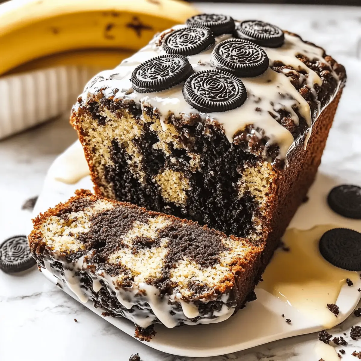 Decadent Delight: This Oreo Banana Bread delivers a rich, sweet flavor that’s a treat for any dessert lover. Easy to Make: With simple ingredients and straightforward steps, you’ll be enjoying fresh-baked goodness in no time. Versatile Recipe: Whether you’re vegan or gluten-free, this recipe can be easily adapted to fit dietary needs; try my Zucchini Bread Cookies for a unique twist! Crowd Pleaser: Perfect for brunches or gatherings, everyone will be asking for seconds. Perfect Pairing: Enjoy it warm with a cup of coffee or as an indulgent snack throughout the day. Your taste buds will thank you!