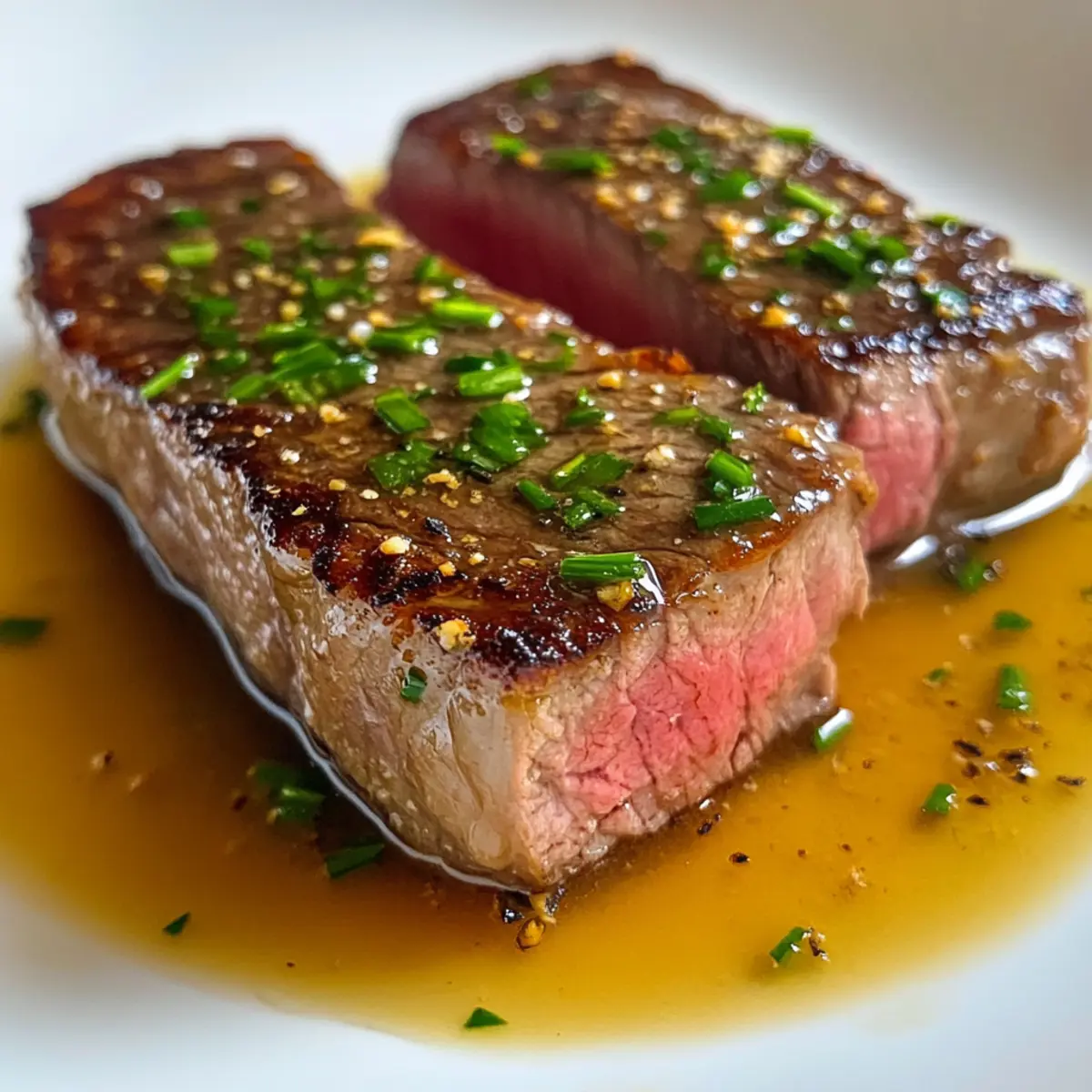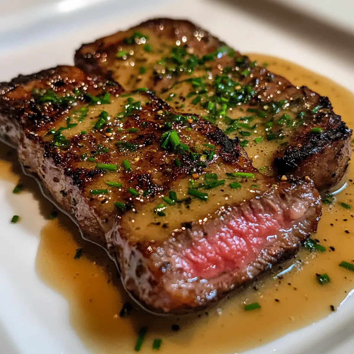 Jump to Recipe Print RecipeAs the sizzle of the steak hits the hot skillet, an air of anticipation fills the kitchen. This Pan-Seared Steak in Butter Sauce recipe transforms a simple cut of meat into a restaurant-worthy meal in just 20 minutes! It’s the ultimate answer to busy weeknights, combining quick prep with a rich, silky sauce that enhances the steak’s natural flavors. What I love most about this recipe is how it brings together high-protein goodness and gluten-free satisfaction without the fuss often associated with gourmet cooking. Whether you’re impressing guests or treating yourself to a well-deserved dinner, this dish proves that indulgence doesn’t have to be time-consuming. Ready to savor the ease and elegance of this mouthwatering delight? Why is this steak recipe a must-try? Quick Prep: With just 20 minutes from start to finish, this recipe is perfect for those busy weeknights. Rich Flavor: The silky butter sauce elevates the steak, infusing every bite with a burst of savory goodness that you won’t soon forget. Versatile Dish: Pair it with sautéed greens or roasted potatoes for a feast that pleases everyone! Consider complementing it with a side of Honey Butter Chicken for a delightful meal. Gluten-Free: Made with gluten-free ingredients, this dish accommodates all dietary needs while delivering on taste. Impressive Presentation: Serve it up with freshness from chives and parsley, making it as visually stunning as it is delicious. Whether you’re preparing a cozy dinner for two or hosting a gathering, this Pan-Seared Steak in Butter Sauce will leave guests amazed! Pan-Seared Steak in Butter Sauce Ingredients For the Steak Steak Strips – A key protein choice; flank or NY strip creates a tender, juicy mouthfeel. Oil – Essential for marinating and browning; vegetable or canola oil can be a great substitute. For the Sauce Butter – The star of the sauce, use unsalted for brand-new flavor control. Shallots – These bring sweetness and aromatic depth; onions work in a pinch! Garlic – Adds a punch of flavor; garlic powder can be swapped if necessary. Fresh Thyme & Chives – Herbs for a fresh aroma; dried herbs are an acceptable alternative. Pepper – Cracked pepper enhances flavor beautifully; ensure it’s fresh for the best result. Chili Pepper Flakes – For a spice kick; adjust to your liking. For Seasoning & Spice Sriracha – Gives a delightful heat and depth; feel free to omit for milder flavors or swap with paprika. Soy Sauce – Offers umami richness; choose Tamari for a gluten-free option. Lemon Juice – Brightens up the dish; vinegar can serve as a worthy substitute. Mustard – Adds tanginess; Dijon is ideal, but yellow mustard can work too. Beef Stock – Enriches the sauce; vegetable stock creates a lighter alternative. For Garnish Chopped Parsley – Freshness on top enhances presentation and flavor; a perfect finishing touch! With the ingredients ready, you’ll be one step closer to enjoying a delectable Pan-Seared Steak in Butter Sauce! Step‑by‑Step Instructions for Pan-Seared Steak in Butter Sauce Step 1: Marinate the Steak In a bowl, whisk together oil, Sriracha, cracked pepper, and soy sauce until combined. Add your steak strips, ensuring they’re well-coated in the marinade. Cover and let them marinate for at least 30 minutes at room temperature, allowing the flavors to infuse into the meat for a delicious kick in your Pan-Seared Steak in Butter Sauce. Step 2: Preheat the Skillet Heat a large skillet over medium-high heat and add 2 tablespoons of unsalted butter. Once the butter is melted and begins to bubble, season the marinated steak strips liberally with salt and pepper. Sear the steak for 1-2 minutes on each side until it develops a beautiful golden-brown crust. Remove the steak from the skillet and set it aside while we build the sauce. Step 3: Sauté Aromatics Lower the heat to medium and in the same skillet, add another tablespoon of butter. Once melted, add finely chopped shallots and minced garlic, cooking for about 2 minutes until fragrant and translucent. The residual flavors from the pan will enhance the richness of your sauce for the Pan-Seared Steak in Butter Sauce. Step 4: Build the Sauce Stir in fresh thyme, chives, chili pepper flakes, lemon juice, mustard, and beef stock to the pan. Scrape the bottom of the skillet with a wooden spoon to deglaze it, capturing all those tasty browned bits. Allow the mixture to simmer for about 5 minutes, reducing the sauce by half while it thickens and intensifies the flavor. Step 5: Finish with Butter After reducing the sauce, add the remaining butter and swirl it around the pan until melted. Taste and adjust the seasoning with additional salt or pepper if needed. This step creates a rich, silky texture in your sauce, perfect for enhancing the already savory Pan-Seared Steak. Step 6: Reheat and Serve Return the seared steak to the skillet, allowing it to reheat for about 1 minute in the warm sauce. Remove from heat and garnish with freshly chopped parsley and chives for a pop of color. Serve your juicy Pan-Seared Steak in Butter Sauce hot, and watch everyone dig in with delight! Pan-Seared Steak in Butter Sauce Variations Feel free to explore exciting twists and swaps that can elevate your Pan-Seared Steak in Butter Sauce! Chicken Variation: Swap steak for chicken breasts. Marinate and cook similarly; it’s a fabulous way to enjoy the sauce with lighter meat. Pork Chops: Use pork chops instead of steak. They’ll absorb the flavors beautifully and offer a delightful alternative. Herb Swap: Experiment with rosemary or oregano in place of thyme and chives. The new herb profiles add layers of flavor that will intrigue your taste buds! Smoky Flavor: Try grilling instead of searing for a smoky finish. The charcoal notes will enhance the dish’s depth, making it feel even more gourmet. Spicier Kick: Add chipotle powder instead of chili flakes for a bold heat. This subtle change give