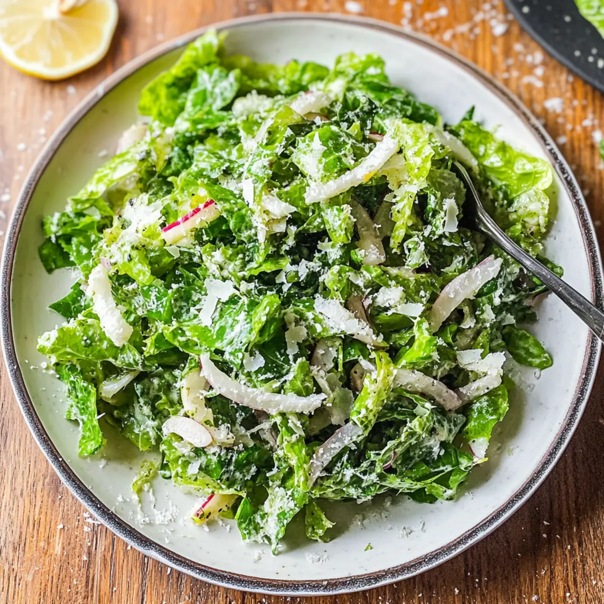 As I rummaged through the fridge one sunny afternoon, I stumbled upon a beautiful head of romaine lettuce and a hunk of parmesan just waiting to shine. Enter my 5-Minute Parmesan Chopped Salad—a delightful mix that not only satisfies your cravings for something fresh but also promises quick prep without sacrificing taste. This light and vegetarian dish comes together in a snap, making it perfect for those busy days when you crave a homemade touch. With the zesty kick of lemon and the savory depth of parmesan, this salad transforms simple ingredients into a vibrant bowl of happiness. Are you ready to whip up something extraordinary in just five minutes? Let’s dive in!