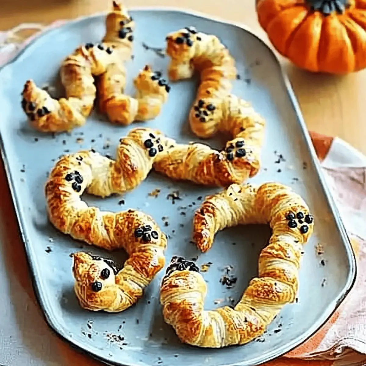 These Pastry Snakes are a fun Halloween snack that combines flaky, cheesy pastry with a sprinkle of seeds for a delightful treat.