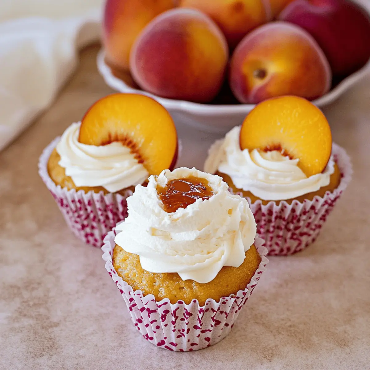 Jump to Recipe Print RecipeAs I sifted through my kitchen, the scent of fresh peaches sparked a joyful memory—a lazy summer afternoon spent picking fruit with friends. This inspiration led me to create the perfect dessert: Soft Peach Cupcakes with Gooey Jam Filling. These delightful peach cupcakes are a wonderful blend of sweetness and fluffiness, embodying the essence of sun-ripened peaches and cream. With minimal prep, they’ll become your go-to summer treat, ideal for gatherings or simply because you deserve a break from fast food. Each cupcake is generously filled with luscious peach jam and topped with a cloud of whipped cream, providing that comforting nostalgia of warm desserts without the fuss. Curious about how to bring this seasonal delight to your table? Let’s dive into the recipe together! Why are these Peach Cupcakes unforgettable? Irresistible Taste: These peach cupcakes are a delightful blend of fresh, juicy flavors with a silky whipped cream topping that sings summer. Easy to Make: With simple ingredients and steps, you can whip these up in no time, making them perfect for busy days. Gooey Jam Filling: The center is bursting with luscious peach jam, adding an unexpected twist that elevates your dessert game. Versatile Delight: Enjoy them on their own or pair with a refreshing iced tea for a sweet brunch or light dessert. Explore more fruity delights like Peach Cobbler Buttery for additional inspiration! Crowd-Pleasing Option: These cupcakes are sure to impress at gatherings, stealing the spotlight from traditional desserts. Each bite is a comforting reminder of warm summer days, making them a must-try! Peach Cupcake Ingredients For the Batter Unsalted Butter – Adds moisture and richness to the cupcakes; you can substitute with margarine for a dairy-free option. Brown Sugar – Provides depth of flavor; blending it with granulated sugar enhances sweetness. Granulated Sugar – Sweetens the batter without overpowering the peach flavor. Eggs – Essential for binding; using room temperature eggs helps with easier mixing. Vanilla Extract – Enhances the overall flavor profile of these peach cupcakes. Cake Flour – Creates a light, fluffy texture in the cupcakes; all-purpose flour can be used in a pinch. Baking Powder – A leavening agent that ensures your cupcakes rise beautifully. Kosher Salt – Balances sweetness and improves flavor; don’t skip this! Milk – Adds moisture and richness, ensuring a tender crumb. For the Topping Heavy Whipping Cream – Offers a luxurious creamy finish when whipped; opt for a high-fat content for best results. Peach Jam – Serves as a filling for a gooey surprise; it’s the essence of peach flavor in each cupcake. For the Garnish Fresh Peach – Slices for garnishing, adding a juicy, vibrant touch that makes each cupcake visually appealing. These Peach Cupcakes are not just a dessert; they’re an experience, bringing the sunny flavors of summer right to your table! Step‑by‑Step Instructions for Peach Cupcakes Step 1: Preparation Begin by gathering all your ingredients for the Peach Cupcakes. Preheat your oven to 350°F (175°C) and line a cupcake pan with paper liners. This ensures that the cupcakes will bake evenly and release easily once they’re ready. Organizing everything ahead will streamline your baking process, making it enjoyable and fuss-free! Step 2: Mixing Wet Ingredients In a large mixing bowl, use a hand mixer to whisk together 1/2 cup softened unsalted butter, 1/2 cup brown sugar, and 1/4 cup granulated sugar until the mixture is light and fluffy. Add in 2 room temperature eggs and 1 teaspoon vanilla extract, mixing until fully combined. This velvety mixture will be the flavorful base for your Peach Cupcakes. Step 3: Combining Dry Ingredients In a separate bowl, whisk together 1 ½ cups cake flour, 1 ½ teaspoons baking powder, and 1/2 teaspoon kosher salt. This mixture provides the structure for the cupcakes. Carefully combining the dry ingredients ensures an even distribution of the leavening agents, which will help your cupcakes rise beautifully during baking. Step 4: Combine Mixtures Gradually stir half of the dry mixture into the wet ingredients until just combined. Then, pour in 1/2 cup of milk and mix gently until smooth. Follow by adding the remaining dry ingredients, taking care not to overmix. The batter should be thick and glossy—this is crucial for the soft texture of your Peach Cupcakes. Step 5: Baking Spoon the cupcake batter into the lined pan, filling each liner halfway for the best rise. Bake in the preheated oven for about 20 minutes, or until a toothpick inserted in the center comes out clean. This is when you’ll witness the transformation into fluffy Peach Cupcakes, with a lightly golden top that signals they are perfectly baked. Step 6: Cooling Once baked, remove the cupcake pan from the oven and allow it to cool for 5 minutes in the pan. This helps them set while still warm. Carefully transfer the cupcakes to a wire rack to cool completely. Proper cooling ensures they hold their shape and texture, making for a delightful Peach Cupcake experience. Step 7: Filling and Topping Using a cupcake corer, gently remove the center of each cooled cupcake. Fill the cavity with peach jam, allowing that gooey treasure to shine. Next, whip 1 cup of heavy whipping cream until soft peaks form, then pipe onto each cupcake. Finish with a fresh peach slice on top to create a vibrant, summery look that invites everyone in! Expert Tips for Peach Cupcakes Butter Magic: Use room temperature unsalted butter for the best creaminess and texture, ensuring your cupcakes are moist. Eggs Matter: Always use room temperature eggs to allow for better mixing, leading to a fluffier batter in your peach cupcakes. Don’t Overmix: Gently fold your ingredients together; overmixing can lead to tough cupcakes. Instead, aim for a just-combined batter for that perfect softness. Watch the Baking Time: Keep an eye on your cup