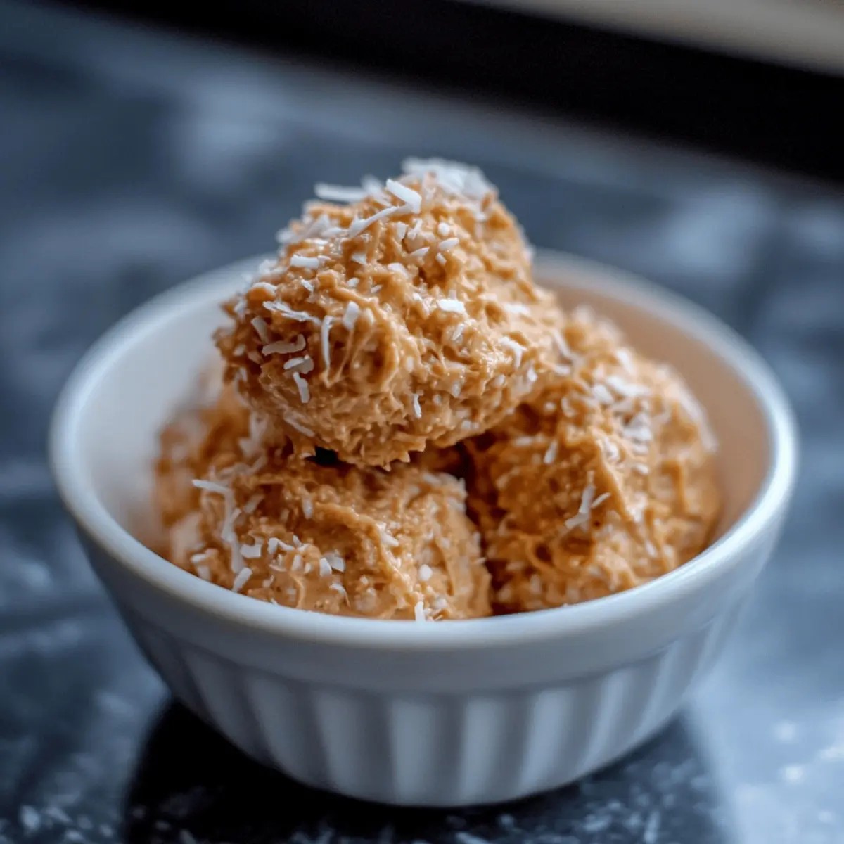 Jump to Recipe Print RecipeThe moment the creamy peanut butter meets the sweet, chewy coconut flakes in this recipe, it feels like a hug for your taste buds. These No Bake Peanut Butter Coconut Bites are your new secret weapon for satisfying those mid-afternoon cravings without the need for baking. Not only are they incredibly quick to whip up—ready in under 20 minutes—but they also consist of just five simple ingredients, making them a perfect fit for any busy kitchen. They’re not just easy; they’re also highly adaptable, allowing you to personalize each bite with your favorite nut butters or sweeteners. Whether you enjoy them as a snack or dessert, these bites offer a guilt-free treat that you can feel good about indulging in. Ready to discover how these bites can change your snack game? Let’s dive in! Why Are These Bites a Must-Try? Quick and Easy: These no bake peanut butter coconut bites come together in just 20 minutes, perfect for a last-minute snack or dessert! Minimal Ingredients: With only five simple items, you can whip up a delicious treat without the hassle of complicated recipes. Endless Variations: Feel free to switch up nut butters or sweetness levels to create a unique flavor profile that suits your taste. Guilt-Free Indulgence: Enjoy the rich, delectable taste without the sugar overload; they’re a healthier alternative to store-bought snacks. Perfect for Sharing: These bites are guaranteed to impress friends and family, much like my Honey Butter Chicken or Wrapped Mozzarella Bites. Versatile and Fun: Shape them into bites or balls—whichever you prefer; they’re delightful no matter the form! Peanut Butter Coconut Bites Ingredients • Ready to create your no bake delight? Here’s what you’ll need! For the Base Creamy Peanut Butter – Delivers rich flavor and a sturdy base; almond butter makes a great alternative! Coconut Flakes – Provides chewy texture; opt for larger flakes if you prefer a heartier bite. Unsalted Butter – Binds the ingredients together and adds creaminess; remember to melt it beforehand for easier mixing. For Sweetness Sweetener (Allulose, Maple Syrup, or Honey) – Adjust the sweetness to your liking; liquid options work best for drier mixes. Vanilla Extract – Elevates the flavor profile; this ingredient is your secret to an irresistible taste. Consider these simple ingredients and you’ll be well on your way to making delightful Peanut Butter Coconut Bites! Step‑by‑Step Instructions for Peanut Butter Coconut Bites Step 1: Prepare the Baking Tray Start by lining a baking tray with wax paper to prevent sticking. This will serve as the base for your Peanut Butter Coconut Bites. Make sure the paper is smooth and flat, ensuring each bite lifts off easily once they are set. Having your tray ready will streamline the process, keeping things organized as you prepare your mixture. Step 2: Melt the Butter In a microwave-safe bowl, melt the unsalted butter for about 30 seconds on high. Watch closely to avoid overheating; it should be fully melted but not bubbling. This melted butter will act as a crucial binder in your Peanut Butter Coconut Bites, adding richness and ensuring a cohesive mix. Stir it gently to break up any solid pieces, allowing a smoother blend with the peanut butter. Step 3: Combine Peanut Butter and Butter Add the creamy peanut butter to the melted butter in your bowl. Stir vigorously for about a minute, using a spatula or spoon, until the mixture is fully combined and smooth. The creamy texture of the peanut butter will marry beautifully with the melted butter, creating a lovely base for your no-bake bites. Ensure there are no lumps for an even consistency. Step 4: Mix in Sweetener and Vanilla Now, add your chosen sweetener—be it allulose, maple syrup, or honey—along with the vanilla extract to the peanut butter mixture. Stir for about 30 seconds until everything is well incorporated. This step is essential as it enhances the flavor of your Peanut Butter Coconut Bites with delightful sweetness and aroma, elevating your treat to new heights. Step 5: Incorporate Coconut Flakes Fold in the coconut flakes gently into the mixture, ensuring they are uniformly distributed throughout. Mix for an additional minute until the flakes are thoroughly combined, creating a cohesive dough. The coconut will add a delightful chewiness and nutty flavor to your bites, balancing perfectly with the other rich flavors in your no-bake treat. Step 6: Shape the Bites Using a spoon or your hands, scoop out portions of the mixture and form them into small bites or balls, depending on your preference. Place the shaped bites on your lined baking tray, making sure they are spaced apart for easy handling. Aim for uniform sizes, about an inch in diameter, to ensure they set evenly and are easy to grab for snacking. Step 7: Freeze to Set Finally, place your tray in the freezer for at least 10 minutes. This will allow your Peanut Butter Coconut Bites to firm up nicely, enhancing their texture and flavor. After the time has elapsed, they should feel slightly firm to the touch. Once set, you can enjoy them immediately or store them in the fridge for later snacking. Peanut Butter Coconut Bites Variations Feel free to get creative with these recipes—your taste buds deserve a little adventure! Nut Butter Swap: Use almond or cashew butter for a different flavor profile. Each nut butter brings its unique twist to the bites! Sweet Tooth Delight: Add chocolate chips or diced Medjool dates for an extra level of sweetness. This makes each bite a delightful explosion of flavor. Crunch Factor: Mix in chopped walnuts or almonds for a satisfying crunch. The combination of smooth and crunchy textures creates a fun eating experience. Enhanced Flavor: Roll the bites in shredded coconut or cocoa powder for a decadent twist. Not only do they look amazing, but they also add diverse flavors! Protein Boost: Stir in a scoop of your favorite protein powder for an en