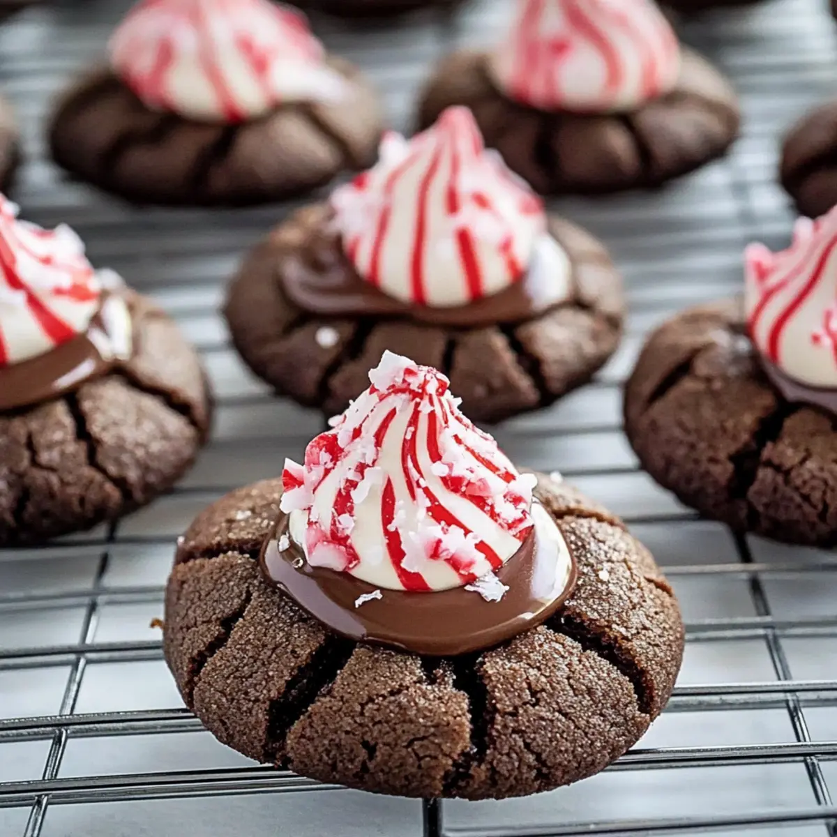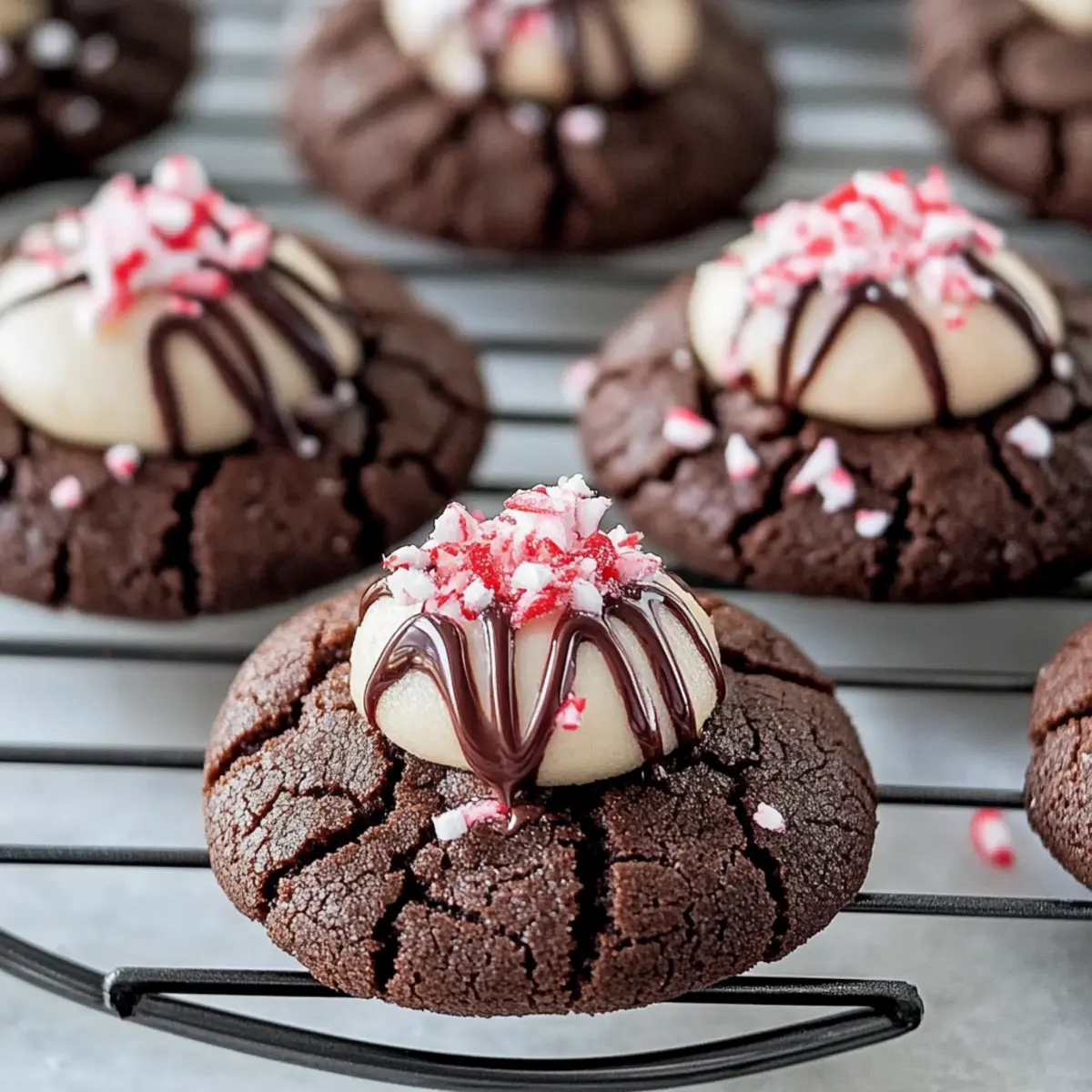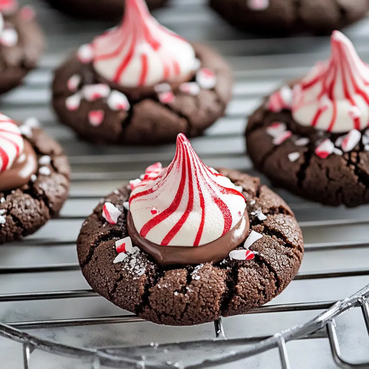 Jump to Recipe Print RecipeThe moment the scent of peppermint and chocolate fills your kitchen, a wave of holiday nostalgia sweeps over you—reminding me of cozy gatherings and laughter by the fire. That’s exactly the magic behind these Peppermint Chocolate Blossom Cookies! With a delightful blend of rich cocoa and refreshing peppermint, not only do they make for a stunning centerpiece at any cookie exchange, but their tender, cake-like texture ensures they delight every taste bud. Whether you’re looking to impress guests or simply enjoy a cozy evening in, these cookies bring a festive charm that transforms ordinary moments into memorable ones. Ready to bring the holiday spirit into your home? Let’s dive into this easy baking adventure together! Why Are Peppermint Chocolate Cookies Irresistible? Irresistible Flavor: The combination of rich chocolate and refreshing peppermint creates a festive experience that captivates your taste buds. Easy to Make: This recipe is straightforward, perfect for bakers of all levels looking to whip up holiday magic in no time. Perfect for Sharing: Whether you’re gifting a cookie tin or hosting a gathering, these treats are sure to impress family and friends. Versatile Options: Feel free to swap in dark chocolate kisses or even add nuts for a unique twist! And if you’re a fan of other sweet treats, don’t miss out on my Mint Chocolate Chip Protein Balls or the delightful Chocolate Croissant Bake. Symbol of the Season: These cookies don’t just taste great; they embody the warmth and joy of the holiday season. Indulge in these Peppermint Chocolate Blossom Cookies and experience the joy of homemade treats! Peppermint Chocolate Blossom Cookies Ingredients For the Cookies 1 cup all-purpose flour – Provides structure and can be substituted with almond flour for a gluten-free version. 1/2 cup unsweetened cocoa powder – Ensure it’s high quality to maximize the chocolate flavor in your Peppermint Chocolate Blossom Cookies. 1 tsp baking soda – Helps to leaven the cookies, giving them a light texture. 1/4 tsp salt – Enhances the sweetness and overall flavor profile. 1/2 cup unsalted butter, softened – Adds creaminess and should be soft to help maintain shape. 3/4 cup granulated sugar – Sweetens the cookies and aids in achieving a desirable texture. 1/4 cup packed brown sugar – Contributes moisture and a richer flavor due to its molasses content. 1 large egg – Binds the ingredients while adding moisture. 1 tsp vanilla extract – Amplifies the flavor complexity in the cookies. 2 tbsp milk – Provides necessary moisture; can use any plant-based milk as a substitute. 1/2 cup mini chocolate chips (optional) – Adds an extra chocolatey richness if desired. 1/2 cup crushed peppermint candies or candy canes – Gives a festive flair and a burst of peppermint flavor. 24 peppermint-striped chocolate kisses – Offers a decorative touch and enhances the peppermint taste. For the Topping Crushed peppermint candies – Sprinkle on warm cookies for a festive touch and added texture. Step‑by‑Step Instructions for Peppermint Chocolate Blossom Cookies Step 1: Preheat the Oven Begin by preheating your oven to 350°F (175°C). While the oven warms up, line two baking sheets with parchment paper to prevent the cookies from sticking. This simple preparation step ensures your Peppermint Chocolate Blossom Cookies will bake evenly and maintain their delightful shape. Step 2: Mix Dry Ingredients In a large mixing bowl, combine the all-purpose flour, unsweetened cocoa powder, baking soda, and salt. Whisk these dry ingredients together until they are evenly blended, which should take about a minute. This combination forms the flavorful base of your Peppermint Chocolate Blossom Cookies and helps ensure a uniform texture. Step 3: Cream Butter and Sugars In a separate bowl, beat the softened unsalted butter alongside the granulated sugar and brown sugar using an electric mixer. Mix on medium speed for 2-3 minutes until the mixture is light and fluffy. This step creates air pockets in the batter, contributing to the soft, cake-like texture of the cookies. Step 4: Combine Wet Ingredients Add the egg, vanilla extract, and milk to the butter-sugar mixture. Blend these ingredients until fully incorporated, which should take about one minute. Gradually mix in the combined dry ingredients, stirring until the dough is smooth and well blended, ensuring that your Peppermint Chocolate Blossom Cookies have a rich, chocolatey flavor. Step 5: Add Chocolate Chips If desired, fold in the mini chocolate chips gently using a spatula. This will enhance the overall chocolate flavor in your Peppermint Chocolate Blossom Cookies, giving them delightful pockets of melted chocolate throughout. Be careful not to overmix; you want the chocolate distributed without breaking them. Step 6: Shape Cookies Use your hands to roll the dough into 1-inch balls, placing them 2 inches apart on the lined baking sheets. The spacing is crucial for even baking and ensuring that your Peppermint Chocolate Blossom Cookies don’t end up merging into one large cookie. Step 7: Bake the Cookies Place the baking sheets in the preheated oven and bake the cookies for 8-10 minutes. The edges should be set, while the centers remain soft and slightly underbaked, which adds to the tender texture of your Peppermint Chocolate Blossom Cookies once cooled. Step 8: Add Kisses As soon as you remove the cookies from the oven, gently press a peppermint-striped chocolate kiss into the center of each cookie. The heat from the cookies will soften the kisses, allowing them to fuse with the cookie and create that signature look for your Peppermint Chocolate Blossom Cookies. Step 9: Sprinkle Peppermint While the cookies are still warm, sprinkle crushed peppermint candies or candy canes over the tops. This adds a festive touch and enhances the peppermint flavor, making your Peppermint Chocolate Blossom Cookies as beautiful as the