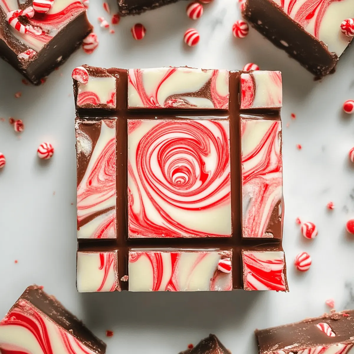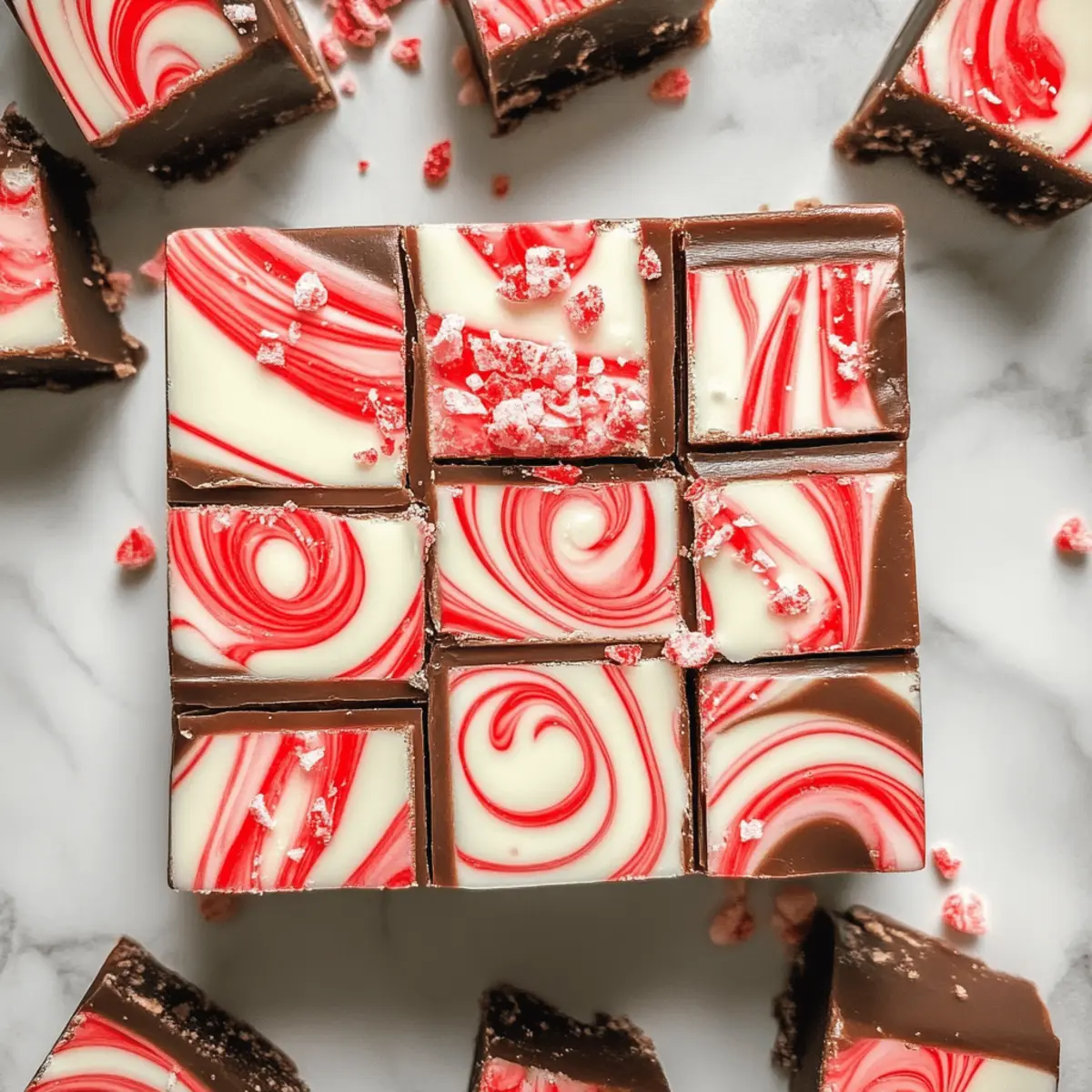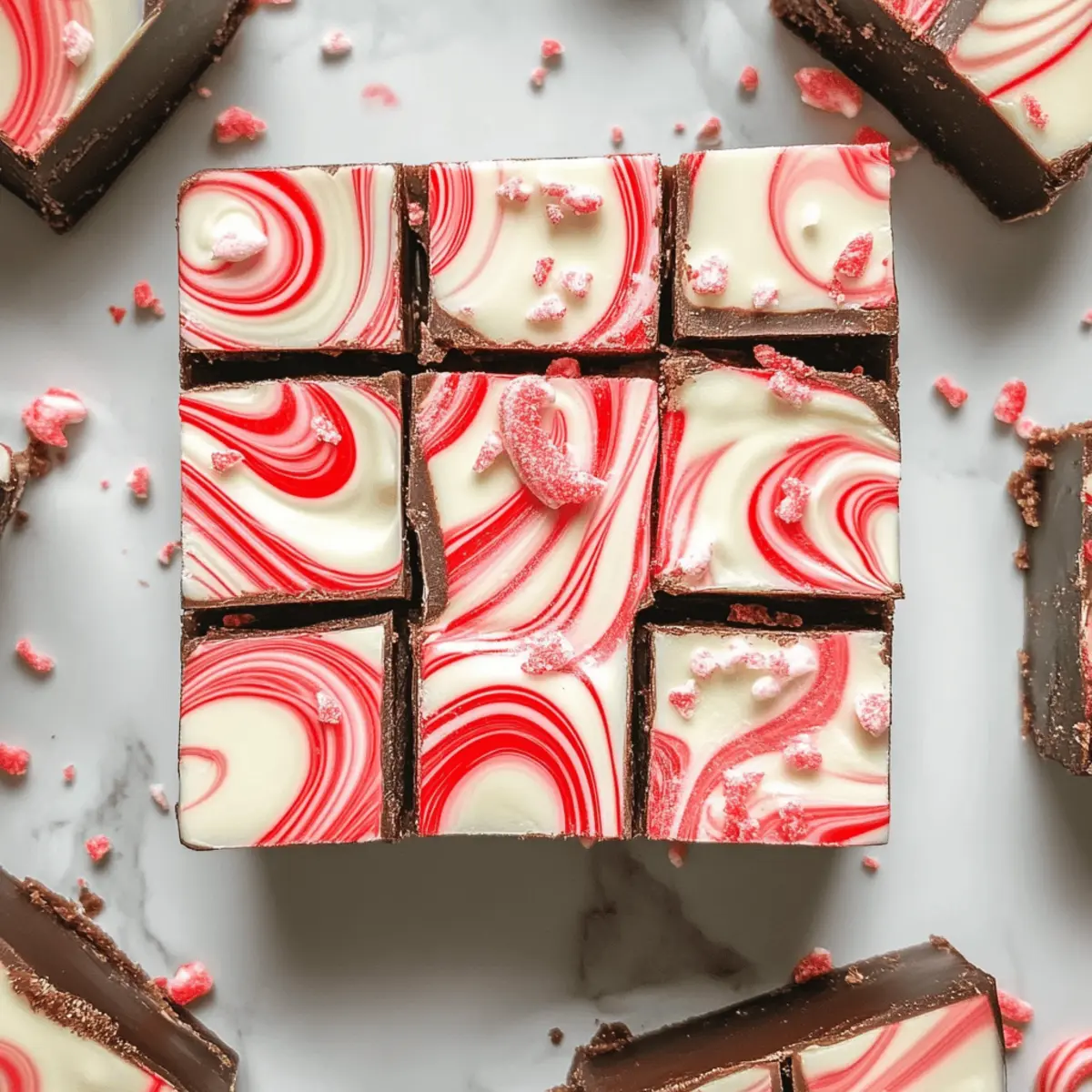 Jump to Recipe Print RecipeAs the first hints of winter creep in, I can’t help but welcome the cozy warmth of the holiday season with a delightful culinary ritual: making Peppermint Swirl Fudge. This easy no-bake recipe brings the perfect blend of smooth chocolate and refreshing peppermint to your dessert table, making it an absolute crowd-pleaser. Not only does it come together in a flash, but it’s also a fantastic treat for sharing with loved ones or as a heartfelt homemade gift. With its striking swirls of red and white, this fudge isn’t just a treat for the tastebuds; it’s a festive visual feast that captures the spirit of the season. Who wouldn’t want to slice into a piece of joy that melts in your mouth? Are you ready to elevate your dessert game this holiday? Why is Peppermint Swirl Fudge a Must-Make? Irresistible Flavor: The blend of creamy sweetened condensed milk, rich white and semi-sweet chocolate, and refreshing peppermint creates a delightful combination that you’ll crave. No-Bake Convenience: This recipe is perfect for anyone who wants to whip up a festive treat without turning on the oven! Unique Gift Idea: Impress your friends and family by packaging your fudge in festive tins. It’s a personal touch that stands out! Crowd-Pleasing Appearance: The striking swirls of red and white will capture the attention of guests, making it an eye-catching centerpiece for any dessert table. Quick & Easy: With just a few steps, you can have delightful peppermint fudge ready to chill in no time. If you love quick recipes, check out Hot Fudge Brownie for another delicious option! Peppermint Swirl Fudge Ingredients For the Fudge Base Sweetened Condensed Milk – Provides creaminess and sweetness; you can use coconut milk for a dairy-free alternative. White Chocolate Chips – Adds a sweet flavor and creamy texture; consider dairy-free chips for a vegan option. Semi-Sweet Chocolate Chips – Offers rich chocolate undertones that balance the sweetness; dark chocolate can enhance the fudge’s depth. Peppermint Extract – Infuses that delightful minty flavor; avoid using peppermint oil since it’s more concentrated. For the Swirl Red Food Coloring – Enhances the visual appeal; this is optional and can be adjusted based on your creativity. For Topping Crushed Peppermint Candies – Adds a crunchy texture and festive look; you can replace these with crushed candy canes for a different twist. Let this Peppermint Swirl Fudge be the star of your festive gatherings, making it a memorable treat for all! Step‑by‑Step Instructions for Peppermint Swirl Fudge Step 1: Prep the Baking Dish Begin by preparing an 8×8-inch square baking dish. Line it with parchment paper, allowing extra paper to hang over the edges for easy removal later. This step ensures your Peppermint Swirl Fudge will come out smoothly without sticking, which is crucial for achieving those beautiful swirls. Step 2: Melt the Chocolate In a large saucepan over low heat, combine the sweetened condensed milk, white chocolate chips, and half of the semi-sweet chocolate chips. Stir continuously for about 5 minutes until everything is melted and smooth. You should see a creamy consistency without any lumps, signaling that it’s time to add flavor. Step 3: Add Flavors Remove the saucepan from heat, and stir in the peppermint extract, making sure it blends well with the melted chocolate mixture. The aroma of peppermint should now fill your kitchen, enhancing the festive feel. This is where your Peppermint Swirl Fudge gains its signature refreshing flavor, so give it a good mix. Step 4: Create the Swirl Next, remove half of the fudge mixture and set it aside in a separate bowl. To the remaining fudge in the saucepan, add a few drops of red food coloring. Stir until you achieve a delightful pink hue, then carefully pour this mixture into the lined baking dish, creating a colorful layer for your fudge. Step 5: Combine Layers Now, pour the reserved white fudge mixture over the top of the pink fudge layer in the baking dish. Using a knife or toothpick, gently swirl the two mixtures together, creating a beautiful marbled effect. Aim for a visually striking Peppermint Swirl Fudge while being careful not to overmix, which could dull the colors. Step 6: Add Toppings Sprinkle crushed peppermint candies generously over the top of your fudge, allowing their bright color and crunchy texture to enhance the visual appeal. Gently press down on the candies to make sure they adhere to the fudge. This final touch not only looks festive but adds a delightful crunch with every bite. Step 7: Chill Refrigerate the fudge for at least 2 hours, allowing it to set completely. After it firms up, you’ll know it’s ready when it feels solid to the touch. Once chilled, carefully lift the fudge out of the baking dish using the parchment paper, and slice it into squares for serving or gifting. Peppermint Swirl Fudge Variations Eager to make this Peppermint Swirl Fudge your own? Here are some delightful twists to consider! Dairy-Free: Substitute sweetened condensed milk with coconut milk and dairy-free chocolate chips for a vegan-friendly treat. Creamy yet guilt-free! Nutty Addition: Incorporate toasted walnuts or pecans into the fudge for a wonderful crunch. The earthy flavors harmonize beautifully with the sweet chocolate. Minty Freshness: For a mintier kick, add crushed mint leaves or a few drops of peppermint flavoring instead of extract. You’ll love the burst of freshness! Chocolate Variations: Swap white chocolate for caramel or peanut butter chips for different flavor profiles. Each variation will result in a unique, decadent fudge. Festive Colors: Instead of just red food coloring, get creative with multiple colors for the swirl! Use green and white for a cheerful holiday vibe. Spicy Kick: For those who enjoy a bit of heat, add a pinch of cayenne or espresso powder to enrich the flavor profile. It’s a surprising twist that will keep everyone