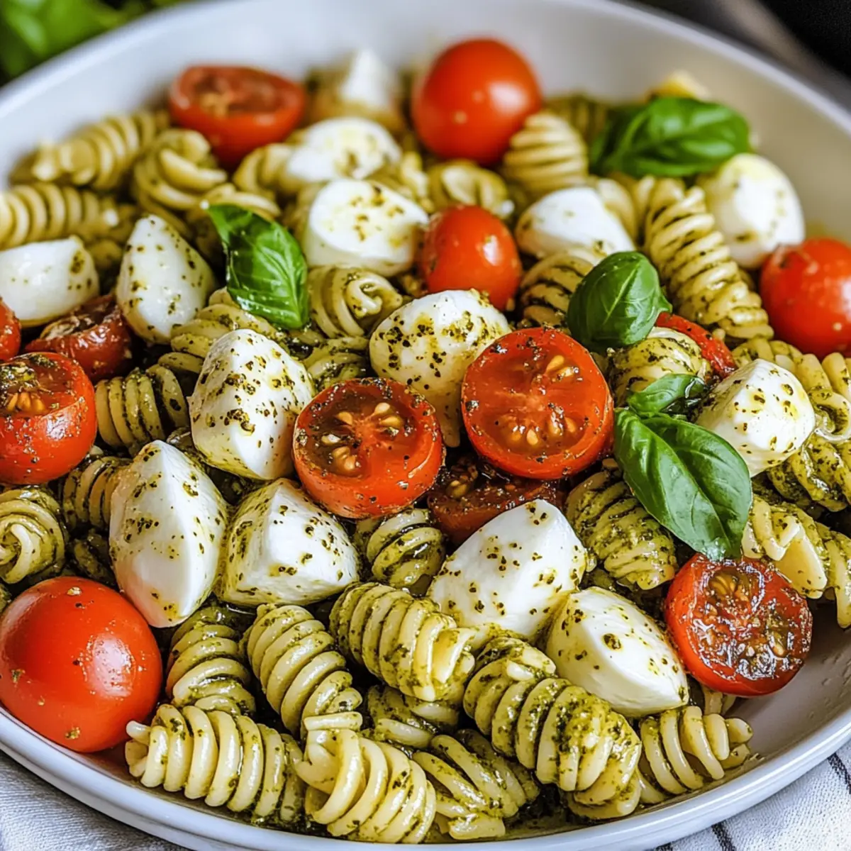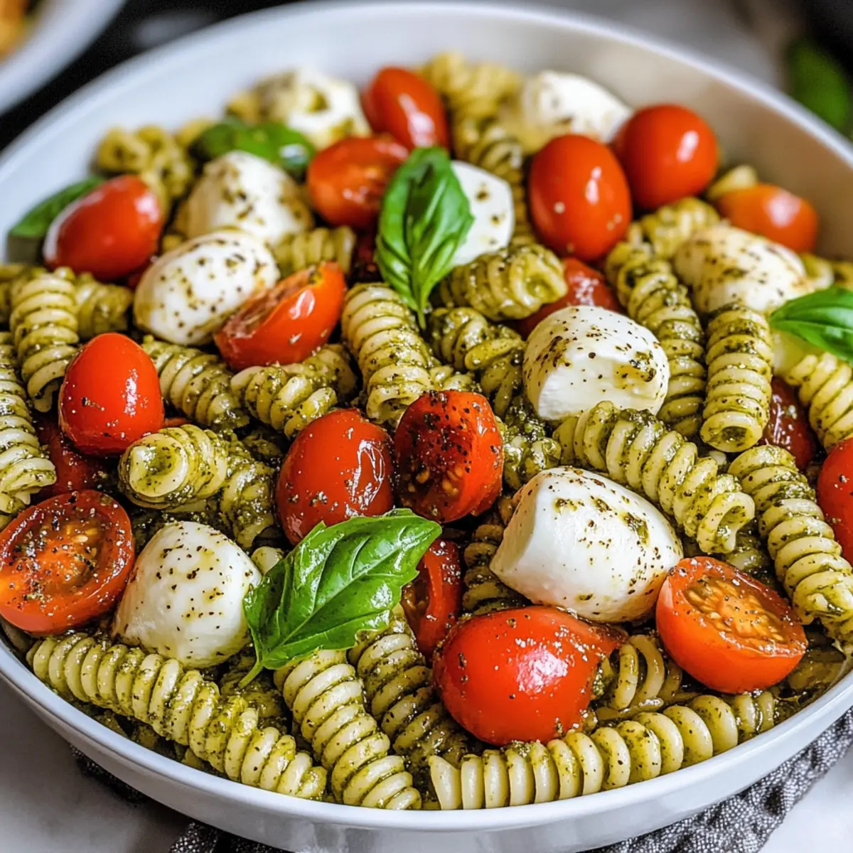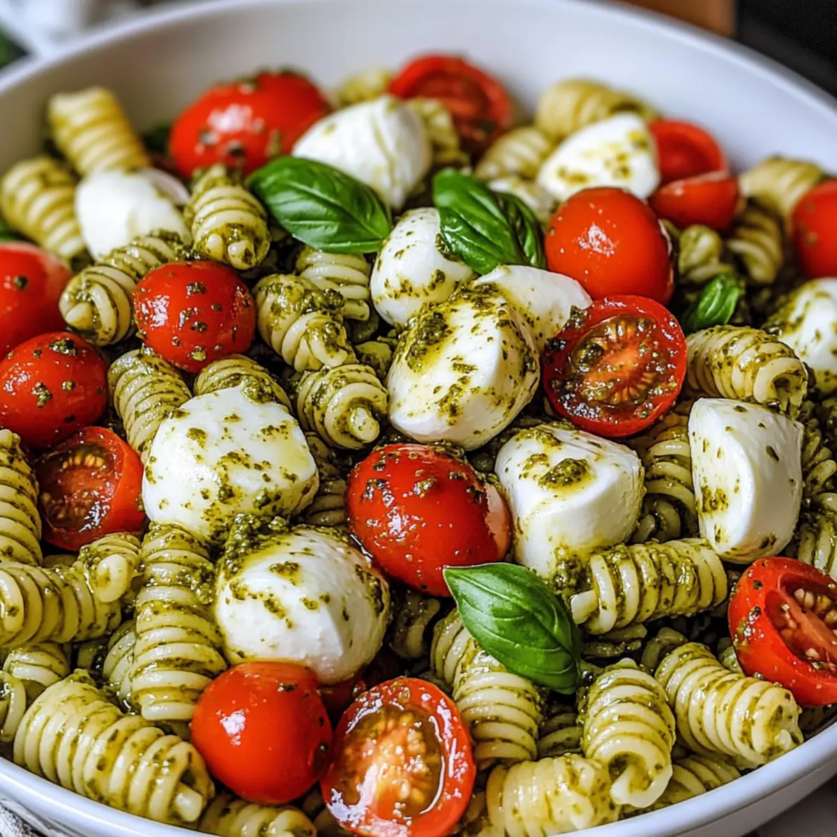 Delight in this refreshing Pesto Caprese Pasta Salad that combines juicy tomatoes, creamy mozzarella, and aromatic basil for a perfect summer dish.