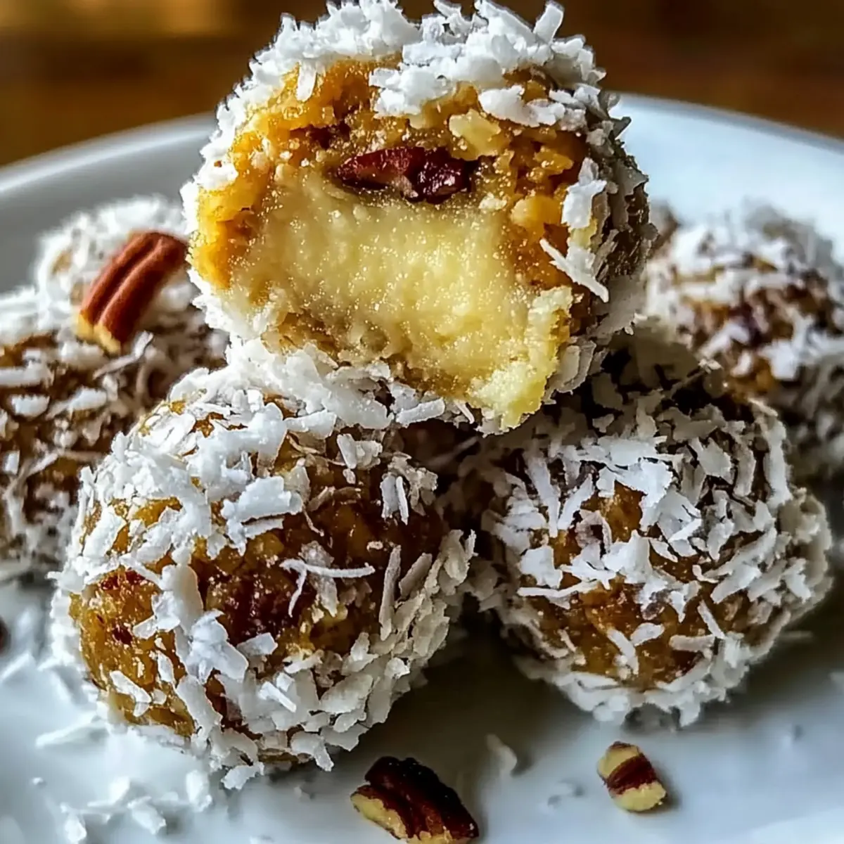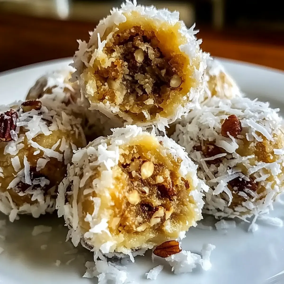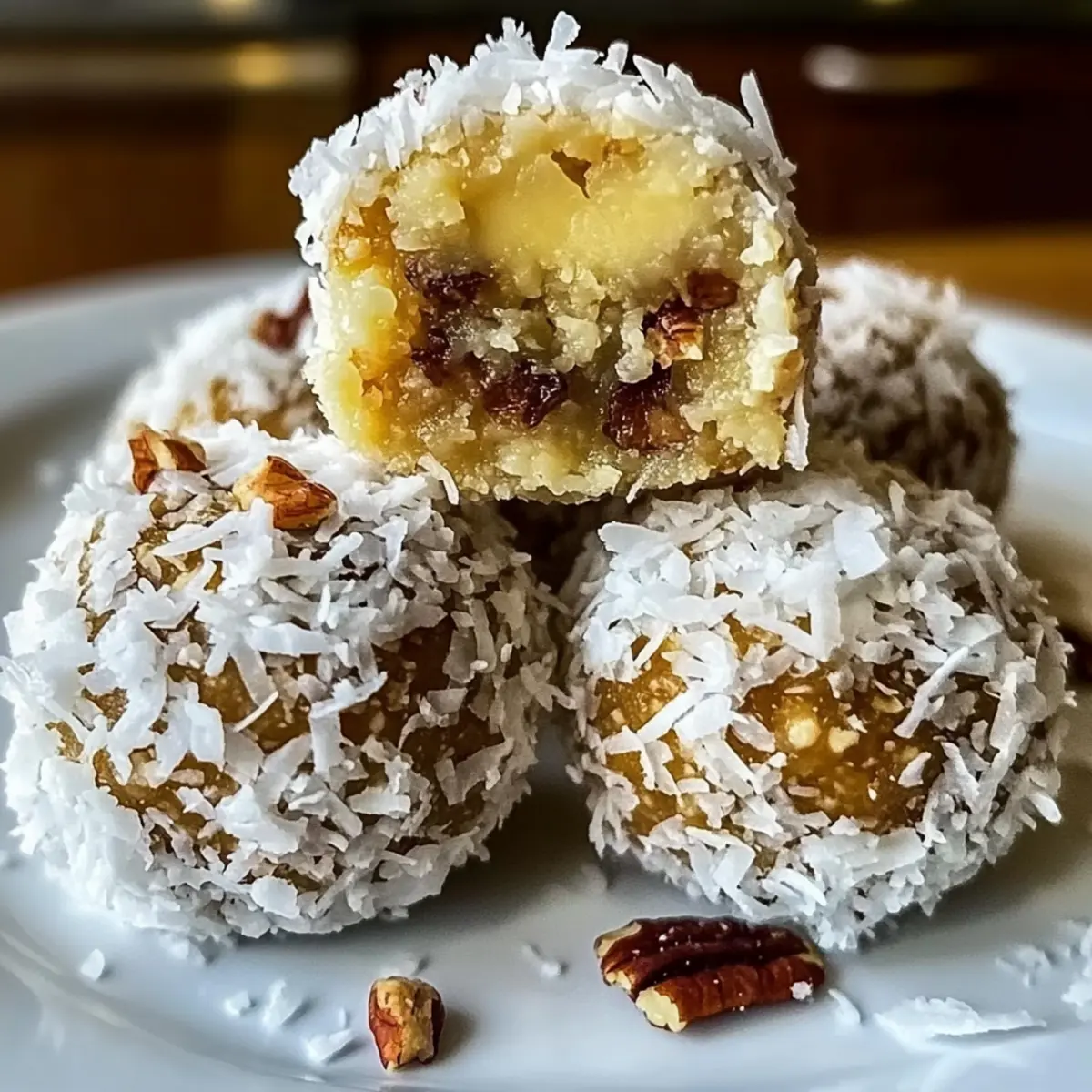 4. Roll each ball in the coconut and pecan mixture until fully coated.