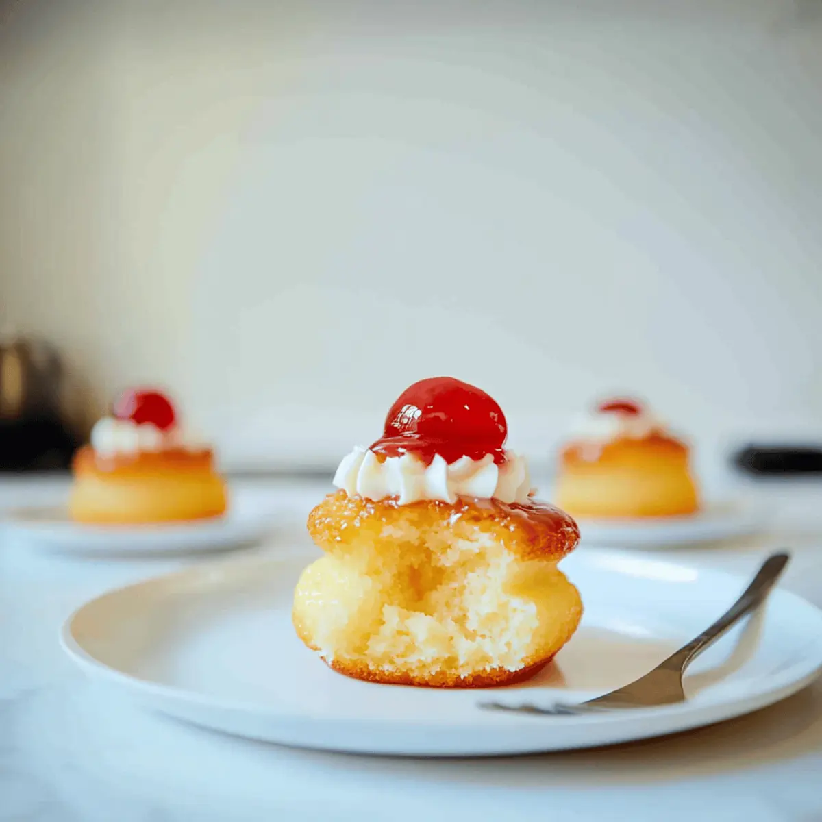Jump to Recipe Print RecipeWith the sweet scent of caramelized pineapple wafting through the kitchen, I can’t help but reminisce about the joy of bites from a classic Southern gathering. These Easy Pineapple Upside Down Cupcakes transform a beloved dessert into charming individual portions, making them the star of any celebration or potluck. Not only are they effortless to whip up, but they also bring that nostalgic flavor to the table, all while being perfectly portioned for sharing (or not!). Moist vanilla cake, topped with luscious pineapple, whipped cream, and a pop of cherry, makes each cupcake a delightful treat that’s sure to impress your guests. Ready to create some unforgettable memories with these fun mini cupcakes? Let’s dive in! Why are these cupcakes a celebration favorite? Irresistible flavors combine in these delightful mini treats, bringing the nostalgic taste of a Southern classic to life. Effortless to bake, these cupcakes are perfect for gatherings or a cozy night in. Versatile and customizable, try adding spices like cinnamon for a twist! Crowd-pleasing presentation ensures everyone will be wowed as you serve these little delights. Enjoy them alongside beverages like Melon Agua Fresca or iced coffee for a perfect pairing. Happy baking! Pineapple Upside Down Cupcakes Ingredients • • Using the right ingredients is the key to perfecting these delightful treats! For the Cupcakes Butter – Provides moisture and richness; can use margarine if needed. Sugar – Sweetens the batter; adjust to taste for personal preference. Flour – Gives structure; all-purpose or gluten-free blends work well. Pineapple Juice – Adds flavor and moisture; orange juice offers a citrus twist. Eggs – Binds ingredients for a lovely texture; substitute with aquafaba for vegan options. Brown Sugar – Enhances caramelization; white sugar can be a substitute but will alter flavor. Pineapple Rings – The signature topping; any canned or fresh variety is delicious. For the Whipped Cream Topping Heavy Whipping Cream – Vital for fluffy texture; coconut cream works for a dairy-free option. Powdered Sugar – Sweetens and stabilizes whipped cream; finely ground regular sugar will also do. Step‑by‑Step Instructions for Pineapple Upside Down Cupcakes Step 1: Preheat the Oven Begin by preheating your oven to 350°F (180°C). This ensures an even bake for your delightful Pineapple Upside Down Cupcakes. While the oven warms up, gather your ingredients and equipment, including a muffin pan, mixing bowls, and a whisk, so you’re ready for the next steps. Step 2: Prepare the Caramel Base In a mixing bowl, combine melted butter and brown sugar until smooth. Distribute this sweet mixture evenly into the wells of your cupcake pan, making a luscious base for your cupcakes. Ensure the mixture coats the bottom of each well to create that rich caramel layer when baked. Step 3: Add the Pineapple Rings Next, place a pineapple ring in each cupcake well over the caramelized sugar mixture. This will create an eye-catching top for your Pineapple Upside Down Cupcakes. Feel free to use canned or fresh pineapple, pressing them gently into the mixture to ensure they adhere well. Step 4: Mix the Cupcake Batter In a separate bowl, whisk together melted butter, granulated sugar, pineapple juice, and eggs until well combined and smooth. The mixture should have a glossy appearance, indicating that the ingredients are properly emulsified and ready to be transformed into a fluffy cupcake batter. Step 5: Incorporate the Dry Ingredients Fold in the all-purpose flour with a spatula until just incorporated into the wet mixture. Be careful not to overmix, as this can lead to dense cupcakes. The batter should be thick yet pourable and smooth, with no visible flour streaks, ensuring a soft texture for your Pineapple Upside Down Cupcakes. Step 6: Fill the Muffin Pan Gently pour the batter into the prepared muffin pan, filling each well approximately three-quarters full. This allows enough room for the cupcakes to rise beautifully while baking. Don’t worry if they seem full; the cupcakes will bloom into perfect little domes during baking. Step 7: Bake to Perfection Place the filled muffin pan in the preheated oven and bake for about 20 minutes. You’ll know they are done when the tops are golden brown and a toothpick inserted into the center comes out clean. The aroma of baked vanilla and caramelized pineapple will fill your kitchen—it’s heavenly! Step 8: Cool and Remove Once baked, remove the cupcakes from the oven and let them cool in the pan for about 10 minutes. Then, gently run a knife along the edges to help loosen them. Carefully invert the pan onto a cooling rack, allowing the cupcakes to release and cool further—this will ensure the pineapple topping remains intact. Step 9: Prepare the Whipped Cream Topping In a chilled bowl, whip the heavy cream with powdered sugar until soft peaks form. The mixture should be light and airy, perfect for topping your Pineapple Upside Down Cupcakes. This fluffy cream will contrast beautifully with the rich flavor of the pineapple and cupcake base. Step 10: Garnish and Serve Once the cupcakes are cooled, pipe the freshly whipped cream on top of each one and finish with a maraschino cherry for a pop of color and flavor. These Pineapple Upside Down Cupcakes are not only charming but also a delightful treat that bring joy to any gathering—ready to enjoy! What to Serve with Pineapple Upside Down Cupcakes Indulging in these delightful mini cupcakes opens the door to a feast of perfectly paired accompaniments that elevate your dessert experience. Vanilla Ice Cream: The creamy richness balances the tropical flavors, creating a luscious contrast that melts deliciously with each bite. Melon Agua Fresca: This refreshing drink brings a lightness to the meal, complementing the sweetness of the cupcakes while adding a fruity twist. Roasted Vegetables: Their caramelized, earthy taste pro