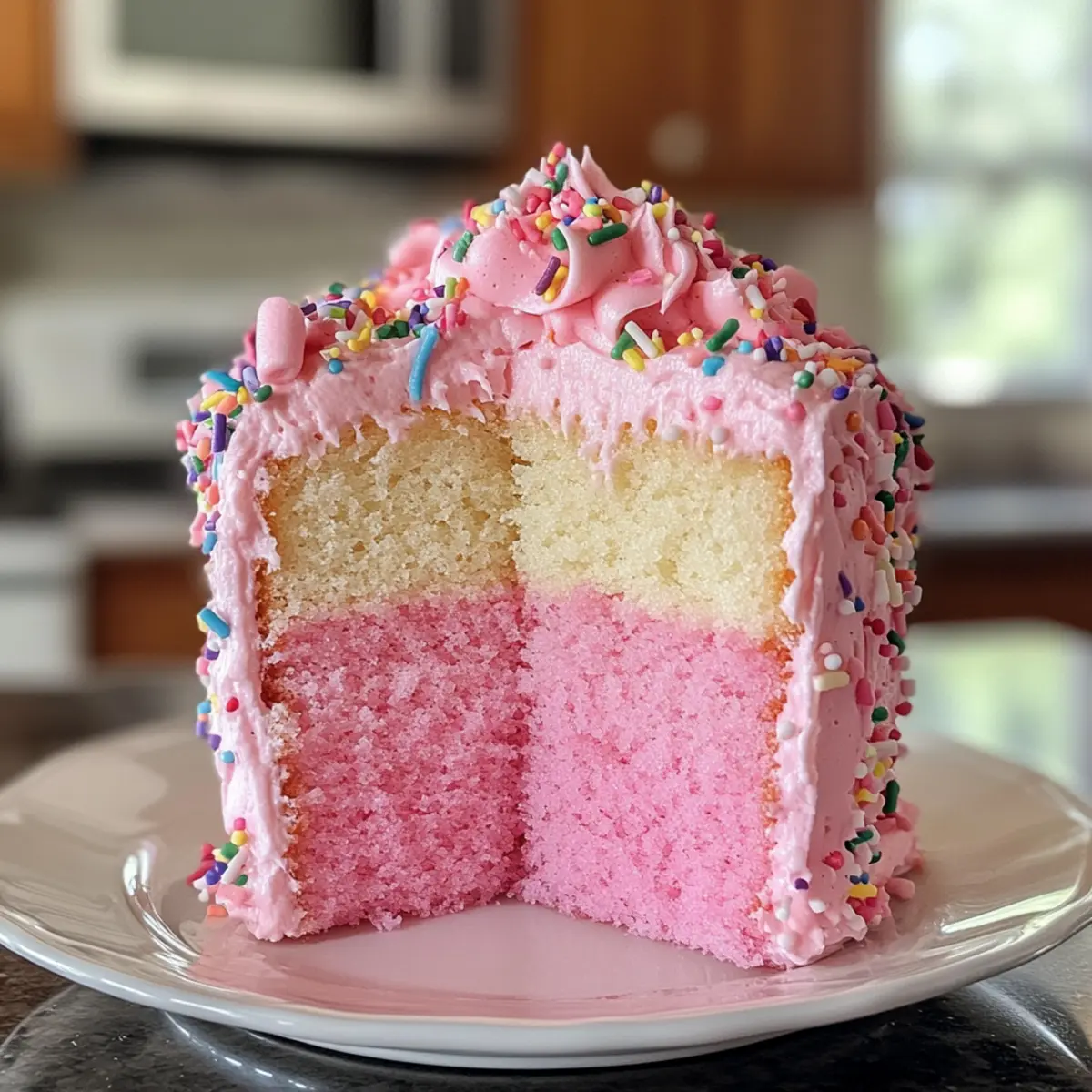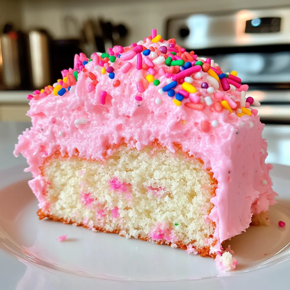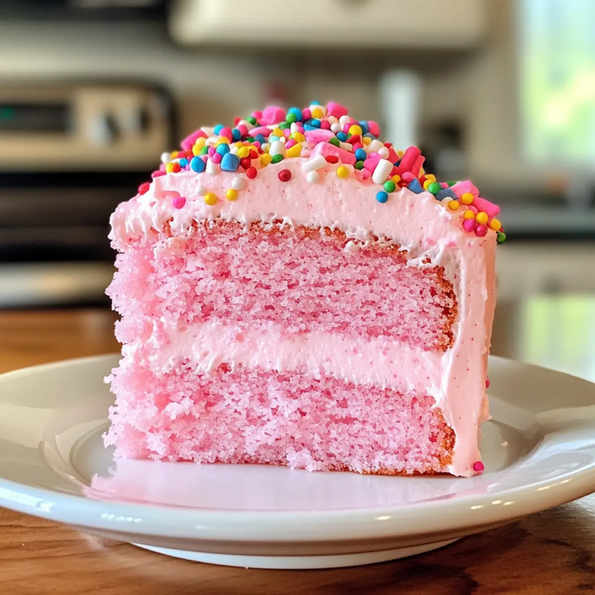Jump to Recipe Print RecipeAs I sifted through a pile of cherished recipes, I stumbled upon one that instantly evoked joyful memories of springtime celebrations: Pink Angel Food Cake. This delightful dessert captures the essence of light, airy sweetness with a blush of strawberry flavor and a charming pink hue, making it a favorite for birthdays and special occasions alike. Best of all, it’s incredibly easy to make using simple ingredients like egg whites, ensuring that your baking journey remains stress-free. Imagine bringing this eye-catching cake to your next gathering, where everyone will marvel at its beauty and delightful taste. Ready to whip up a slice of nostalgia? Let’s dive into the world of Pink Angel Food Cake together! Why is pink angel food cake special? Light and Airy Texture: This cake is made primarily with egg whites, resulting in a melt-in-your-mouth experience that’s cloud-like in texture. Celebratory Charm: The soft pink hue and strawberry flavor make it the star of any birthday party or spring gathering, giving it a festive appearance. Easy to Make: With simple steps and common ingredients, you can whip this cake up without any hassle, making it perfect for novice bakers or busy home chefs. Versatile Toppings: Customize your Pink Angel Food Cake with fresh berries, a dollop of whipped cream, or a drizzle of berry coulis for an extra touch of indulgence. Pair it with a side of Honey Cheesecake Salted to elevate your dessert spread! Nostalgia in Every Bite: Each slice is not just a treat but a delightful reminder of spring celebrations and joyful gatherings, appealing to both young and old. Pink Angel Food Cake Ingredients • A delightful combination for mouthwatering moments! For the Cake Cake Flour – Provides structure and a tender crumb; using all-purpose flour might yield a denser cake. Powdered Sugar – Adds sweetness and aids in a smooth texture; you can grind granulated sugar if needed. Salt – Enhances flavor; it’s essential for taste, so don’t skip it! Egg Whites (2 cups, about 13-14 large) – Creates volume and lightness; remember that room-temperature whites whip better. Cream of Tartar – Stabilizes egg whites, preventing collapse; it’s essential for achieving the right texture. Superfine Sugar – Sweetens and helps achieve a smooth meringue; granulated sugar can be used if blended finely. Vanilla Bean Paste (or pure vanilla extract) – Adds depth of flavor; pure vanilla extract works as a substitute. Almond Extract – Provides a lovely subtle flavor; omit it for nut allergies or substitute with more vanilla. Pink Food Coloring – A touch that enhances visual appeal; skip it for a classic angel food cake. For Pink Marshmallow Frosting Granulated Sugar – The main sweetening agent; stick with it for consistent sweetness. Light Corn Syrup – Adds shine and moisture to the frosting; honey could work but changes the flavor a bit. Dash of Salt – Enhances flavor and balances sweetness; essential for a well-rounded taste. Vanilla Bean Paste (or pure vanilla extract) – Enhances character and depth; swap out for the extract if needed. Rainbow Nonpareil Sprinkles – Adds a decorative touch; omit for a simpler presentation. Now that you have these wonderful Pink Angel Food Cake ingredients at your fingertips, you’re one step closer to creating a masterpiece that brings joy to your celebrations! Step‑by‑Step Instructions for Pink Angel Food Cake Step 1: Preheat the Oven Begin by preheating your oven to 350°F (180°C) and position the oven rack in the lower third of the oven. This ensures that the Pink Angel Food Cake will bake evenly, allowing it to rise beautifully as it cooks. While waiting for the oven to heat, gather all necessary ingredients and equipment for a seamless baking experience. Step 2: Sift Dry Ingredients In a large mixing bowl, sift together the cake flour, powdered sugar, and salt four times to achieve a light and airy texture. Sifting not only blends the ingredients well but also aerates them, promoting a fluffier cake. Set this mixture aside, ensuring you’re ready for the next step in creating your Pink Angel Food Cake. Step 3: Prepare Egg Whites Clean your mixing bowl meticulously to avoid any fat, then add the egg whites. With an electric mixer, beat the egg whites on low speed until they become frothy, which takes about 1-2 minutes. This crucial step sets the foundation for a light cake; once frothy, add the cream of tartar to stabilize the egg whites for optimal volume. Step 4: Add Sugar Gradually Begin to gradually incorporate the superfine sugar into the frothy egg whites while continuing to beat on medium speed. Continue mixing until soft peaks form, which usually takes around 3-4 minutes. At this point, your egg whites should be glossy and hold a peak when you lift the beaters, crucial for the structure of your Pink Angel Food Cake. Step 5: Flavor and Color the Mixture Once you achieve soft peaks, gently mix in the vanilla bean paste, almond extract, and just a few drops of pink food coloring. Continue to blend until these ingredients are fully incorporated. This step adds a delicious flavor and the signature pink hue to your Pink Angel Food Cake, creating a joyful baking experience. Step 6: Fold in Dry Ingredients Carefully fold the sifted flour mixture into the egg white mixture in four additions. Use a rubber spatula to gently combine, ensuring you retain the airiness of the batter. This step is critical for a fluffy textured cake; avoid vigorous stirring, as it will deflate your lovely Pink Angel Food Cake batter. Step 7: Pour Batter into Pan Gently transfer the completed batter into an ungreased angel food cake pan, smoothing the top with a spatula. Avoid greasing the pan, as the batter needs to cling to the sides for proper rising during baking. Once you’ve filled the pan evenly, you’re ready for the final baking stage. Step 8: Bake the Cake Place the cake pan in the preheated oven and bake 