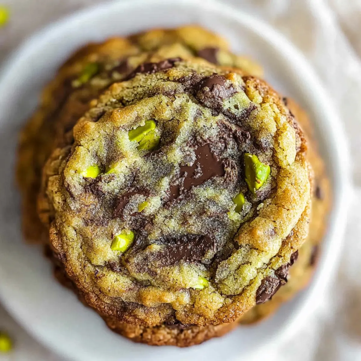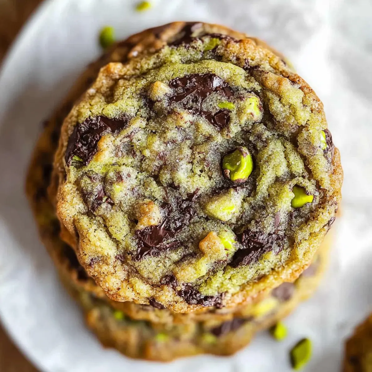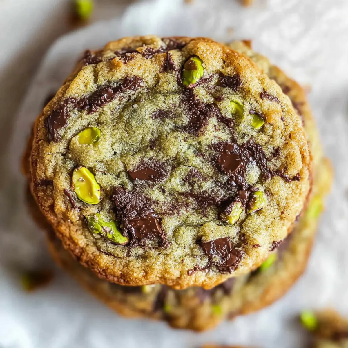 Jump to Recipe Print RecipeOne rainy afternoon, I found myself craving a sweet treat that could brighten up my day. As I rummaged through my pantry, the vibrant green of pistachios caught my eye, pairing perfectly with my stash of chocolate chunks. That’s how I stumbled upon the magic of Pistachio Chocolate Cookies. These delightful cookies are not only soft and chewy but also easy to whip up, making them an instant crowd-pleaser! Plus, they come with the wonderful benefit of being flexible—offering gluten-free and vegan options to suit any dietary preference. Trust me, once you share these cookies with friends or family, they’ll be begging for the recipe. Who knew baking could spark such joy? Are you ready to indulge in a batch of these delicious cookies? Why are these cookies so irresistible? Soft and Chewy Texture: Every bite delivers delightful chewiness and a soft center, creating a perfect cookie experience. Nutty Goodness: The crunchy pistachios add a unique flavor and texture that elevates these cookies above the ordinary. Rich Chocolate Flavor: Semi-sweet chocolate chips provide just the right amount of sweetness to balance the nuttiness. Easy to Make: With simple ingredients and straightforward steps, these cookies are perfect for both novice and seasoned bakers. Versatile Options: They can be easily customized to accommodate gluten-free or vegan diets, ensuring everyone can enjoy a treat! Crowd-Pleasing Delight: Trust me, friends and family will rave about these cookies, making them a staple at your gatherings. Enjoy them warm with a glass of milk or alongside a cup of coffee for the ultimate indulgence! Pistachio Chocolate Cookies Ingredients For the Cookie Base Green Peeled Pistachio Kernels – Adds a delicious flavor and vibrant color; raw shelled pistachios or pistachio flour work as substitutes for a twist. All-Purpose Flour – Provides essential structure; ensure to spoon and level for accuracy in your measurements. Cornstarch – Creates that wonderfully chewy texture; no specific substitutes recommended for the best results. Baking Soda – Acts as a leavening agent for a perfect lift; you can swap it with baking powder for thicker cookies if desired. Salt – Enhances all the flavors; standard table salt works well here. Unsalted Butter – Contributes richness and moisture; make sure it’s at room temperature for optimal creaming with sugars. Granulated Sugar – Sweetens the deal; mix it with light brown sugar for an ideal texture. Light Brown Sugar – Adds moisture and a subtle caramel flavor; can be replaced with granulated sugar if you’re in a bind. Egg – Acts as a binding agent; substitute with a vegan option like flaxseed for a plant-based version. Vanilla Extract – Elevates the flavor to new heights; don’t skip this ingredient! For the Mix-ins Roasted, Salted Pistachios – Adds extra crunch and flavor; chop them for better distribution throughout your cookies. Semi-Sweet Chocolate Chunks or Chips – Provides a luscious chocolate flavor; adjust the quantity based on your sweet tooth preferences. Feel free to experiment and enjoy the magic of Pistachio Chocolate Cookies! Step‑by‑Step Instructions for Pistachio Chocolate Cookies Step 1: Whisk Dry Ingredients In a medium bowl, whisk together 2 cups of all-purpose flour, 1 cup of ground pistachios, 1 teaspoon of cornstarch, 1 teaspoon of baking soda, and ½ teaspoon of salt until well combined. This step ensures that the leavening agent is evenly distributed throughout the mixture. Set this dry mixture aside while you prepare the wet ingredients for your Pistachio Chocolate Cookies. Step 2: Cream the Butters and Sugars In a large mixing bowl, beat together ½ cup of room temperature unsalted butter, ½ cup of granulated sugar, and ½ cup of light brown sugar using an electric mixer for about 2-3 minutes. The mixture should become light and fluffy, indicating it’s well blended. This creamy base adds richness to your cookies, setting the stage for delicious flavor. Step 3: Add Egg and Vanilla Next, incorporate 1 large egg and 1 teaspoon of vanilla extract into the butter-sugar mixture. Mix on low speed until fully combined, about 30 seconds. This binding agent and flavor enhancer will help achieve the chewy texture that makes these Pistachio Chocolate Cookies irresistible. The batter will appear creamy and slightly thick after mixing. Step 4: Combine Wet and Dry Ingredients Gradually add the dry mixture from Step 1 to the creamy batter, mixing until just combined. This should take about 30-60 seconds; avoid overmixing to keep the cookies soft and tender. You’ll notice the dough come together, with a few flour streaks still visible. This means it’s time to stir in the flavorful extras. Step 5: Fold in Nuts and Chocolate Using a spatula, gently fold in 1 cup of chopped roasted and salted pistachios and 1 cup of semi-sweet chocolate chunks or chips. Ensure these mix-ins are evenly distributed throughout the dough. This will give your Pistachio Chocolate Cookies that delightful crunch and sweet chocolate flavor that everyone loves. Step 6: Chill the Dough Cover the dough with plastic wrap and refrigerate for 1-2 hours. This chilling phase is crucial to firm up the dough, which prevents spreading during baking and enhances the texture. When ready, the dough should feel slightly firmer and easier to scoop, making your cookies perfectly shaped. Step 7: Preheat the Oven Preheat your oven to 350°F (175°C) while the dough chills. Line two baking sheets with parchment paper. The preheating process is essential to ensure that your cookies bake evenly and rise properly, resulting in that delightful golden edge and puffy center. Step 8: Scoop the Dough Once the oven is ready, scoop out about 16 balls of dough (approximately 2 tablespoons each) and place them on the prepared baking sheets, spaced 4 inches apart. This space allows the cookies to spread as they bake. Each scoop should be rounded and un