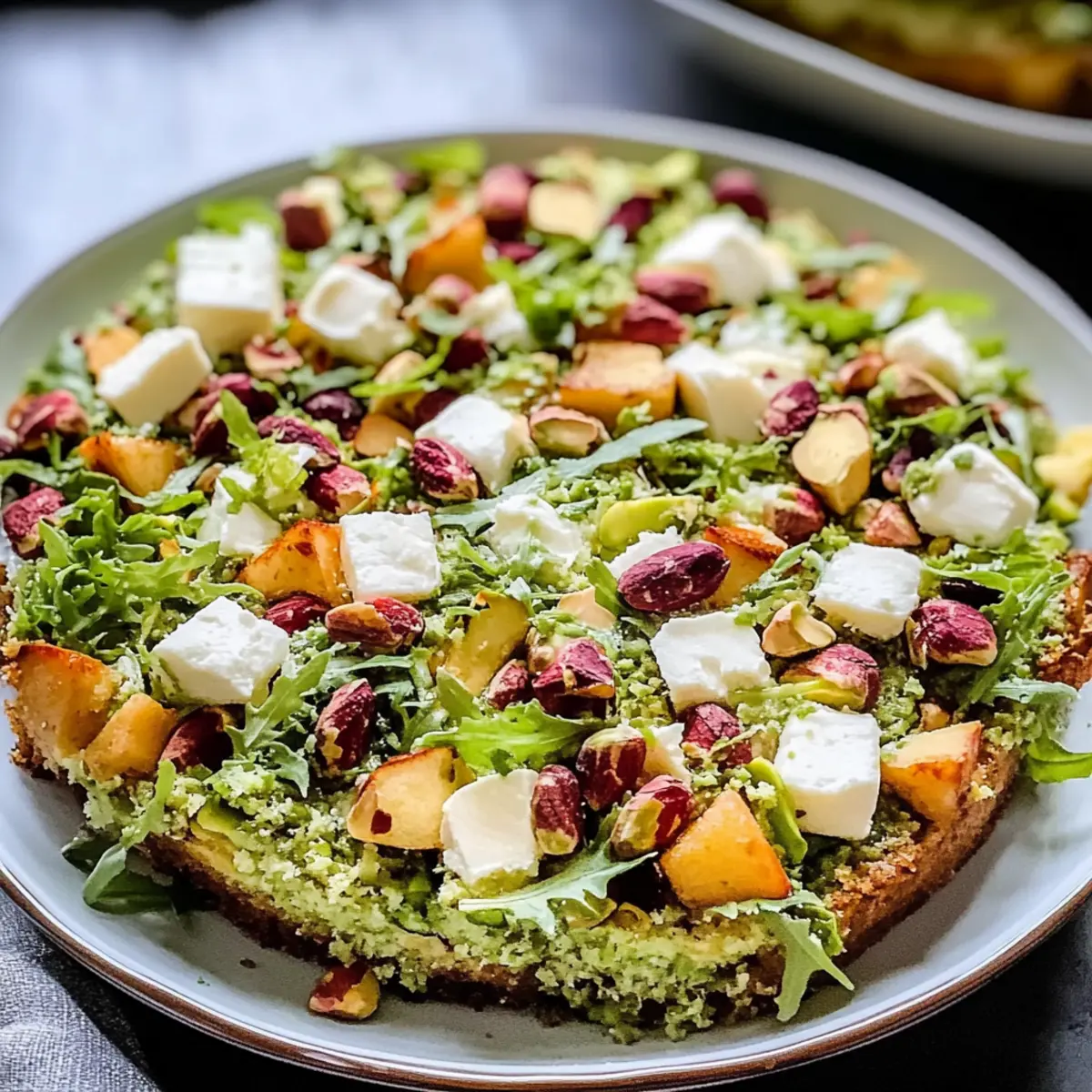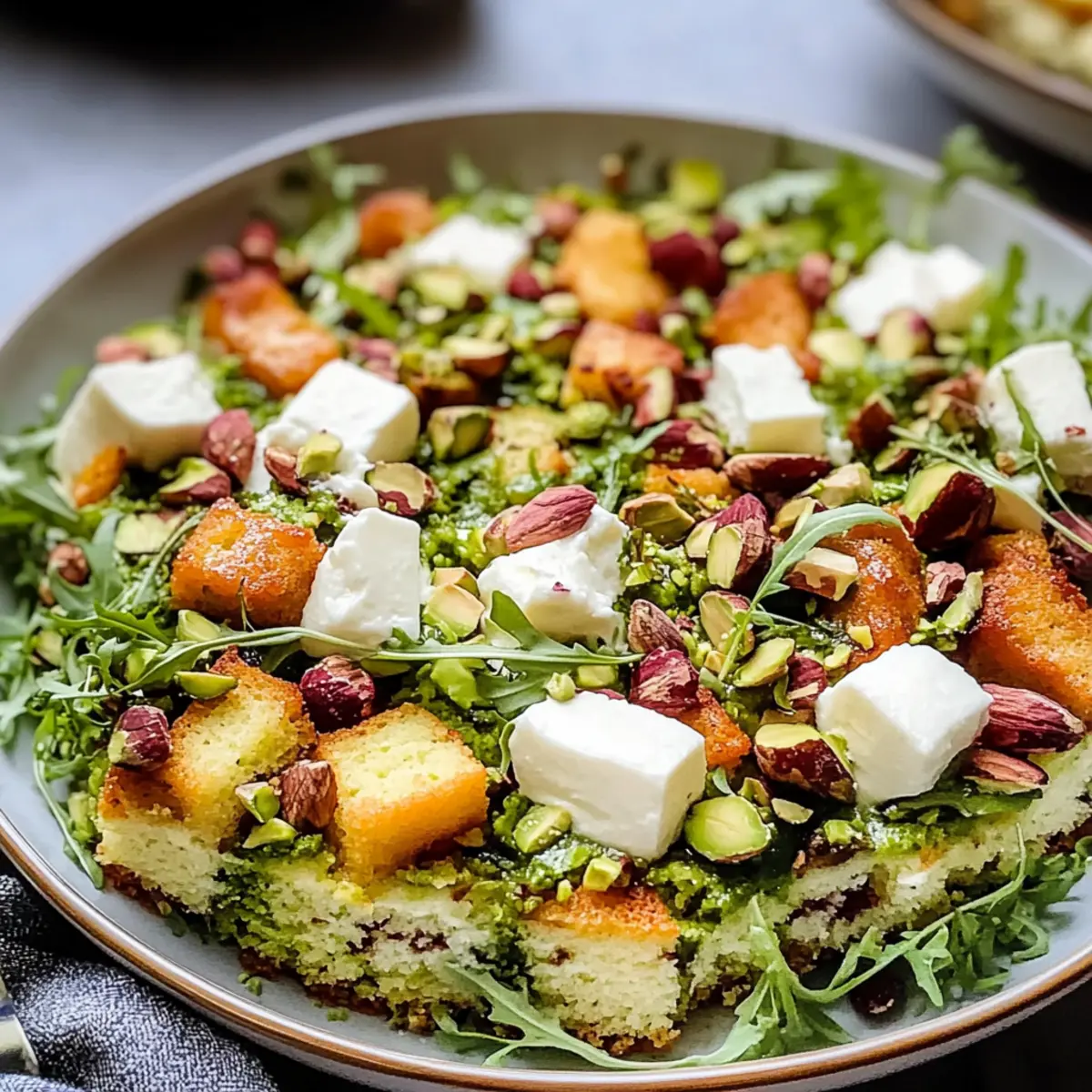 Jump to Recipe Print RecipeAs I stood in my kitchen, the scent of toasted pistachios filled the air, whisking me away to the sun-soaked shores of Italy. This Indulgent Pistachio Mascarpone Layer Cake is more than just a dessert; it’s a celebration of flavors and textures that dance beautifully on your palate. With its moist pistachio sponge and light, creamy mascarpone frosting, it offers a delightful twist on traditional cakes that keeps you coming back for more. Not only is it an eye-catching centerpiece for any gathering, but it’s also a special treat to savor during quiet moments at home. Whether you’re baking for a birthday or simply to indulge yourself, you’ll find joy in every bite. Ready to create a cake that impresses and delights? Let’s dive into this unforgettable recipe! Why Make Pistachio Mascarpone Layer Cake? Indulgence at Its Finest: This cake is the ultimate indulgence, combining rich mascarpone frosting with nutty pistachio sponge for a taste that feels luxurious. Eye-Catching Presentation: Impress your guests with its stunning layers and vibrant green pistachio topping that make it a showstopper on any dessert table. Perfect for Celebrations: Whether it’s a birthday, anniversary, or holiday gathering, this cake elevates any occasion to a delightful celebration. Versatile Enjoyment: Serve it at a festive brunch or enjoy a slice with your afternoon coffee; it’s versatile enough for any moment. Looking for more cake ideas? Check out this delicious Honey Cheesecake Salted or try the delightful Blueberry Cake Donuts for a sweet twist! Pistachio Mascarpone Layer Cake Ingredients For the Cake Layers Shelled Pistachios – Adds nutty flavor and richness; ensure they are finely ground without turning into paste. All-Purpose Flour – Provides structure to the cake layers for that perfect height. Baking Powder – Acts as a leavening agent to make the cake rise beautifully. Salt – Balances flavors and enhances sweetness for a more delightful taste. Unsalted Butter – Contributes moisture and rich flavor that makes each bite melt in your mouth. Granulated Sugar – Sweetens the cake and helps create a tender crumb for a luscious texture. Eggs – Bind the ingredients and provide lift, ensuring the cake is light and airy. Whole Milk – Adds moisture; can be substituted with a dairy alternative if needed. Vegetable Oil – Keeps the texture moist; alternatively, use melted butter for a richer taste. Vanilla Extract – Enhances the flavor profile; can be replaced with almond extract for an extra nutty kick. For the Mascarpone Cream Heavy Cream – Forms the base of the mascarpone frosting and adds a delightful richness. Mascarpone Cheese – Delivers a creamy texture; can substitute with cream cheese mixed with heavy cream in a pinch. Powdered Sugar – Sweetens and stabilizes the mascarpone cream for easy spreading and a flawless finish. Enjoy creating your Pistachio Mascarpone Layer Cake with these wonderful ingredients that promise a decadent treat! Step‑by‑Step Instructions for Pistachio Mascarpone Layer Cake Step 1: Prepare the Pistachios Start by grinding the shelled pistachios in a food processor until finely ground but not pasty. In a mixing bowl, combine the ground pistachios with all-purpose flour, baking powder, and salt, stirring until well blended. This nutty mixture will infuse the cake layers with rich flavor, setting the foundation for your Pistachio Mascarpone Layer Cake. Step 2: Cream the Butter and Sugar In a large mixing bowl, beat softened unsalted butter and granulated sugar together using an electric mixer on medium speed for about 3 minutes, until the mixture is light and fluffy. This creamy texture is essential for creating a tender crumb in your cake, ensuring each bite is moist and delicious. Step 3: Incorporate Wet Ingredients Add eggs to the butter-sugar mixture one at a time, mixing well after each addition. Then, pour in whole milk, vegetable oil, and vanilla extract, blending until smooth. The wet ingredients bring moisture and richness to your Pistachio Mascarpone Layer Cake, so ensure they are well combined for optimal texture. Step 4: Combine Mixtures Gently fold the dry pistachio mixture into the wet ingredients using a spatula, mixing until just combined. Take care not to overmix, as this can result in a dense cake. The batter should be smooth and slightly lumpy, giving a hint of the delightful pistachio flavor that awaits. Step 5: Bake the Layers Preheat your oven to 175°C (350°F) and prepare three 8-inch round baking pans by greasing them thoroughly. Divide the batter evenly among the pans and bake for 22-25 minutes, or until a toothpick inserted into the center comes out clean. Once baked, allow the layers to cool in the pans for a few minutes before transferring them to wire racks. Step 6: Make the Mascarpone Cream While the cake layers cool, whip the chilled heavy cream in a large mixing bowl until soft peaks form. Gradually add mascarpone cheese, powdered sugar, and a splash of vanilla extract, continuing to mix until the frosting is smooth and spreadable. This light and creamy mascarpone frosting will perfectly complement your cake. Step 7: Assemble the Cake Once the cake layers have completely cooled, place one layer on a serving plate. Spread a generous amount of the mascarpone cream on top, then add another cake layer and repeat. Finish by placing the final layer on top and frosting the top and sides of your Pistachio Mascarpone Layer Cake, ensuring each layer is enveloped in that heavenly cream. Step 8: Chill Before Serving Refrigerate the assembled cake for at least 2 hours to allow the flavors to meld and the frosting to set, making it easier to slice. This chilling time enhances the overall taste and texture, ensuring that the cake is refreshingly cool and delectable when served. Variations for Pistachio Mascarpone Layer Cake Feel free to play around with this delightful cake and make it your own with these 