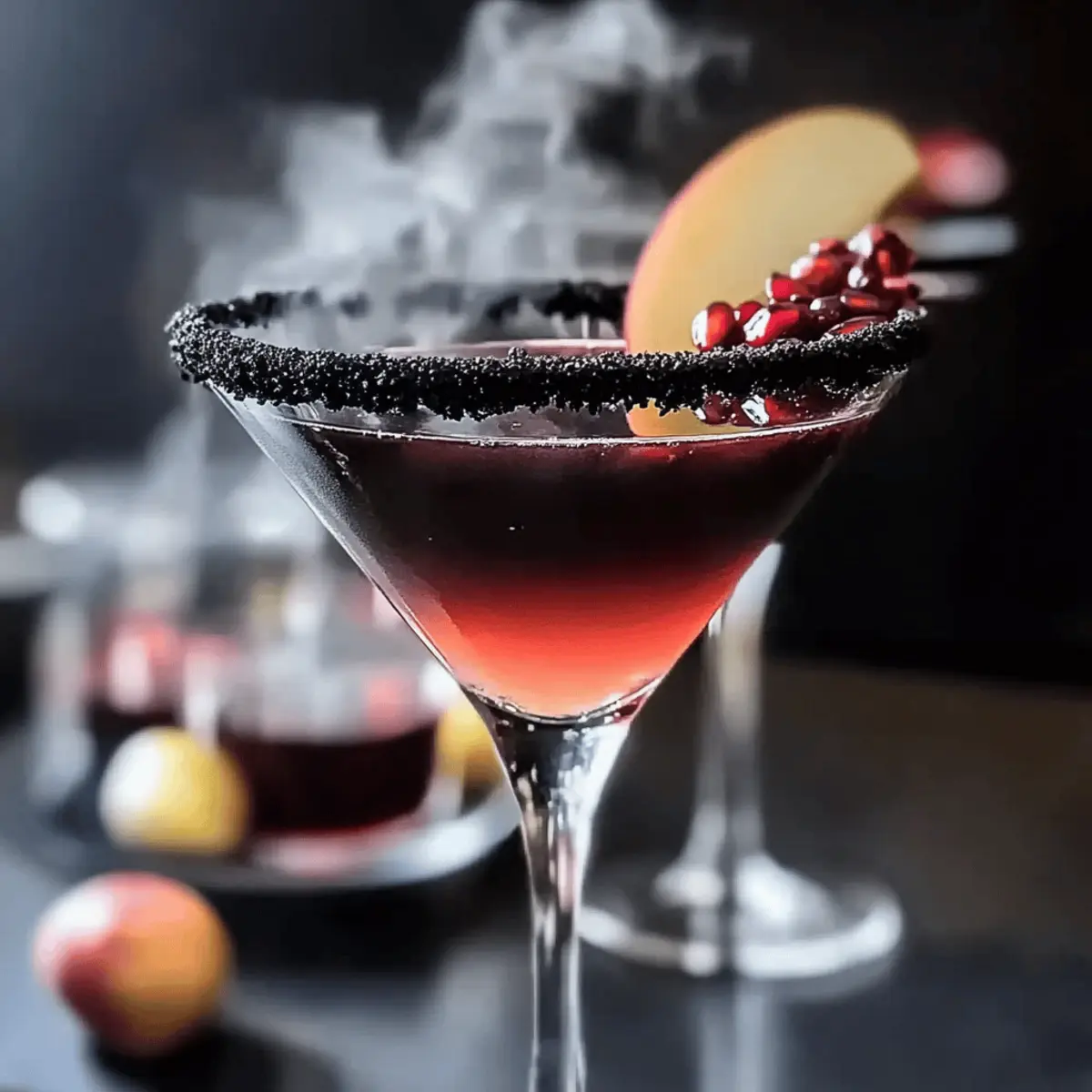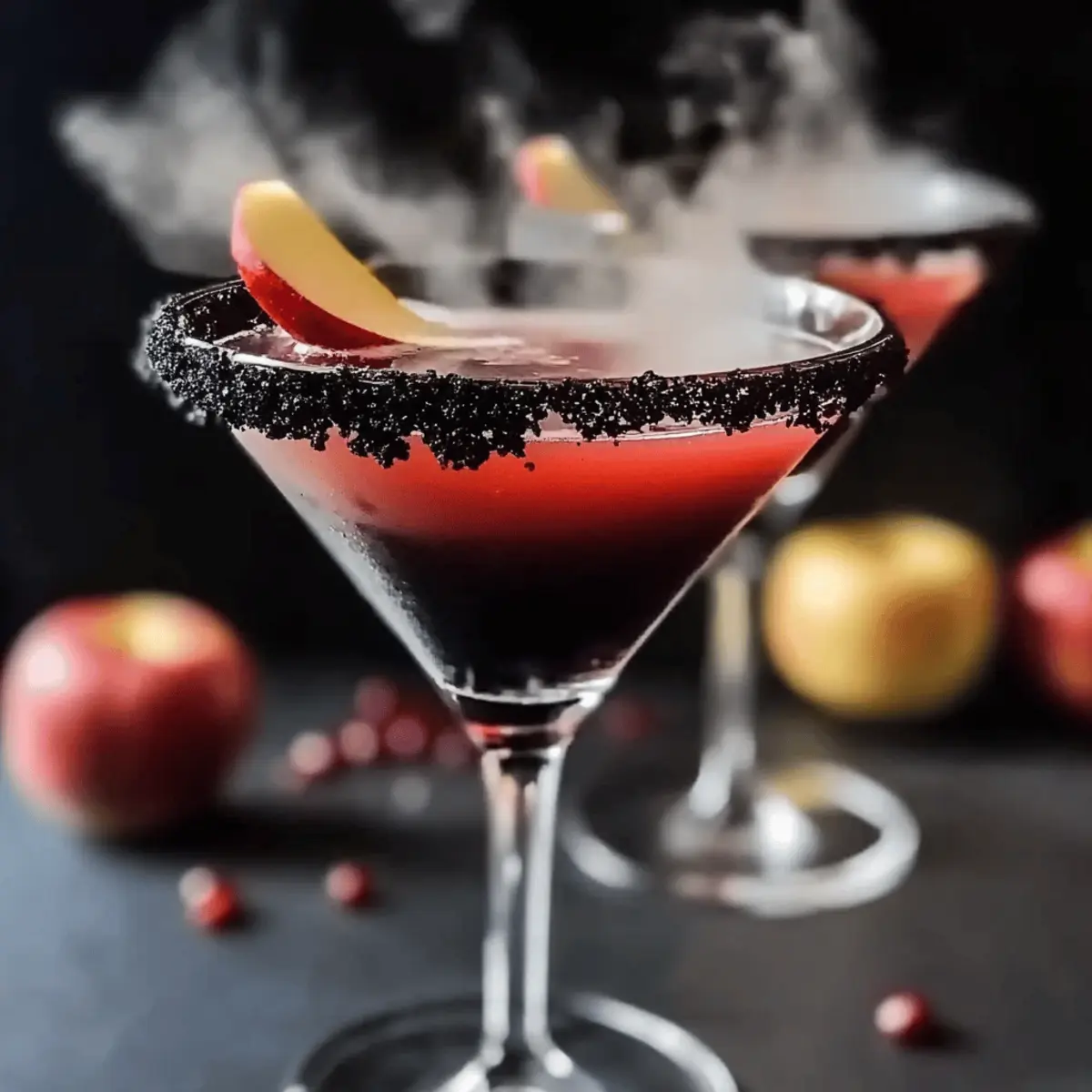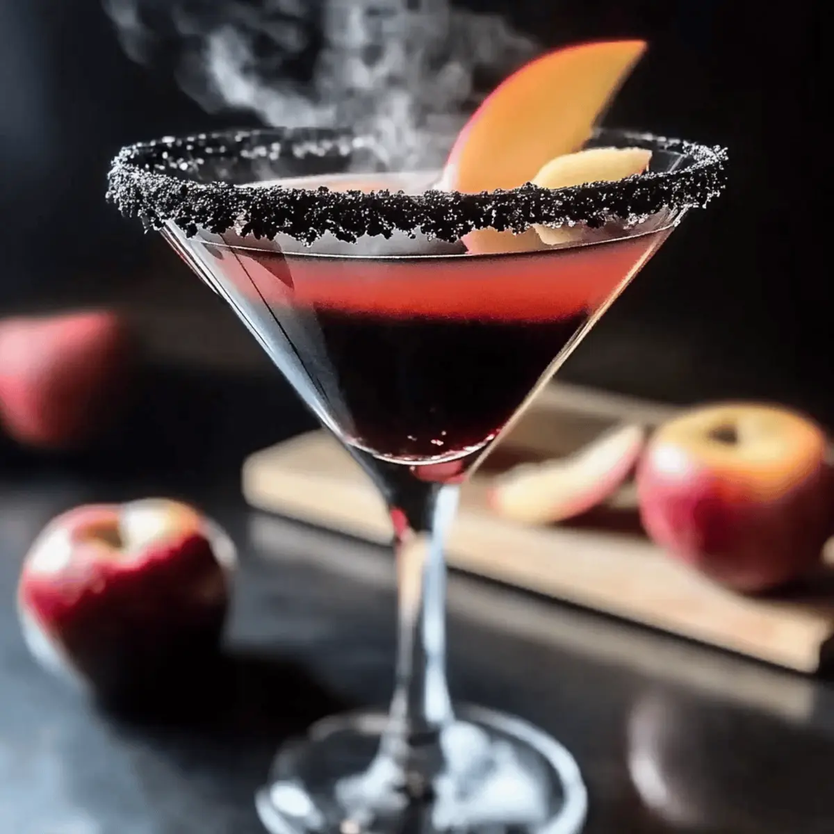 Jump to Recipe Print RecipeAs I strolled through a pumpkin patch, the crisp autumn air mixed with the scent of fallen leaves sparked an idea for a Halloween gathering. The drink that quickly came to mind was the irresistible Poison Apple Martini—a cocktail that’s not only a feast for the eyes but also a delightful blend of flavors. With rich apple cider meeting vibrant pomegranate juice and a splash of vodka, this spooky drink is bound to impress your guests while keeping you away from the fast-food rut. Its eye-catching dark hue, enhanced with activated charcoal or black food dye, adds a fun twist to your Halloween festivities. Whether you’re hosting a haunted soirée or simply treating yourself, this Poison Apple Martini is the perfect treat to elevate your spirits. Ready to stir up some magic in your glass? Let’s dive into how to create this bewitching concoction! Why is this cocktail a Halloween favorite? Visual Appeal: The Poison Apple Martini boasts a stunning dark hue that immediately sets the mood for a spooky celebration. Flavor Fusion: The blend of sweet apple cider and tart pomegranate juice creates a refreshing taste that captivates the palate. Easy to Make: With just a few ingredients and simple steps, you can whip up this bewitching drink in no time, perfect for busy hosts. Crowd-Pleasing: This cocktail is sure to impress your guests, making it a fantastic addition to any Halloween gathering or festive fun. Make it Yours: Feel free to explore variations, like using spiced cider for a cozy twist! Chilling Effect: Adding dry ice not only enhances the presentation but also creates a fun, mysterious vibe that everyone will love. Poison Apple Martini Ingredients • All you’ll need for a spellbinding drink! For the Glass Rim Black lava salt or coarse black sugar – This adds a spooky touch when rimming your glass; if you can’t find black lava salt, coarse black sugar works beautifully too. For the Cocktail Apple cider – It provides a natural sweetness and serves as a fruity base that brightens your Poison Apple Martini. Pomegranate juice – This adds a tart contrast and enhances the captivating color of your drink. Lemon juice – A splash of lemon juice brings brightness and balances the sweetness, giving it that fresh zing! Vodka or apple vodka – The base spirit for our potion; apple vodka intensifies the apple flavor for a delightful twist. Activated charcoal (optional) – Adds dark coloring to your cocktail; can be substituted with black food dye if preferred. Dry ice (optional) – Creates a spooky effect for your drink; just remember to handle with caution and ensure it’s fully dissolved before serving! Step‑by‑Step Instructions for Poison Apple Martini Step 1: Prepare the Glass Begin by rimming your martini glass to enhance the spooky theme of your Poison Apple Martini. Moisten the rim with a lemon wedge, allowing the juices to coat evenly. Next, dip the rim into black lava salt or coarse black sugar, ensuring an even layer of this striking ingredient for a dramatic look. Set the glass aside to dry. Step 2: Chill the Equipment Grab a cocktail shaker and fill it halfway with ice cubes. The ice will help chill the ingredients and create that refreshing sensation once mixed. Additionally, it’s a great idea to chill your martini glass in the freezer for about 10–15 minutes beforehand, ensuring your cocktail stays nice and cold when served. Step 3: Combine the Ingredients Once your shaker is chilled, add in the key components for your Poison Apple Martini. Pour in fresh apple cider, vibrant pomegranate juice, and a splash of lemon juice for a tangy twist. Then, add the vodka or apple vodka to elevate the apple flavor. If you desire a darker hue, incorporate activated charcoal at this stage. Step 4: Shake Vigorously Secure the cap on your cocktail shaker and shake vigorously for about 15–20 seconds. This action not only blends all the ingredients thoroughly but also chills them to the perfect temperature. When finished, your mixture should be well-combined and slightly frosty to the touch from the ice. Step 5: Strain into the Glass Remove your chilled martini glass from the freezer and secure your cocktail shaker lid once more. Using a fine mesh strainer, pour the combination into the glass, allowing the vivid mixture to flow gracefully and beautifully into the glass. The dark hue will create an enchanting look, ideal for Halloween festivities. Step 6: Add the Spooky Touch For a truly captivating presentation, add a small piece of dry ice to your Poison Apple Martini before serving. As it begins to fizz and bubble, it will create an eerie mist around the drink, enhancing its spooky appeal. Just be sure to ensure that the dry ice is fully dissolved before anyone takes a sip to ensure safety! Poison Apple Martini Variations Get ready to shake things up—these variations will delight your taste buds and add a unique twist to your Halloween celebrations! Spiced Cider: Swap apple cider for spiced cider to warm up your drink with comforting fall flavors like cinnamon and nutmeg. Imagine sipping on an autumnal hug in a glass, perfect for cozy gatherings. Flavored Vodka: Experiment with flavored vodkas such as caramel or cinnamon for a delightful kick. The magic of flavored vodkas can take your Poison Apple Martini to new heights, making it a crowd-pleaser at your spooky soirée! Ginger Twist: Incorporate ginger beer instead of soda for a fizzy spin with a spicy bite. This adds a zing to your drink, making it even more refreshing and perfect for those who enjoy a little heat with their sweetness. Mocktail Version: Create a non-alcoholic version using sparkling cider instead of vodka. This is ideal for designated drivers and younger party-goers, allowing everyone to partake in the festive fun! Chilled Fruit Garnish: Enhance the visual appeal by adding frozen blackberries or cherries instead of dry ice for a chilling effect without the fuss. These fruits n