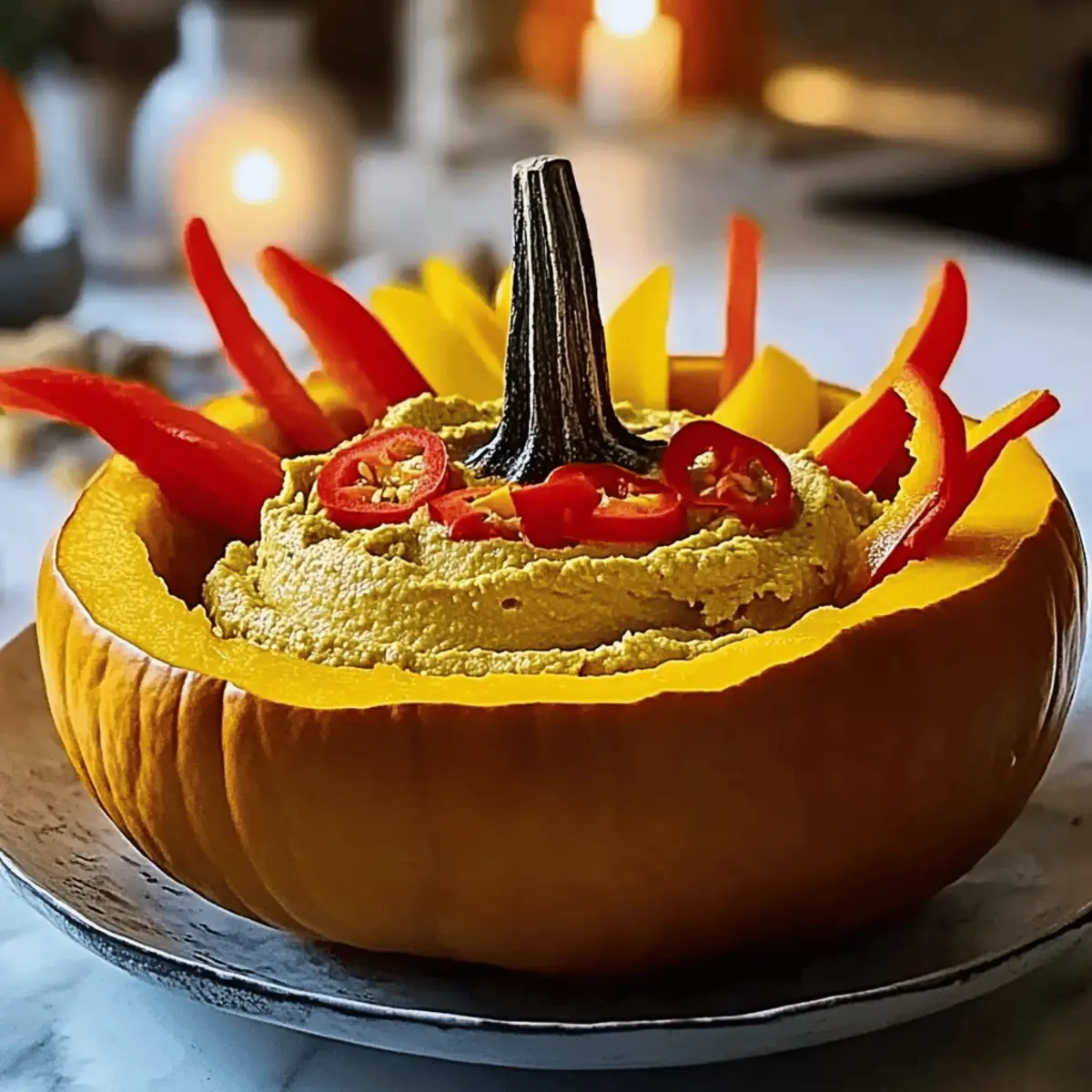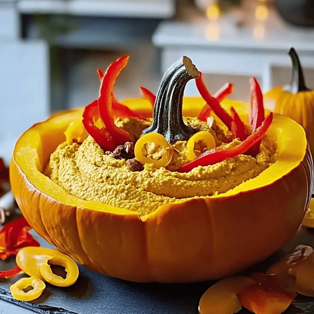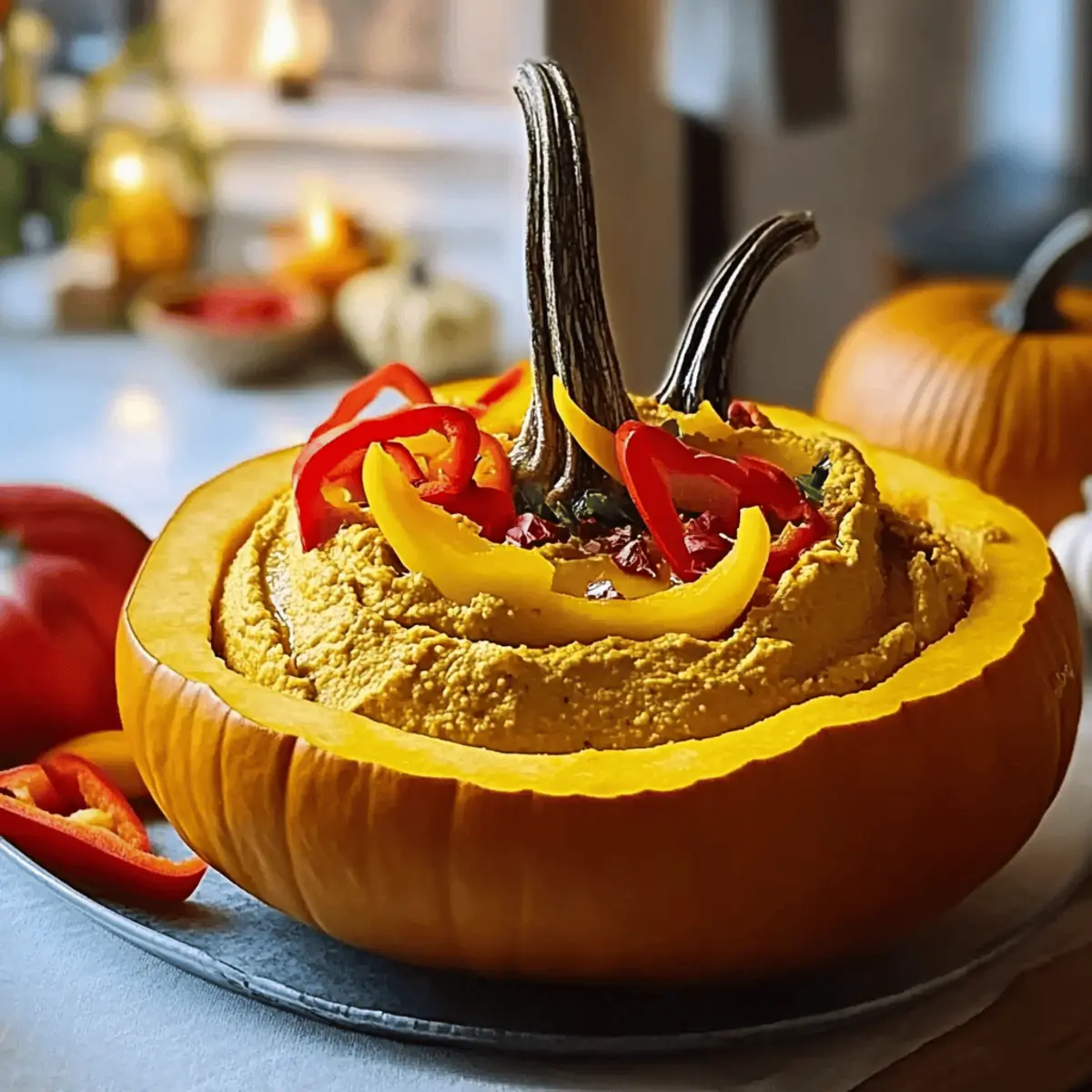 Jump to Recipe Print RecipeAs the autumn leaves swirl around us, I find myself longing for cozy flavors that evoke memories of harvest gatherings. This creamy pumpkin hummus is my go-to recipe for not just Halloween parties but any fall occasion, bringing warmth and a festive spirit to the table. What I love most about this pumpkin hummus is how incredibly easy it is to whip up—even for home chefs short on time. Plus, it’s vegan and gluten-free, making it a delightful crowd-pleaser that suits every dietary need. Picture dipping crusty breadsticks or colorful veggies into this luscious blend of roasted pumpkin, garlic, and tahini. Ready to impress your friends and family with something truly special? Let’s dive into this seasonal twist on a classic favorite! Why is Pumpkin Hummus a Must-Try? Creamy Texture: The blend of roasted pumpkin and tahini creates a velvety dip that’s perfect for spreading or scooping. Simple Preparation: This recipe is quick to whip up, making it an ideal choice for busy home cooks or aspiring chefs. Flavorful Twist: Earthy pumpkin mixed with zesty lemon and sweet garlic offers a unique and delicious change from traditional hummus. Versatile Serving Options: Pair with crunchy veggies, pita chips, or even use as a sandwich spread—your possibilities are endless! Diet-Friendly: Fully vegan and gluten-free, this pumpkin hummus caters to diverse dietary preferences, ensuring everyone at your gathering can enjoy. Make sure to check out my tips on how to serve colorful veggies that perfectly complement this festive dip! Pumpkin Hummus Ingredients For the Hummus Base Small Pumpkin (about 500g) – This is the star of your pumpkin hummus, providing that rich, earthy flavor; you can substitute with butternut squash if pumpkin isn’t available. Olive Oil – A drizzle adds creaminess and depth; opt for high-quality oil while roasting for the best results. Garlic Cloves (2, peeled) – Roasted garlic gives a sweet, mellow flavor and complements the pumpkin beautifully. Lemon Juice (½ lemon, juiced) – The acidity from lemon brightens the dip, balancing the richness of the pumpkin; feel free to adjust based on your taste preference. Tahini Paste (2 tbsp) – This nutty paste adds creaminess and flavor; use sunflower seed butter for a nut-free alternative. For the Protein Lift Chickpeas (400g can, drained) – Packed with protein, they make your pumpkin hummus filling and satisfying; rinsing them well enhances the flavor. For Dipping Red and Yellow Peppers (1 of each, deseeded and sliced) – These vibrant veggies provide a sweet crunch that pairs wonderfully; swap for cucumbers or carrot sticks for variety. Mini Breadsticks & Pitta Chips – These are ideal for scooping up your creamy pumpkin hummus, or try any crispy bread for dipping to add a delightful texture. Enjoy your pumpkin hummus at your next gathering and let its warmth and flavor dazzle your guests! Step‑by‑Step Instructions for Pumpkin Hummus Step 1: Prepare the Pumpkin Begin by cutting the top off the pumpkin about two-thirds up, creating a lid. Scoop out the seeds and stringy flesh with a sturdy spoon, setting it aside for roasting later. Ensure you maintain the outer shell intact, as it will serve as a charming serving bowl for your pumpkin hummus. Step 2: Roast Preheat your oven to 200°C (180°C fan) or gas mark 6. Cut the pumpkin flesh into small cubes and place them in a roasting tin along with the peeled garlic cloves. Drizzle with olive oil and season lightly with salt. Roast for about 45 minutes, or until the pumpkin is tender and lightly caramelized, then let it cool slightly for blending. Step 3: Blend Once the roasted pumpkin and garlic have cooled, transfer them to a food processor. Add in the lemon juice, tahini, and drained chickpeas. Blend until smooth, scraping down the sides as needed. If the mixture seems too thick, drizzle in a bit more olive oil for a creamier consistency that will elevate the flavor of your pumpkin hummus. Step 4: Serve Spoon the creamy pumpkin hummus back into the hollowed-out pumpkin shell for a festive presentation. Garnish with freshly sliced red and yellow peppers arranged on top, creating a colorful contrast. Serve with a selection of mini breadsticks and pitta chips, inviting everyone to scoop into this delightful autumn-inspired dish. What to Serve with Creamy Pumpkin Hummus? The perfect meal deserves delightful companions that amplify its flavors and textures, creating a feast for all senses. Crunchy Veggie Platter: Bright bell peppers, carrots, and cucumbers add refreshing crispness, balancing the creamy pumpkin hummus perfectly. Savory Pita Chips: These flaky, crisp bites offer a satisfying crunch and pair beautifully with the rich and velvety texture of the hummus. Roasted Chickpeas: Seasoned and roasted for extra crunch, they mirror the chickpeas in the hummus, enhancing the overall protein-packed goodness. Warm Mini Breadsticks: Soft and inviting, these are perfect for scooping up pumpkin hummus, bringing a touch of warmth to every bite. Flavored Sparkling Water: A refreshing choice, its bubbles cleanse the palate while the subtle flavors enhance the autumn-themed meal. Apple Slices with Cinnamon: Sweet and slightly tart, these complement the earthy pumpkin by adding a lovely, seasonal twist to your spread. Dark Chocolate Dipped Pretzels: For a sweet finish, crunchy pretzels draped in rich dark chocolate offer a delightful contrast to the savory dip. Pumpkin Hummus Variations & Substitutions Transforming your pumpkin hummus is simple and fun! Here are some delightful ideas to personalize your dish and savor every bite. Butternut Squash: Swap out pumpkin for butternut squash for a sweeter and creamier alternative. It’s just as festive! Sunflower Seed Butter: If you’re looking for a nut-free option, substituting tahini with sunflower seed butter brings delicious creaminess without the nuts. Spice It Up: Add a pinch of cumin or smoked paprika 