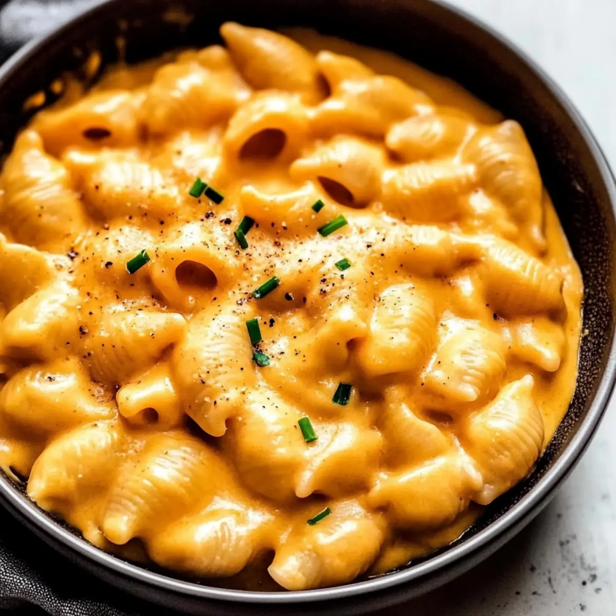 Enjoy a warm bowl of creamy pumpkin mac and cheese, the perfect comfort food for fall nights.