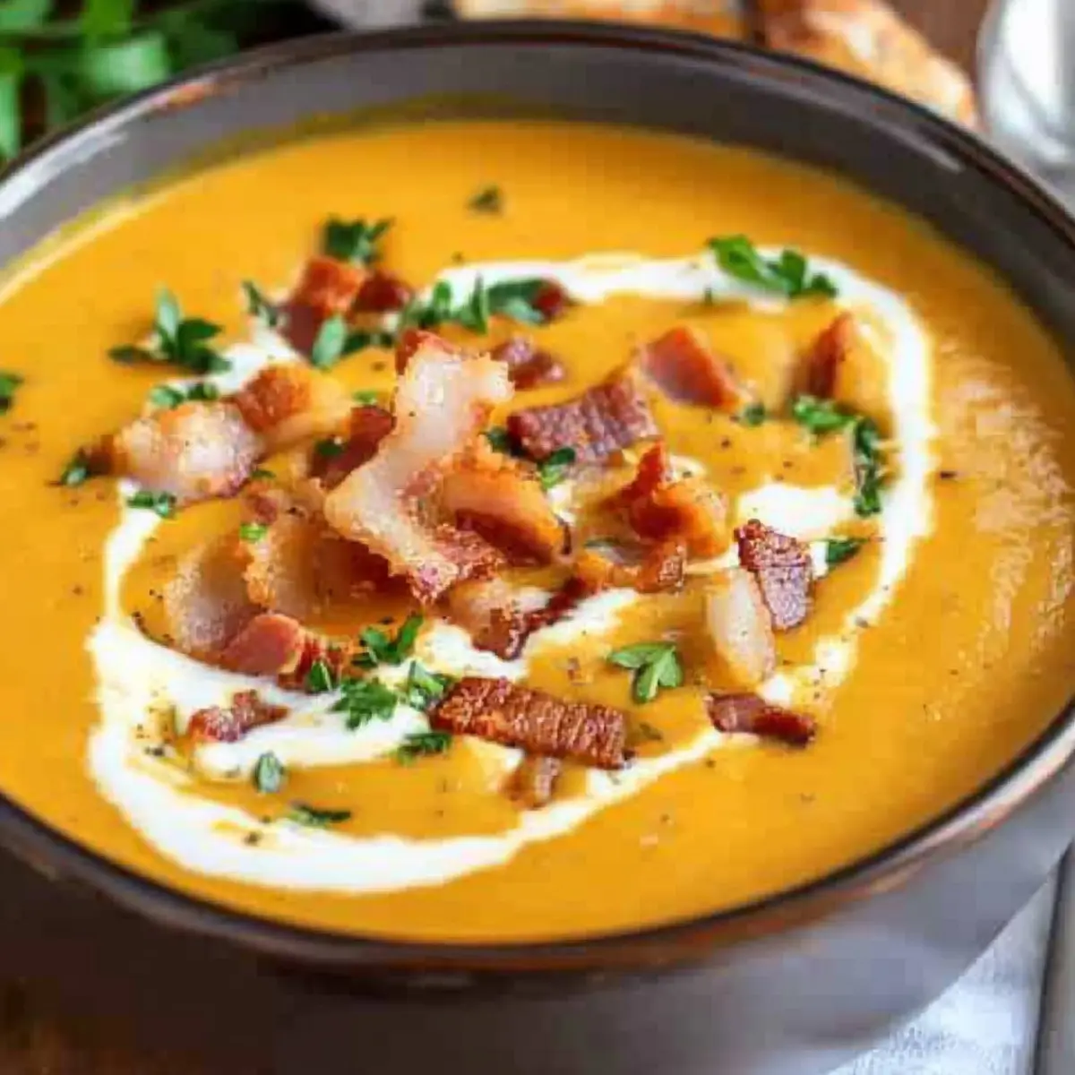 Rich Flavor Profile: The combination of pumpkin, spices, and crispy bacon results in a delightful depth of flavor that urges you to savor each spoonful.
