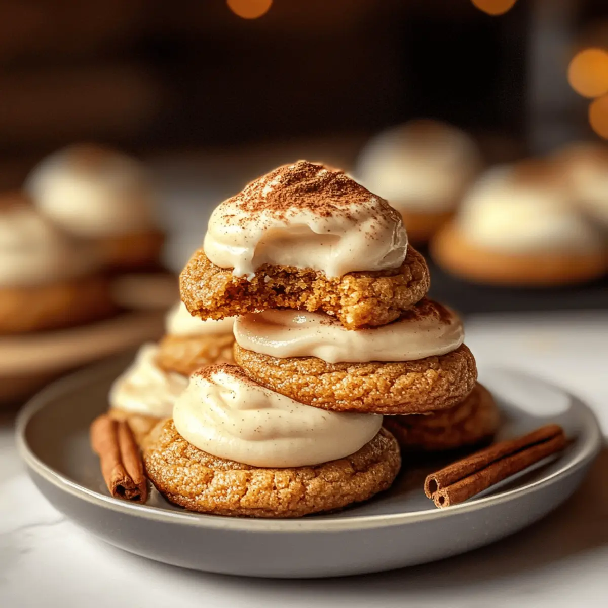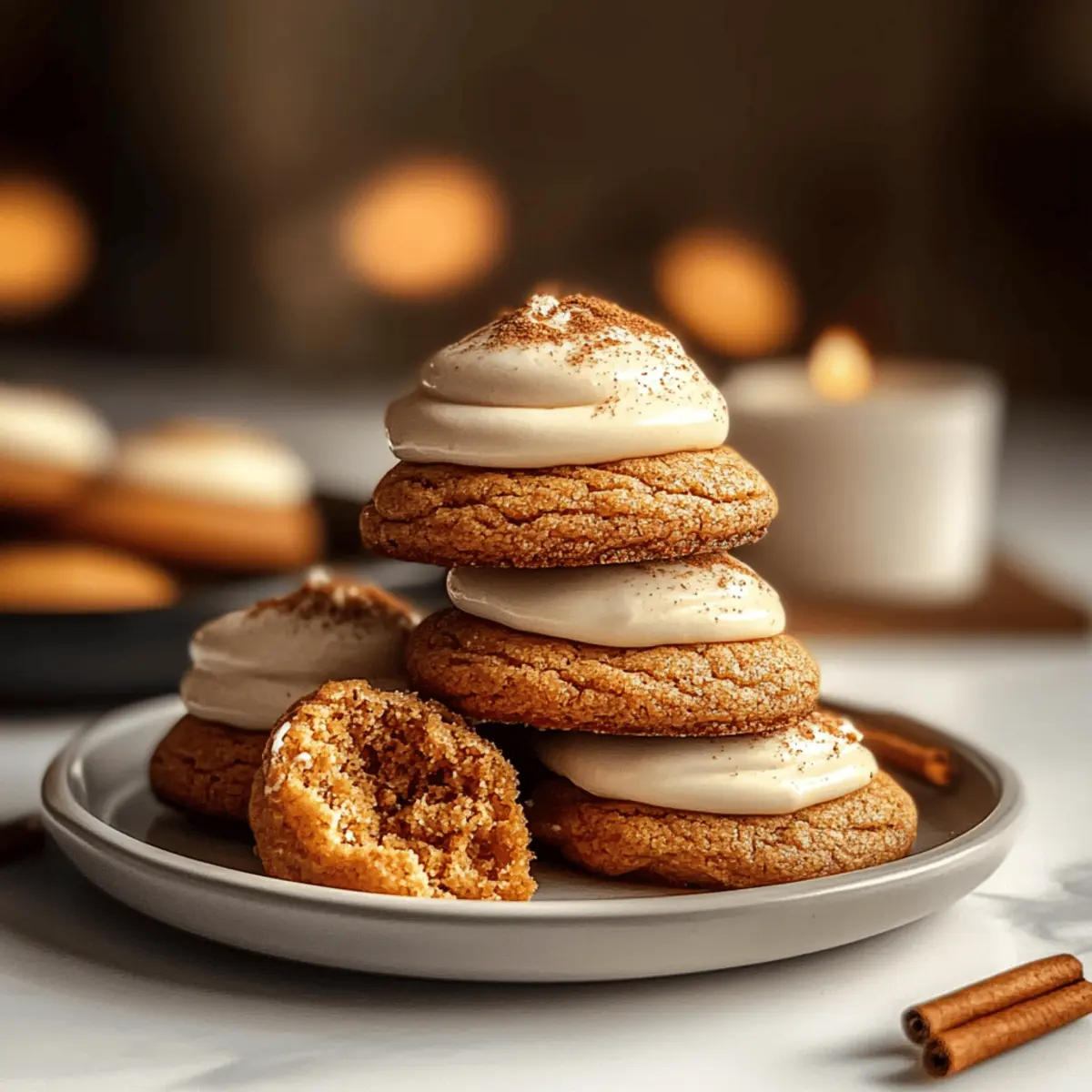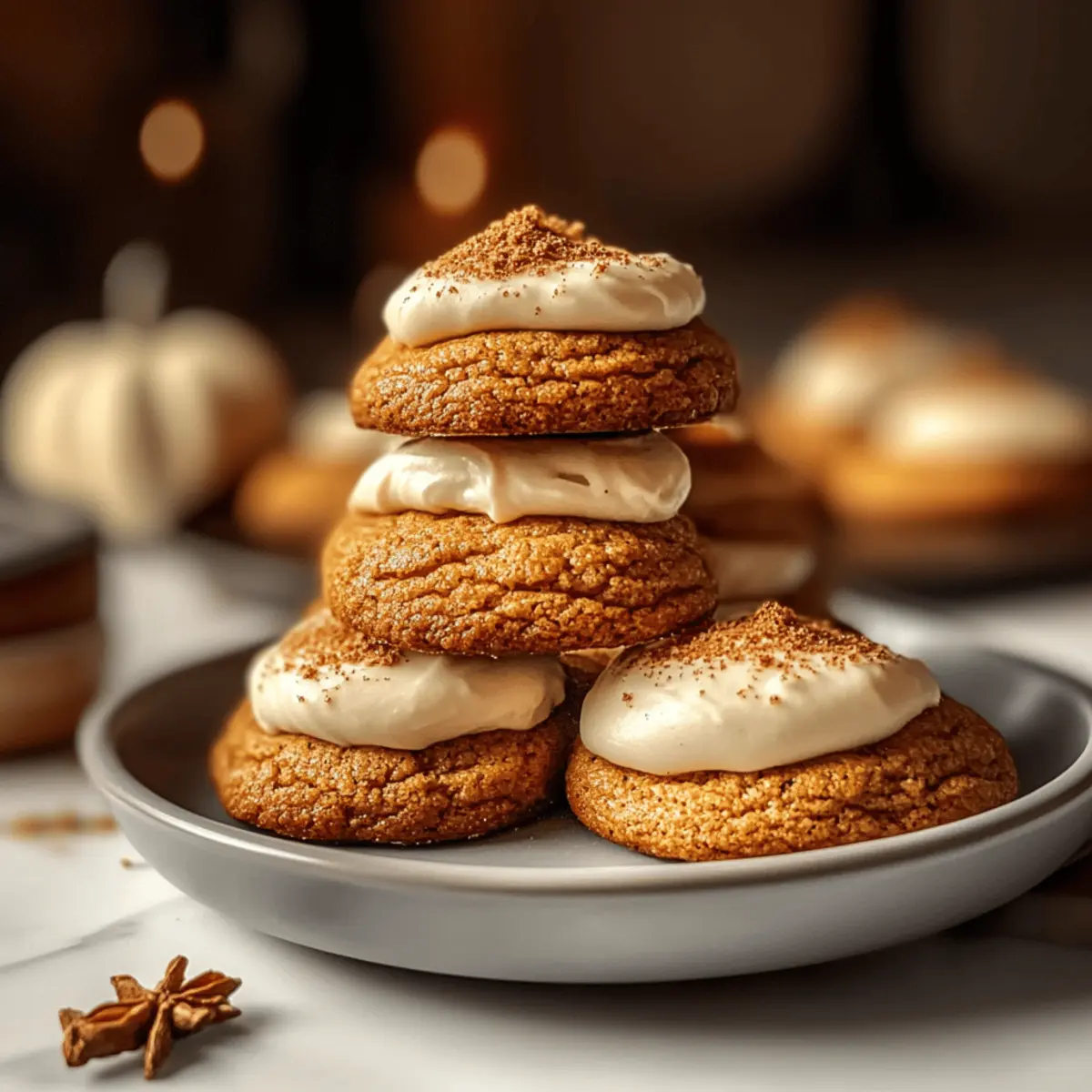 Delight in these Pumpkin Spice Cookies with a Cream Cheese Frosting, featuring warm flavors and a melt-in-your-mouth texture.