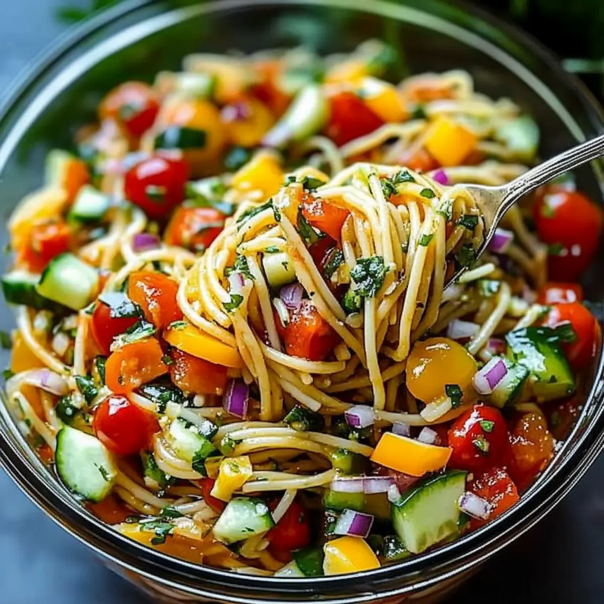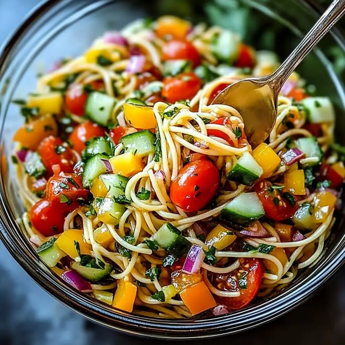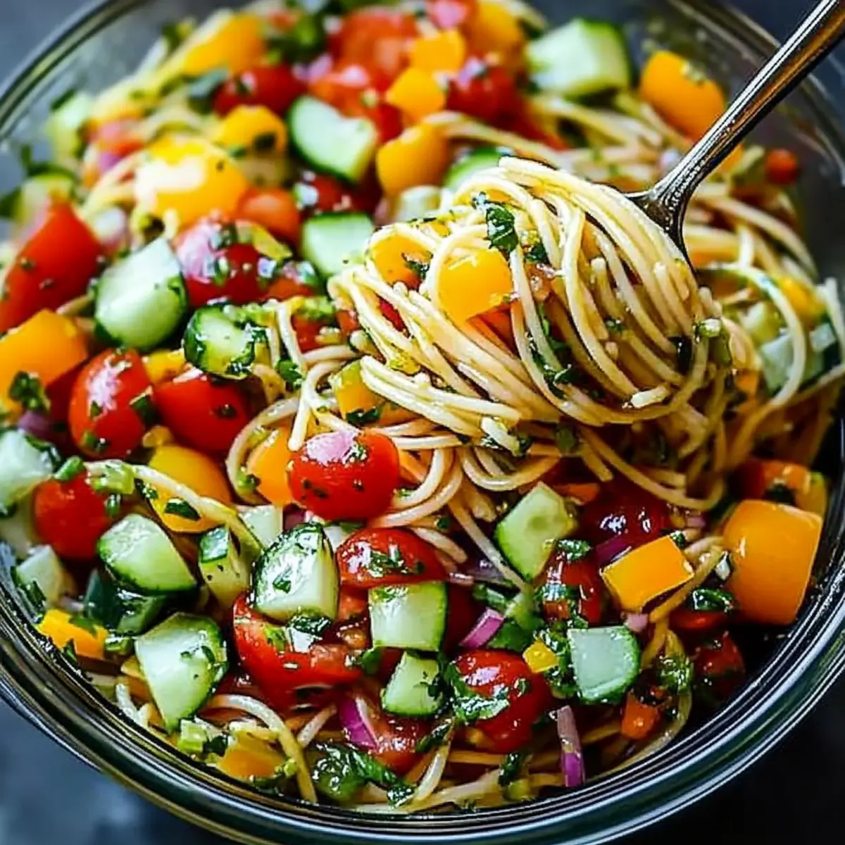 Jump to Recipe Print RecipeAs I tossed a handful of vibrant cherry tomatoes into a bowl, a wave of nostalgia washed over me—reminding me of carefree summer picnics and sun-kissed gatherings. This Quick Vegetarian Spaghetti Salad with Italian Dressing isn’t just a dish; it’s a celebration of fresh, crisp vegetables and hearty al dente pasta that can elevate any meal. With its easy prep and customizable nature, this salad is perfect for those hectic weekdays or spontaneous gatherings with friends. You can mix and match your favorite ingredients, ensuring everyone leaves with a smile. So, as we dive into this refreshing recipe, what colorful twist will you add to personalize it? Why Is This Spaghetti Salad Special? Simplicity reigns in this recipe, making it an effortless choice for busy days. Fresh flavors burst through each bite, with crunchy veggies complemented by zesty Italian dressing. Versatility is key; customize it by adding your favorite ingredients like grilled tofu or chickpeas for protein. Crowd-pleasing appeal assures that it’s perfect for picnics or family gatherings. Plus, this Quick Spaghetti Salad With Italian Dressing pairs wonderfully with side options like a refreshing Cucumber Shrimp Salad. Enjoy preparing a dish that brings joy and satisfaction to everyone at the table! Quick Spaghetti Salad With Italian Dressing Ingredients For the Salad Spaghetti – The base of the salad; feel free to use any type of pasta, including gluten-free options. Cherry Tomatoes – Adds both sweetness and vibrant color; if not available, use diced regular tomatoes instead. Cucumber – Contributes a refreshing crunch; zucchini is a great substitute if you want a similar texture. Green Bell Pepper – Offers a mild flavor and crispy texture; any color of bell pepper can work in its place. Red Bell Pepper – Brings sweetness and a pop of color; you can omit this ingredient if desired. Red Onion – Provides sharpness and depth; shallots are a milder alternative if you prefer less bite. Black Olives (optional) – Enhances the salad with a briny touch; capers can serve as a non-oil alternative. For the Dressing Italian Dressing – Provides moisture and flavor to the dish; a homemade vinaigrette is a delicious substitute if you prefer. For Topping (Optional) Parmesan Cheese – Adds a savory umami flavor; nutritional yeast is a great dairy-free alternative. This Quick Spaghetti Salad With Italian Dressing is not only easy to make, but also perfect for any occasion! Step‑by‑Step Instructions for Quick Spaghetti Salad With Italian Dressing Step 1: Boil Pasta Begin by bringing a large pot of salted water to a rolling boil over high heat. Add spaghetti, cooking it according to package instructions until al dente—typically about 8 to 10 minutes. Once the pasta is tender but firm to the bite, you’ll know it’s ready! Step 2: Cool Pasta After draining the cooked spaghetti, immediately rinse it under cold running water to halt the cooking process and cool it down. This will prevent the pasta from becoming soggy. Spread it on a clean baking sheet for a few minutes to allow excess moisture to evaporate, ensuring the perfect texture for your Quick Spaghetti Salad with Italian Dressing. Step 3: Prepare Vegetables While the pasta cools, grab a cutting board and chop your fresh vegetables. Halve the cherry tomatoes, dice the cucumber and both bell peppers, and finely chop the red onion. If you’re including black olives, slice them as well. This colorful medley will bring vibrancy and freshness to your salad, creating a beautiful visual appeal. Step 4: Mix Ingredients In a large mixing bowl, combine the cooled spaghetti with all the prepared vegetables and olives if using. Gently toss everything together to distribute the ingredients evenly. The combination of pasta and veggies will create a delightful foundation for your Quick Spaghetti Salad With Italian Dressing, showcasing all those fresh flavors. Step 5: Dress Salad Next, pour your Italian dressing over the spaghetti and vegetable mixture. Using a pair of tongs, toss everything well to ensure each ingredient is evenly coated with that zesty flavor. This crucial step enhances the taste, making your salad more exciting and delicious, so be sure to mix thoroughly! Step 6: Season Now it’s time to taste your Quick Spaghetti Salad! Add salt and black pepper to taste, ensuring the flavors balance perfectly. If you desire an extra layer of flavor, sprinkle some Parmesan cheese or a dairy-free alternative on top. This finishing touch will enrich your salad, making it even more tempting. Step 7: Chill Finally, cover your bowl with plastic wrap or a lid and refrigerate for at least one hour before serving. This allows the flavors to meld beautifully, creating a refreshing dish that’s best served chilled. Whether for a picnic or a light lunch, your Quick Spaghetti Salad With Italian Dressing will be a hit! Storage Tips for Quick Spaghetti Salad With Italian Dressing Fridge: Store the salad in an airtight container for up to 3 days. Keeping it sealed helps maintain freshness and flavor. Freezer: It’s not recommended to freeze this salad, as the textures of the vegetables and pasta may become mushy upon thawing. Reheating: If served at room temperature, allow it to sit out for about 15 minutes to slightly warm. Refrain from microwaving, as it can affect the salad’s crispness. Enjoy Freshness: For the best taste, enjoy your Quick Spaghetti Salad with Italian Dressing within the first day or two for optimal flavor and texture. What to Serve with Quick Spaghetti Salad With Italian Dressing This delightful salad is not just a stand-alone dish; it shines even brighter when paired with complementary sides or refreshing beverages. Grilled Chicken Skewers: Juicy and smoky, these skewers enhance the salad’s freshness with their rich flavors, making it a fulfilling meal. Pair them together for a dazzling summer feast. Garlic Bread: A crispy and b