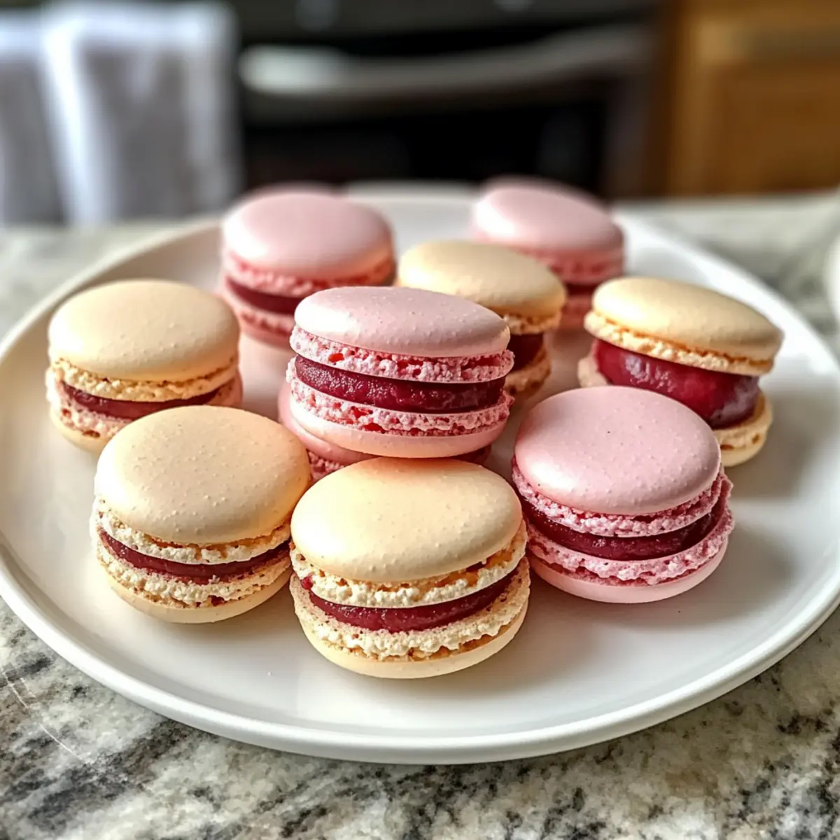 Jump to Recipe Print RecipeAs the oven fills with the sweet aroma of baked delights, I can’t help but reminisce about my first encounter with raspberry-filled French macarons. These exquisite little confections, with their delicate shells and vibrant filling, have a magical way of turning any moment into a celebration. In this delightful recipe, you’ll master the art of creating Raspberry-Filled French Macarons that showcase a perfect blend of chewy goodness and fresh, tangy raspberry flavor. Not only are these treats visually stunning, but they are also surprisingly beginner-friendly and a fantastic way to impress your friends and family. Plus, they make for an elegant dessert to elevate any occasion! Are you ready to embark on this sweet journey and create these beauties at home? Let’s get started! Why Are Raspberry-Filled Macarons So Irresistible? Exquisite Flavors: The delightful combination of sweet raspberry filling and the perfectly chewy shell creates a memorable flavor explosion. Visual Appeal: With their vibrant colors and elegant presentation, these macarons are perfect for impressing guests at gatherings or celebrations. Beginner-Friendly: Don’t let the fancy name scare you! This recipe is approachable and designed even for novice bakers looking to create a gourmet treat. Versatile Variations: Feel free to experiment with different fillings and shell flavors, such as lemon or pistachio, to keep things exciting. Try pairing these treats with a lovely afternoon tea, or maybe check out our Hawaiian Roll French toast for a creative breakfast option! Perfect for Sharing: Whether at a party or just because, these macarons will surely become a favorite among friends and family, making them an ideal dessert for any occasion. Raspberry-Filled French Macaron Ingredients • Get ready to create these delightful treats! For the Macaron Shells Almond Flour – Provides structure and texture; ensure it’s finely ground for the best results. Powdered Sugar – Adds just the right amount of sweetness and helps achieve that perfect texture. Egg Whites – Make sure they’re at room temperature to whip up perfectly; only use egg whites, not whole eggs. Granulated Sugar – Essential for stabilizing the egg whites during whipping. Cream of Tartar – Helps stabilize egg whites, ensuring they maintain stiff peaks while whipping. Food Coloring – Optional, yet it adds a playful, vibrant hue to your macaron shells. For the Raspberry Filling Fresh Raspberries – The star of the show for this filling; if fresh isn’t available, you can use thawed frozen raspberries, just be sure to drain them well. Unsalted Butter – Softened to make mixing into the filling a breeze. Vanilla Extract – Enhances the flavor of your delicious raspberry filling. Embrace the art of crafting Raspberry-Filled French Macarons with these perfectly curated ingredients! Step‑by‑Step Instructions for Raspberry-Filled French Macarons Step 1: Prepare Dry Ingredients Start by sifting 1 cup of almond flour and 1 3/4 cups of powdered sugar together in a large mixing bowl. This ensures there are no lumps and that both ingredients are well-combined, creating a smooth texture for your Raspberry-Filled French Macarons. Set this mixture aside as you progress to the next step. Step 2: Whip Egg Whites In a clean bowl, beat 3 large egg whites using a stand mixer or hand mixer until they become foamy. Gradually add 1/4 teaspoon of cream of tartar and keep whipping until soft peaks form. Slowly incorporate 1/2 cup of granulated sugar, continuing to whip until stiff peaks appear and the mixture is glossy, taking about 7-10 minutes. If you desire colorful shells, this is the moment to add a few drops of food coloring. Step 3: Combine Mixtures Gently fold the sifted dry ingredients into the whipped egg whites in three additions. Use a spatula and a careful folding motion to combine, ensuring you don’t deflate the mixture. Stop mixing when the batter flows like lava, which should take about 1-2 minutes. This is crucial for achieving the right consistency in your Raspberry-Filled French Macarons. Step 4: Pipe Macarons Transfer the macaron batter into a piping bag fitted with a round tip. On a baking sheet lined with parchment paper, pipe small circles of batter, about 1.5 inches in diameter, leaving some space between each. This allows for expansion while baking. Aim for uniform shapes in your shells to ensure even baking. Step 5: Rest Macarons Once piped, let the macaron shells sit at room temperature for 30–60 minutes. This resting period allows a skin to form on the surface, which helps develop that coveted smooth exterior and proper rise while baking. You’ll know they’re ready when they no longer feel tacky to the touch. Step 6: Bake Preheat your oven to 300°F (150°C). Once the macarons have developed a skin, place the baking sheet in the oven and bake for 15–20 minutes. Keep an eye on them; you should see the macarons rise and develop feet beneath the shells, a sign they’re baking correctly. Step 7: Cool After baking, remove the macarons from the oven and allow them to cool completely on the baking sheet. This may take about 10-15 minutes. Cooling is important, as it helps prevent the shells from sticking to the parchment paper while ensuring they retain their delicate structure. Step 8: Prepare Raspberry Filling While the shells cool, prepare your filling. In a saucepan, cook 1 cup of fresh raspberries over medium heat for about 5 minutes or until syrupy. Strain the mixture to remove seeds, allowing the raspberry puree to cool. In a mixing bowl, beat 1 stick of softened unsalted butter, then gradually add 1 cup of powdered sugar, mixing until smooth. Finally, incorporate the cooled raspberry puree and 1 teaspoon of vanilla extract until fully combined. Step 9: Assemble Macarons To assemble your delightful Raspberry-Filled French Macarons, match pairs of shells for evenness. Pipe a generous amount of raspberry