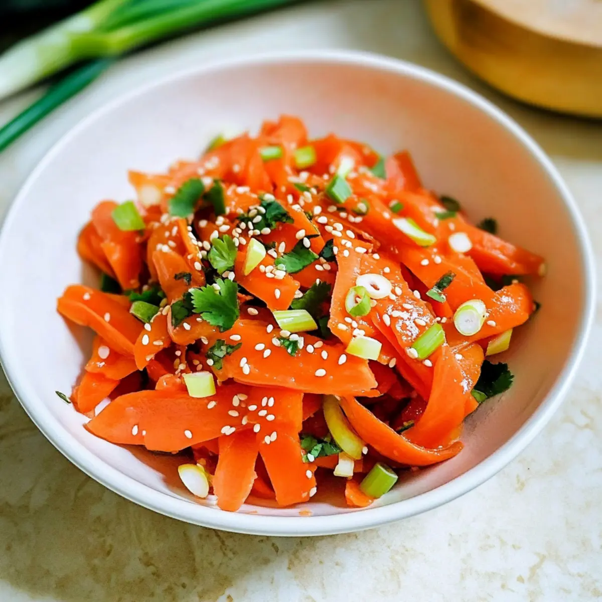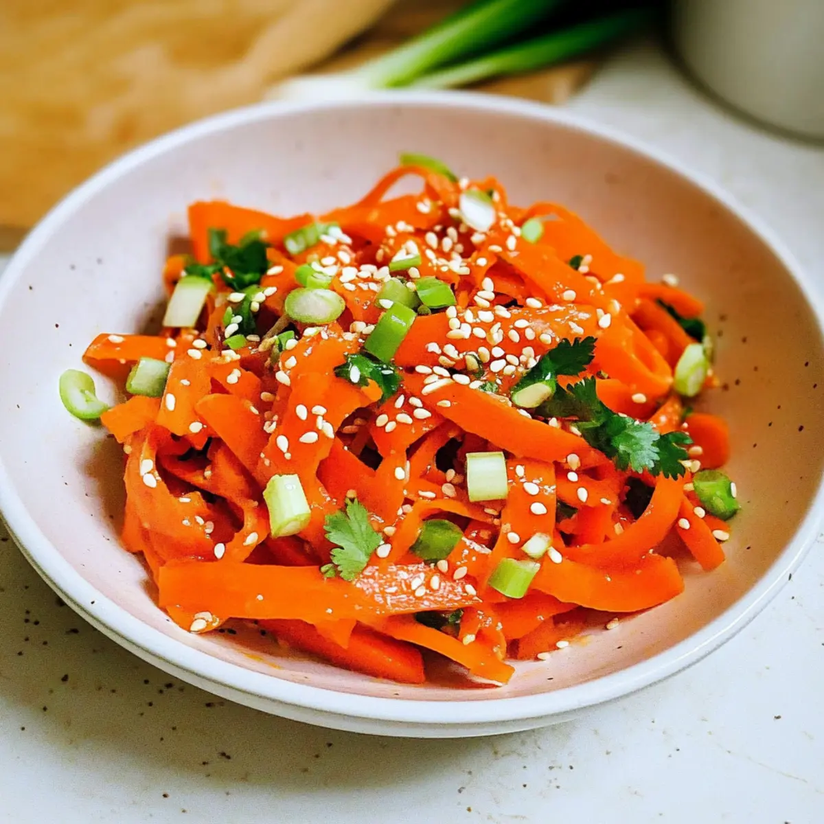 Jump to Recipe Print RecipeHave you ever felt like a crunchy, vibrant salad could brighten your day? This Viral Raw Carrot Salad is here to do just that! In just 5 minutes, you can whip up a dish that’s not only a feast for the eyes but also a powerhouse of nutrients. Packed with gut-health benefits and a delightful tangy sweetness, this salad transforms the everyday carrot into a star. Plus, it’s quick and easy—perfect for busy evenings or anytime you want to impress your dinner guests with something fresh and delicious. Whether you serve it alongside grilled chicken or toss it into a grain bowl, the vibrant colors and flavors are sure to spark conversations. Curious to see how the humble carrot can steal the show? Let’s dive into this delightful recipe! Why is this salad a game changer? Quick & Easy: In just 5 minutes, you can create a colorful and nutritious side dish that makes meal prep a breeze. Vibrant Flavor: The tangy and sweet combination of dressings with fresh ingredients creates a flavor explosion in every bite. Nutrient-Dense: This salad is not just delicious; it’s packed with vitamins and minerals, supporting gut health and hormone balance. Customizable: Feel free to experiment with different herbs or add a protein boost with nuts—perfect for tailoring to your taste! Crowd-Pleasing: Serve it at your next gathering, and watch it disappear; it’s a hit with both guests and family. For a delightful accompaniment, try this with Cucumber Shrimp Salad or alongside some grilled chicken for an epic meal. Raw Carrot Salad Ingredients For the Salad • Medium Carrots – The crunchy, colorful base; large, fresh carrots work best for texture. • Grated Garlic – Adds bold flavor; freshly grated enhances taste. • Cilantro – Provides herbal freshness; feel free to substitute with your favorite herbs. • Green Onions – Offer a sharp bite; chives can also work well. • Sesame Seeds – For crunch and a nutty note; lightly toasting them amplifies flavor. For the Dressing • Sesame Oil – Adds a toasty kick; use toasted sesame oil for depth of flavor. • Rice Vinegar – Brings tanginess to the mix; substitute with apple cider vinegar if needed. • Maple Syrup – Offers sweetness to balance the dressing’s acidity; honey is a suitable alternative. • Lime Juice – Contributes zesty brightness; fresh lime is preferred for optimal flavor. • Soy Sauce – Infuses umami; swap with tamari or coconut aminos for a gluten-free option. • Sea Salt – Just a pinch to enhance flavors and unify the salad. Optional Add-ons • Chili Onion Crunch – For a spicy finish; use sparingly based on your heat preference. Explore this vibrant Raw Carrot Salad and indulge in a quick, nutrient-dense dish that will elevate any meal! Step‑by‑Step Instructions for Viral Raw Carrot Salad Step 1: Prep Carrots Begin by using a sharp vegetable peeler to shave 3–4 medium carrots into thin ribbons. Aim for long, delicate strands that will create an appealing presentation. As you peel, turn the carrot to maintain even ribbons, discarding the ends. This process should take about 2-3 minutes, and you’ll know it’s right when the carrots are bright orange and uniformly thin. Step 2: Mix Dressing In a large mixing bowl, combine the freshly grated garlic, 2 tablespoons of sesame oil, 3 tablespoons of rice vinegar, 1 tablespoon of maple syrup, 1 tablespoon of lime juice, 2 tablespoons of soy sauce, and a pinch of sea salt. Whisk the mixture vigorously for about 30 seconds or until the dressing is thoroughly combined and slightly emulsified. The goal is to achieve a smooth, tangy, and aromatic dressing that enhances the raw carrot salad. Step 3: Combine Ingredients Add the carrot ribbons to the bowl with the dressing, and toss gently with ¼ cup of chopped cilantro, 2 tablespoons of toasted sesame seeds, and 2 sliced green onions. Ensure every carrot ribbon is fully coated with the dressing; this should take about 1-2 minutes of careful tossing. The vibrant colors and textures will create a visually appealing salad that’s hard to resist! Step 4: Add Heat (if desired) If you enjoy a bit of spice, drizzle your salad with 1-2 teaspoons of chili onion crunch, adjusting to your taste preference. Gently incorporate the spicy element by tossing the salad briefly once more; this should take less than a minute. You’ll know it’s ready when the salad has a hint of warmth that complements the tanginess without overpowering it. Step 5: Serve For the best flavor, enjoy the viral raw carrot salad immediately. If you prefer a deeper flavor fusion, let it chill in the fridge for about 10 minutes before serving. This will allow the dressing to mingle beautifully with the fresh ingredients, creating a refreshing and nutrient-dense side. Serve in a vibrant bowl to showcase the colors and textures, and watch it become the star of your meal! Storage Tips for Raw Carrot Salad Fridge: Store any leftover raw carrot salad in an airtight container in the fridge for up to 2 days. The flavors will deepen, but the carrots may soften slightly. Room Temperature: For best flavor, avoid leaving the salad out at room temperature for more than 2 hours to maintain freshness and texture. Reheating: This salad is best enjoyed cold or at room temperature. If you stored some dressing separately, drizzle it over right before serving to refresh the flavors. Freezer: It is not recommended to freeze the raw carrot salad, as the texture of the carrots will change once thawed, impacting their crunchiness. Make Ahead Options These Raw Carrot Salad preparations are perfect for busy home cooks looking to save time during the week! You can prep the carrot ribbons up to 24 hours in advance by slicing and refrigerating them in an airtight container to maintain their crispness. Additionally, mix the dressing (garlic, sesame oil, vinegar, maple syrup, lime juice, soy sauce, and salt) up to 3 days ahead and store it in the fridge—jus