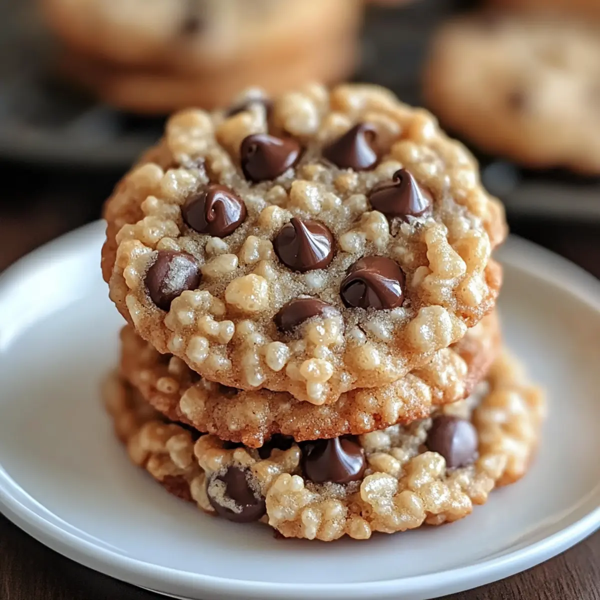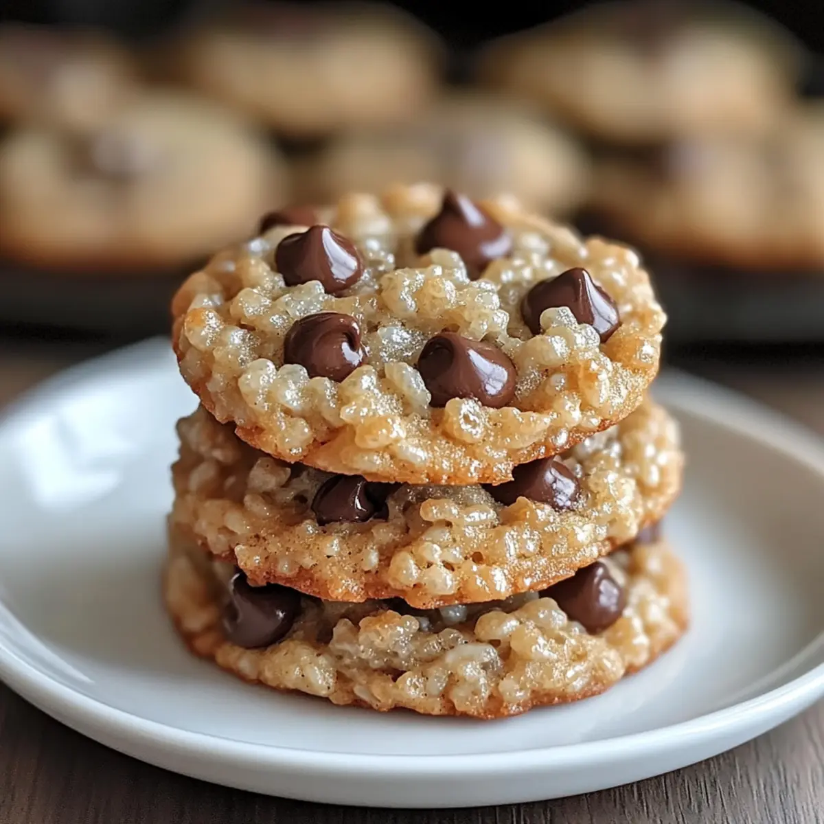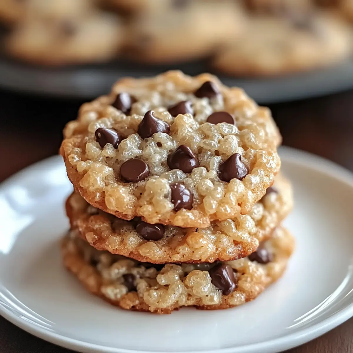 Jump to Recipe Print RecipeThere’s something magical about seeing the golden-brown edges of freshly baked cookies peeking out from the oven. Today, I’m excited to share a recipe that takes the classic chocolate chip cookie to a whole new level: Chewy Rice Krispie Chocolate Chip Cookies. This delightful concoction features the melty goodness of semi-sweet chocolate chips paired with the unexpected crunch of Rice Krispies cereal. The best part? These cookies come together in a flash, making them perfect for both novice bakers and seasoned pros alike. With their unique texture that marries chewiness with a satisfying crunch, they’re guaranteed to be a hit at any gathering. Ready to redefine your cookie-baking experience? Let’s dive into this sweet adventure together! Why are these cookies a must-try? Unique Texture: The blend of softness from chocolate chips and crunchiness from Rice Krispies elevates your cookie experience to new heights. Quick and Easy: With simple ingredients and a straightforward process, even beginners will shine in the kitchen. Crowd-Pleasing Treat: Everyone loves a classic cookie, and this twist will have friends and family coming back for more! Versatile Options: Feel free to customize with nuts or different chocolate types, ensuring there’s something for everyone. Perfect for Any Occasion: Whether it’s a casual snack or a party dessert, these cookies fit seamlessly into any situation! Embark on a delightful baking journey with these Rice Krispie Chocolate Chip Cookies that will impress everyone! Rice Krispie Chocolate Chip Cookies Ingredients For the Cookie Dough Unsalted Butter – Adds richness and moisture for a perfectly chewy texture. Substitute with margarine for a dairy-free option. Granulated Sugar – Contributes to the sweetness and texture; swap with brown sugar for added chewiness. Large Eggs – Essential for binding ingredients together and providing structure; use flaxseed meal as a vegan alternative. Pure Vanilla Extract – Elevates the flavor profile; feel free to experiment with almond extract for a different twist. All-Purpose Flour – The base that gives structure; a gluten-free flour blend works well as a substitute. Baking Soda – Serves as a leavening agent to help cookies rise; ensure it’s fresh for optimal results. Salt – Balances out the sweetness; kosher salt offers a different texture, but can be omitted if needed. Semi-Sweet Chocolate Chips – Imparts that classic chocolate flavor; consider dark chocolate chips for a richer taste. For the Crunch Rice Krispies Cereal – Adds delightful texture and crunch; any puffed rice cereal can be used as a substitute. These delicious Rice Krispie Chocolate Chip Cookies come together effortlessly, bringing joy to your baking adventures! Step‑by‑Step Instructions for Rice Krispie Chocolate Chip Cookies Step 1: Preheat Oven Begin by preheating your oven to 325°F (163°C). Make sure to position your oven rack in the center to ensure even baking. This initial step is crucial as it prepares the environment for your Rice Krispie Chocolate Chip Cookies to rise perfectly and develop that golden-brown edge. Step 2: Cream Butter and Sugar In a large mixing bowl, combine softened unsalted butter with granulated sugar. Using an electric mixer, beat the mixture on medium speed for about 2-3 minutes until it becomes light and fluffy. This process incorporates air, which is essential for achieving the right texture in your cookies. Step 3: Incorporate Eggs and Vanilla Next, add the large eggs to the creamed mixture one at a time, mixing well after each addition. Stir in the pure vanilla extract until the mixture is smooth and well-combined. This step enhances the flavor and ensures your Rice Krispie Chocolate Chip Cookies have a delightful taste. Step 4: Combine Dry Ingredients In a separate bowl, whisk together the all-purpose flour, baking soda, and salt until evenly mixed. Gradually add this dry mixture to the butter and sugar combination, mixing gently until just incorporated. Be careful not to overmix, as this can affect the tenderness of your cookies. Step 5: Fold in Chocolate Chips Now it’s time to add the semi-sweet chocolate chips. Using a spatula, carefully fold them into the dough, ensuring they are evenly distributed. This step adds that classic chocolatey richness to your Rice Krispie Chocolate Chip Cookies, creating delightful bites in each cookie. Step 6: Coat with Rice Krispies Take a portion of the cookie dough and roll it into balls. Then, roll each dough ball in Rice Krispies cereal to coat it evenly. This fun twist adds a satisfying crunch and unique texture to your cookies, making them a delightful treat for all. Step 7: Arrange and Bake Place the coated dough balls on a parchment-lined baking sheet, ensuring they are spaced appropriately. Slightly flatten each dough ball with your hand. Bake in the preheated oven for 23-25 minutes until the edges are golden brown and the centers look set. Keep an eye on them to prevent overbaking! Step 8: Cool and Serve Once baked, remove the cookies from the oven and let them cool on the baking sheets for about 5 minutes. This resting time allows them to firm up a bit. Then, transfer the cookies to a wire rack to cool completely. Your Rice Krispie Chocolate Chip Cookies are now ready to be enjoyed! Make Ahead Options These Chewy Rice Krispie Chocolate Chip Cookies are perfect for meal prep enthusiasts! You can prepare the cookie dough up to 24 hours in advance by mixing all the ingredients and refrigerating the unbaked dough. To maintain quality and prevent browning, wrap the dough tightly in plastic wrap before chilling. When you’re ready to bake, simply remove the dough, roll it in Rice Krispies, and arrange it on a baking sheet. Bake as directed for that gooey, crunchy goodness, and enjoy fresh cookies with minimal effort! This makes them an ideal choice for busy weeknights or impromptu gatherings. Rice Krispie Chocolate Chip 