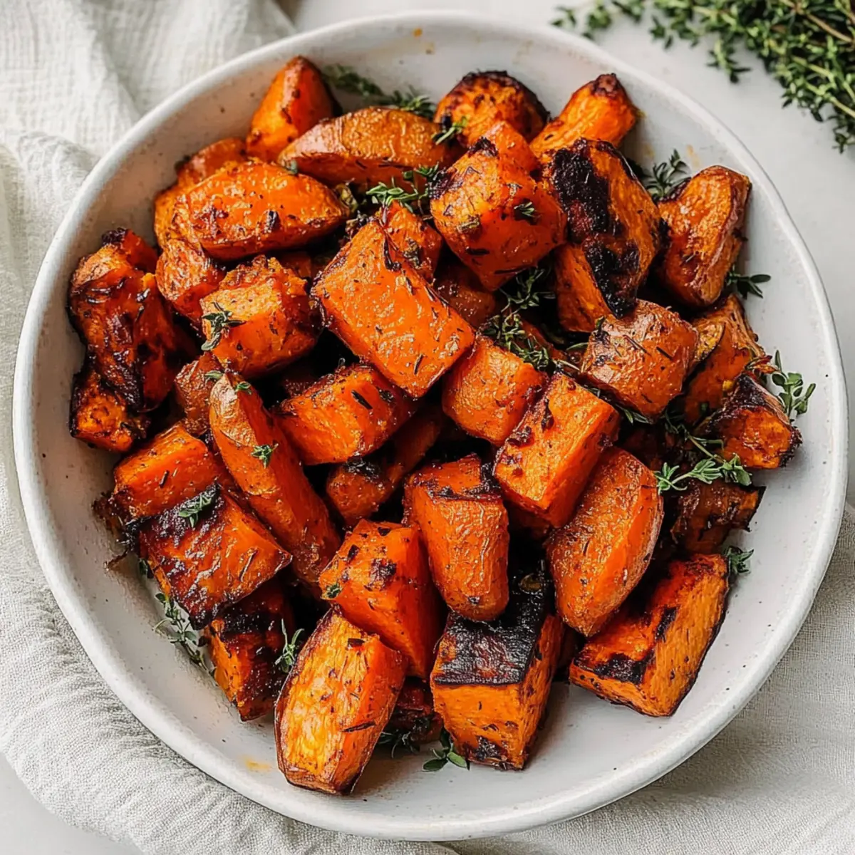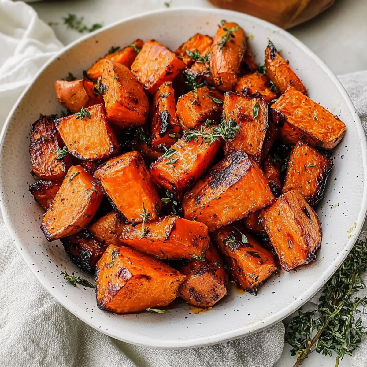 Jump to Recipe Print RecipeThe aroma of sweet and savory vegetables roasting in the oven is one of those simple pleasures that can brighten even the busiest of days. Today, I’m excited to share my favorite recipe for Oven-Roasted Sweet Potatoes and Carrots, a vibrant side dish that captures comfort and nutrition in every bite. With only 15 minutes of hands-on prep time, this dish is not only a quick win but also a crowd-pleaser that pairs perfectly with everything from grilled chicken to hearty quinoa salads. Imagine the warm sweetness of maple syrup blending with fragrant rosemary and thyme—all brought to life in your kitchen. Are you ready to transform your weeknight dinners with this delicious, healthy side? Let’s dive in! Why Are Roasted Sweet Potatoes & Carrots Amazing? Simplicity at Its Best: The prep is a breeze! Spend just 15 minutes chopping and mixing, and let the oven do the rest. Sweet and Savory Harmony: The balance of sweet maple syrup and aromatic herbs creates a mouthwatering flavor explosion that’s hard to resist. Versatile Side Dish: These roasted veggies are perfect alongside grilled chicken, turkey, or even a plant-based Sweet Potato Breakfast for a delightful meal. Nutrient-Dense Goodness: Packed with beta-carotene and dietary fiber, you’ll feel good serving a dish that’s both healthy and delicious. Crowd-Pleasing Appeal: Impress family and friends with a side that looks as vibrant as it tastes, promising smiles at any table! Roasted Sweet Potatoes & Carrots Ingredients • Here’s everything you need to create this nutritious delight! For the Veggies Sweet Potato – Provides natural sweetness and fiber; both orange and Japanese sweet potatoes work beautifully. Carrots – Adds color and additional sweetness; can substitute with butternut squash for a different twist. For the Flavor Boosters Garlic (Minced) – Enhances flavor; fresh garlic is recommended for a more robust taste. Olive Oil – Adds richness and aids in roasting; feel free to use lighter olive oil or another cooking oil if you prefer. For the Sweetness Maple Syrup – A delightful natural sweetener; honey makes a great substitute if desired. For the Herb Aroma Thyme – Offers an herbal note; swap fresh thyme for dried if you’re in a pinch. Rosemary – Delivers a lovely pine-like flavor; fresh is better for a more aromatic experience. For the Seasoning Cinnamon – Adds warmth and a hint of sweetness; reduce the amount if you’re not a fan. Salt – Enhances the overall flavor; adjust to taste. This Roasted Sweet Potatoes & Carrots recipe is bound to become a go-to in your kitchen, offering warmth, flavor, and a burst of nutritional goodness! Step‑by‑Step Instructions for Roasted Sweet Potatoes & Carrots Step 1: Preheat the Oven Begin by preheating your oven to 400°F (200°C). This temperature is perfect for achieving that beautiful caramelization on your roasted sweet potatoes and carrots. Make sure the oven has fully heated up before you place your veggies inside for the best cooking results. Step 2: Prepare the Vegetables While the oven is heating, wash and dry your sweet potatoes and carrots. If preferred, peel the carrots; however, you can leave the skin on the sweet potatoes for added nutrition. Cut both the sweet potatoes and carrots into uniform pieces, about ¾-inch to 1-inch, ensuring they cook evenly throughout. Step 3: Combine Ingredients Place the chopped sweet potatoes and carrots into a large baking dish. Add in the minced garlic, a drizzle of olive oil, and maple syrup to infuse the dish with sweetness. Sprinkle in thyme, rosemary, cinnamon, and a pinch of salt, then toss everything together until evenly coated and glistening. Step 4: Roast the Vegetables Transfer the baking dish into the preheated oven and roast the sweet potatoes and carrots for 35-40 minutes. Be sure to flip the veggies halfway through to promote even browning. They’re done when they are lightly browned, caramelized, and easily pierced with a fork, showcasing their tender texture. Step 5: Serve and Enjoy Once your Roasted Sweet Potatoes & Carrots are out of the oven, let them cool slightly before serving. The vibrant colors and enticing aroma will make them a highlight on your dining table. Enjoy these delicious roasted veggies hot, either on their own or alongside your favorite main dishes! Expert Tips for Roasted Sweet Potatoes & Carrots Uniform Cuts: Ensure all vegetables are cut to similar sizes, about ¾-inch to 1-inch, so they cook evenly and finish at the same time. Check Doneness: Always test the vegetables for doneness with a fork; they should be tender and caramelized. Every oven is different, so adjust the cooking time as needed. Single Layer: When doubling the recipe, spread the sweet potatoes and carrots in a single layer on the baking dish to achieve that perfect roasted texture. Fresh Ingredients: Use fresh garlic, thyme, and rosemary for the best flavor in your Roasted Sweet Potatoes & Carrots. Dried herbs can be more subdued. Adjust the Sweetness: If the maple syrup is more than you prefer, feel free to reduce the amount, balancing with your taste for the perfect level of sweetness. Make Ahead Options These Roasted Sweet Potatoes & Carrots are perfect for meal prep enthusiasts! You can chop the vegetables up to 24 hours in advance, storing them in an airtight container in the refrigerator. This helps maintain their freshness and prevents browning, ensuring they’re just as vibrant when you’re ready to cook. Additionally, you can mix the garlic, olive oil, maple syrup, and spices in a small bowl ahead of time, keeping them ready to toss with the veggies. When you’re ready to roast, simply combine everything in your baking dish and pop it in the oven, and you’ll have a delicious side dish to accompany your meal with minimal effort! What to Serve with Oven-Roasted Sweet Potatoes and Carrots The warm, inviting aroma of roasted vegetables can transform your kitchen into a 