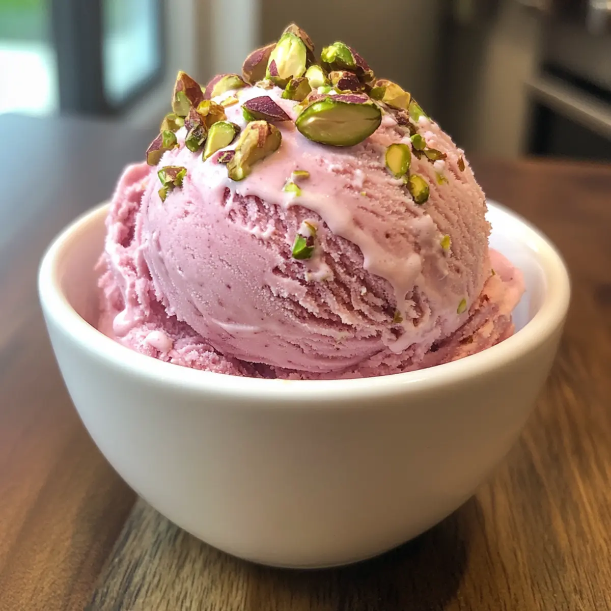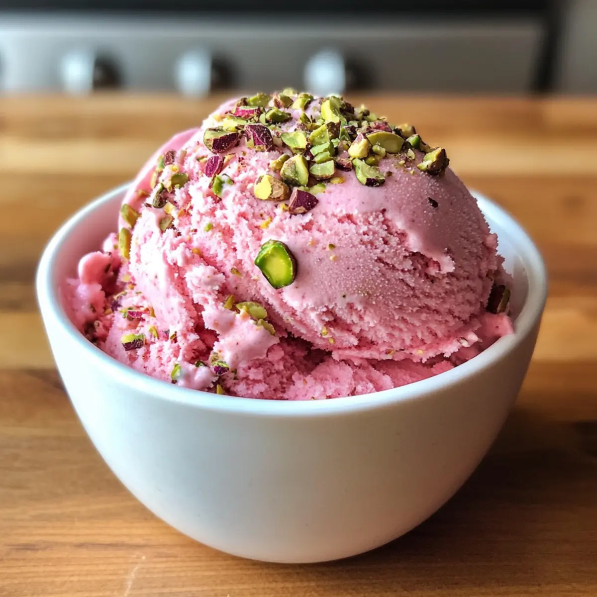 Jump to Recipe Print RecipeAs I stood by the window, the gentle summer breeze brought a hint of floral sweetness into my kitchen, sparking an idea that would transform my day. Enter the glorious Creamy Rose Ice Cream, a delightful frozen treat that combines lush creaminess with the refreshing scent of rose water. Not only is this recipe incredibly straightforward to whip up, but it’s also a scrumptious gluten-free and egg-free option perfect for those seeking a light yet indulgent dessert. Pair it with crunchy pistachios for a contrast that elevates this divine experience to new heights. Are you curious to discover how to create this stunning summer dessert at home? Let’s dive in! Why is Rose Ice Cream So Special? Unique Flavor: The enchanting taste of rose water elevates this ice cream above traditional flavors, making it a delightful surprise for your taste buds. Creamy Texture: With a luscious base of heavy cream and milk, each scoop melts smoothly, reminiscent of gourmet gelato. Simple Ingredients: Crafted from natural components like sugar and cornstarch, this recipe is not only accessible but ensures a wholesome treat. Perfect for Any Occasion: Whether it’s a summertime gathering or a cozy night in, this icy delight is sure to impress friends and family alike. Easy to Customize: Feel free to get creative—try adding spices like cinnamon or replacing pistachios with candied almonds for a twist, similar to the delightful combinations in my Orange Creamsicle Cookies or Tomato Pasta One. Indulging in this Rose Ice Cream will not only satisfy your sweet cravings but also provide a burst of floral freshness, making it a memorable culinary experience! Rose Ice Cream Ingredients For the Base • Whole Milk – Provides a creamy base; you can use 2% milk for a lighter option. • Sugar – Adds sweetness; feel free to adjust based on your taste preference. • Corn Starch – Thickens the ice cream without eggs; arrowroot powder is a good substitute. • Salt – Enhances flavor; consider using sea salt for depth. • Rose Water – The star flavor; start with 1 tbsp for a gentle taste, adjusting as needed. • Heavy Cream – Contributes to richness; coconut cream makes a great dairy-free alternative. • Vanilla Extract – This optional ingredient adds warmth to the flavor profile. For Coloring • Chopped Beets or Pink Food Coloring – Offers natural color; beets add a unique flavor, while food coloring is easier to use. For the Toppings • Chopped Pistachios – Provides delightful crunch; consider toasting them for extra flavor. • Candied Nuts (Almonds, Walnuts, or Macadamia Nuts) – Offers variation in textures; use your favorite nut for a personal touch. • Maple Syrup – Sweetens and adds a caramel-like depth; use a bit less if using walnuts. • Ground Cardamom or Cinnamon – Optional spices for added warmth and richness. • Waffle Cookies and Rose Petals – Fantastic garnishes to elevate your presentation. With these ingredients, you’ll be well on your way to crafting a delightful batch of Rose Ice Cream that’s sure to create lasting memories! Step-by-Step Instructions for Creamy Rose Ice Cream with Pistachios Step 1: Prepare the Corn Starch Mixture In a small bowl, dissolve the corn starch in ½ cup of the whole milk, stirring until you have a smooth mixture without lumps. This will act as a thickener for your Creamy Rose Ice Cream. Set it aside while you prepare the rest of the ingredients. Step 2: Heat the Milk and Sugar In a medium saucepan, combine the remaining milk and sugar over medium heat. Stir continuously until the sugar completely dissolves and the mixture starts to bubble gently, approximately 5-7 minutes. Keep an eye on it to prevent burning, and feel the anticipation for your creamy base! Step 3: Thicken the Mixture Once the milk and sugar mixture is boiling, whisk in the pre-dissolved corn starch gradually. Lower the heat to simmer, stirring constantly until the mixture thickens, about 2-3 minutes. You’ll know it’s ready when it coats the back of a spoon and has turned into a rich custard consistency. Step 4: Cool the Custard Immediately transfer the thickened custard into a large bowl set inside an ice bath—this helps cool it down quickly. Stir occasionally as it cools to prevent any skin from forming. Once it’s at room temperature, place it in the fridge to chill further for at least an hour. Step 5: Blend the Beet-Pink Mixture While the custard cools, blend the chopped beets with a few tablespoons of water until smooth. Strain the mixture through a fine mesh sieve to separate the juice, creating a vibrant and natural pink coloring. Combine this beet-rose water with the cooled custard, enhancing the beautiful color of your Rose Ice Cream. Step 6: Mix in Remaining Ingredients Add the heavy cream, salt, and vanilla extract to the beet-infused custard. Whisk everything together until you have a well-combined mixture that feels luxurious. Taste it and adjust the rose water if you desire a more pronounced floral flavor. Step 7: Chill the Mixture Cover the bowl with plastic wrap and refrigerate the mixture for several hours or ideally overnight. This allows all the flavors to meld beautifully, making your Creamy Rose Ice Cream even more delightful when it’s time to churn. Step 8: Churn the Ice Cream Once chilled, pour the mixture into your ice cream maker. Follow your manufacturer’s instructions to churn until it reaches a soft-serve consistency, which should take about 20-25 minutes. Add the chopped pistachios in the last few minutes of churning for an extra crunch. Step 9: Freeze to Firm Up Transfer the churned Rose Ice Cream to an airtight container, smoothing the top with a spatula. Press a piece of parchment paper against the ice cream’s surface to minimize ice crystals, and freeze for at least 4 hours until firm enough to scoop. Step 10: Serve and Garnish Scoop the creamy rose ice cream into bowls or cones and serve it with a 