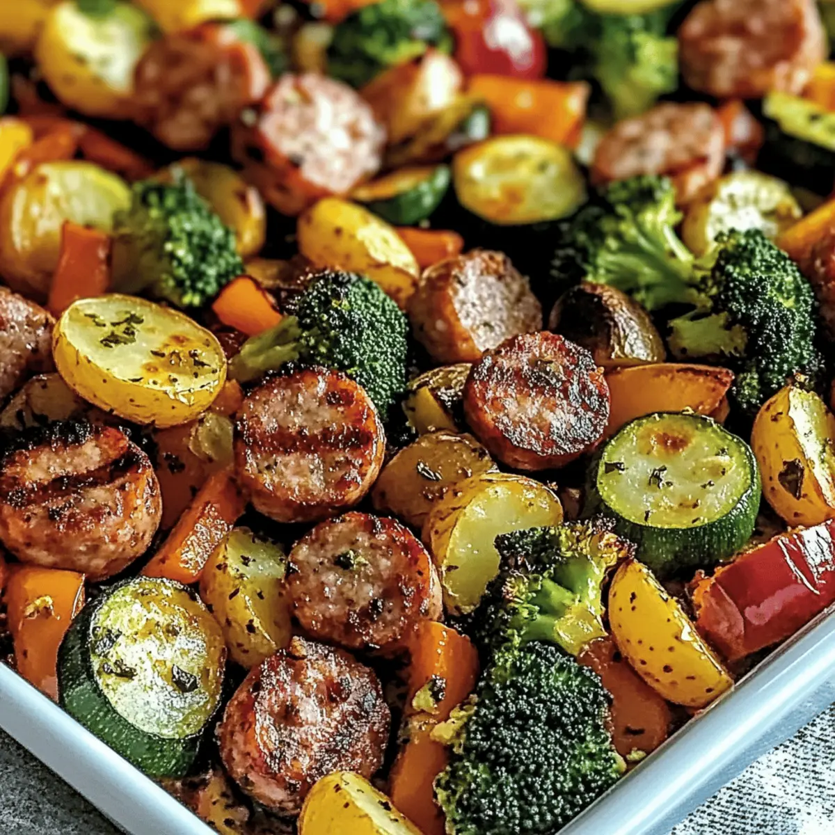 These Sheet Pan Sausage & Veggies are perfect for meal prep enthusiasts looking to save time! You can chop and store the vegetables (bell peppers, broccoli, zucchini, and baby potatoes) in an airtight container for up to 3 days, keeping them fresh and ready to roast. Additionally, slice the sausage and mix it with your seasonings, refrigerating this mixture for up to 24 hours. When it’s time to enjoy your dinner, simply spread everything on a sheet pan and roast in a preheated oven at 400°F (200°C) for 30-35 minutes. This way, you’ll have a flavorful, homemade meal ready with minimal effort after a long day!