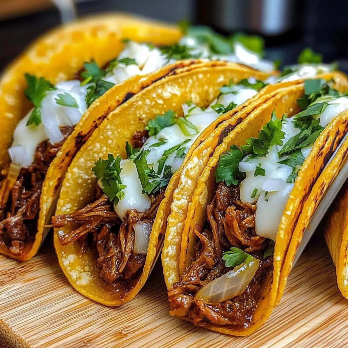 Transfer your perfect tacos to a serving platter, then top with finely diced white onion and chopped fresh cilantro for a burst of freshness and crunch. Serve alongside extra consomme for dipping, allowing everyone to indulge fully in the robust flavors of these Ultimate Shredded Beef Tacos.